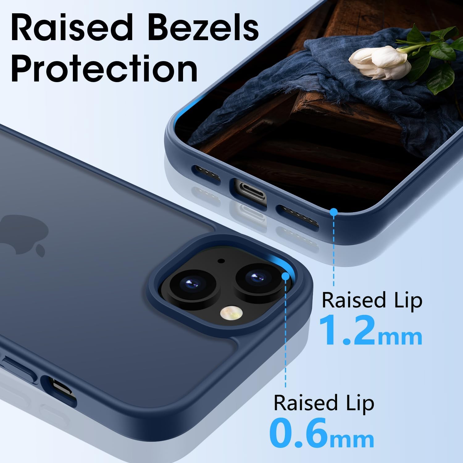Матов калъф HGH за iPhone 13/14 6.1 инча, военна защита, кадифено покритие, матов, устойчив на надраскване, прозрачен гръб, калъф за мобилен телефон против пръстови отпечатъци за iPhone 14/13 (тъмносин)