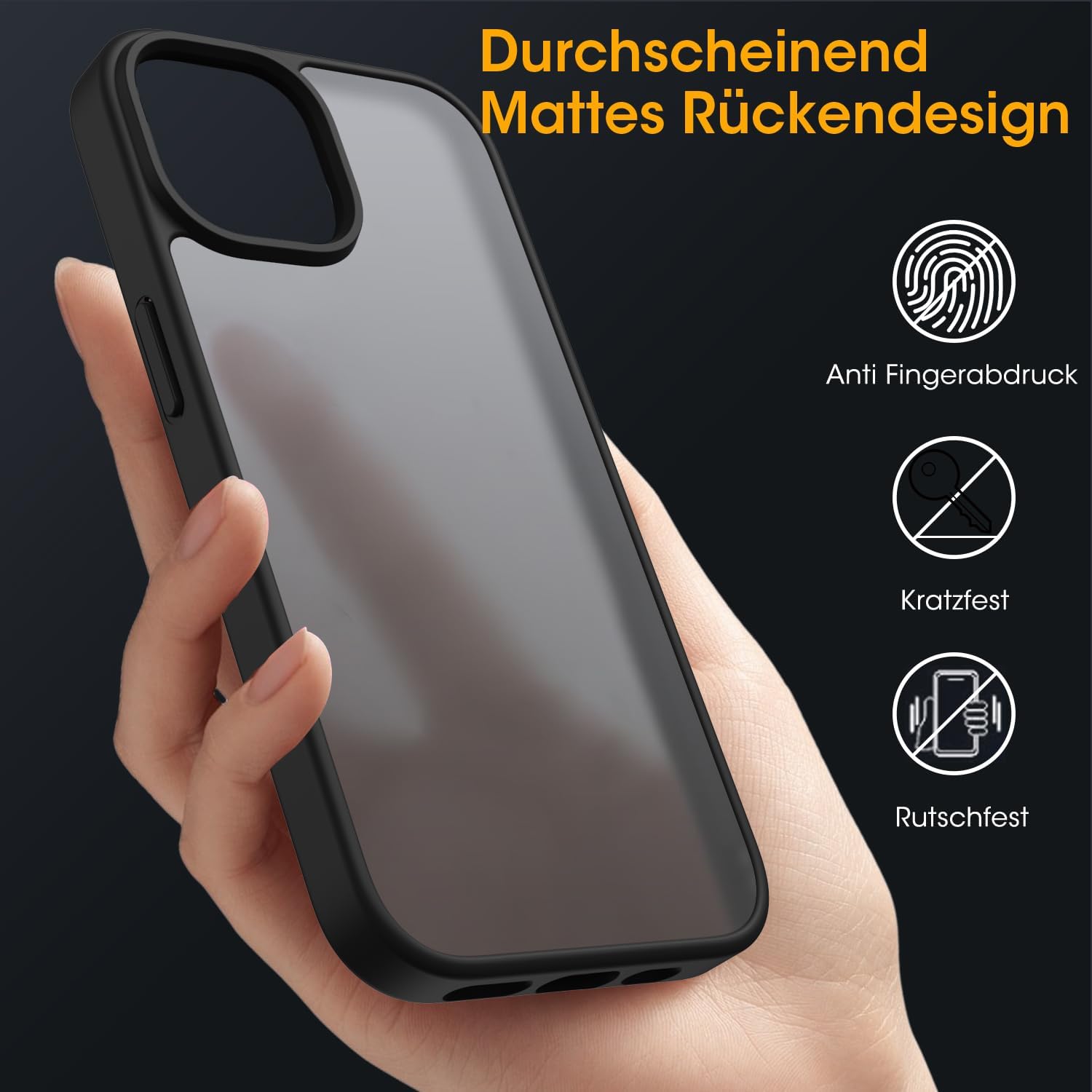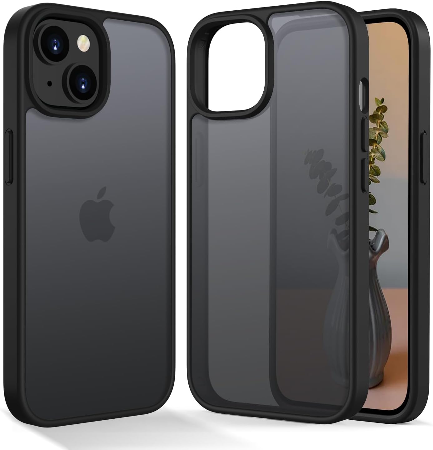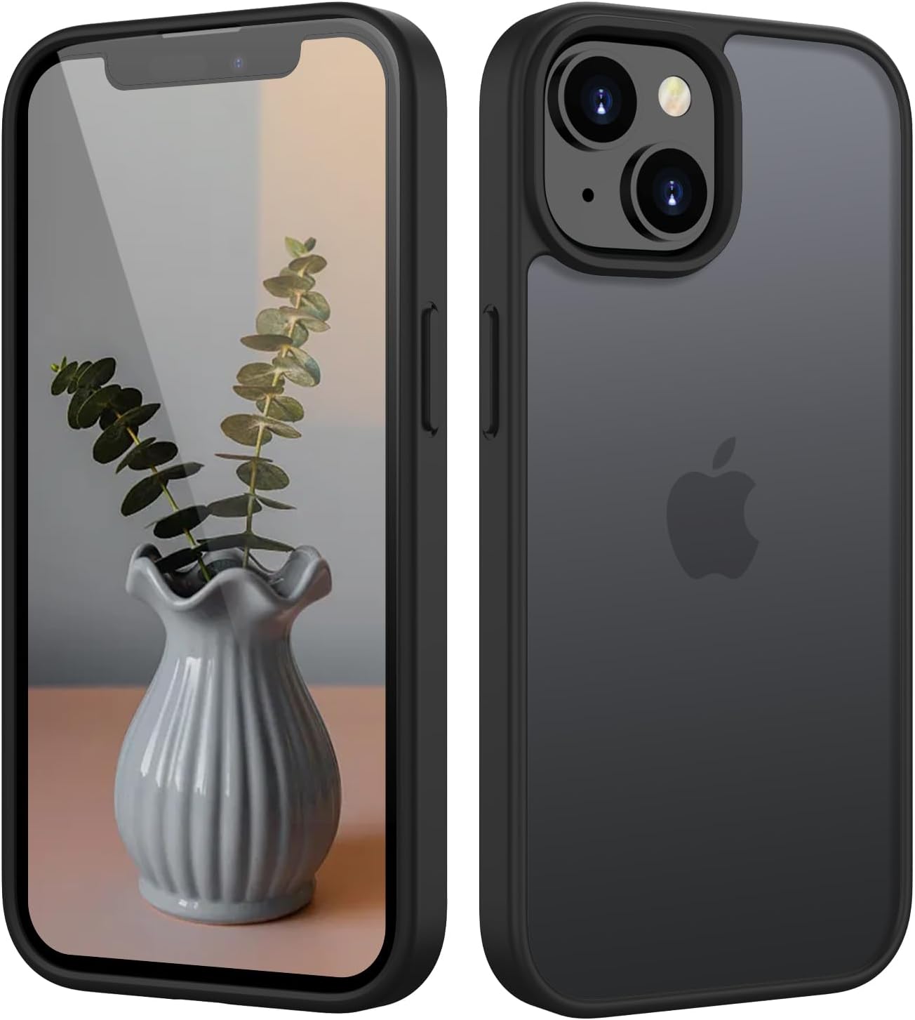 Матов калъф HGH за iPhone 13/14 6.1 инча [Военна защита] Защитен калъф Velvet Touch Matt против надраскване, прозрачен гръб против пръстови отпечатъци за мобилен телефон за iPhone 14/13 (черен)