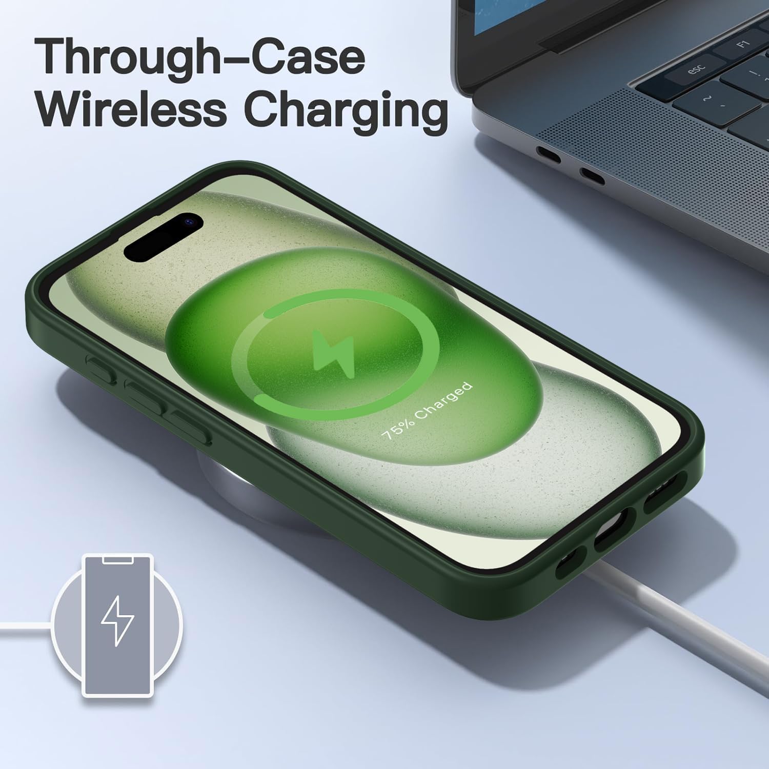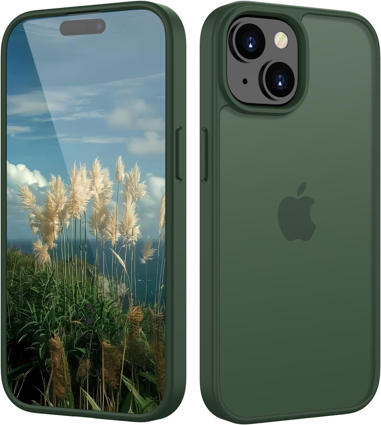 Матов калъф HGH за iPhone 15 6.1 инча, военен защитен калъф, кадифен матов, устойчив на надраскване, прозрачен защитен калъф за гръб, против пръстови отпечатъци (тъмнозелен)