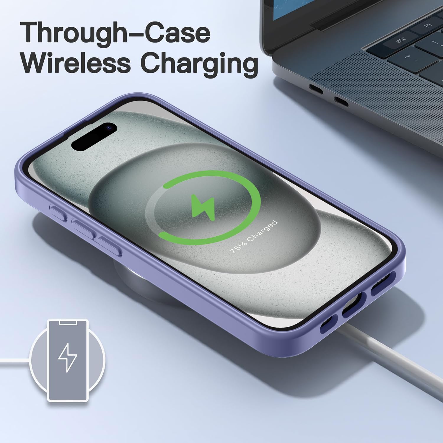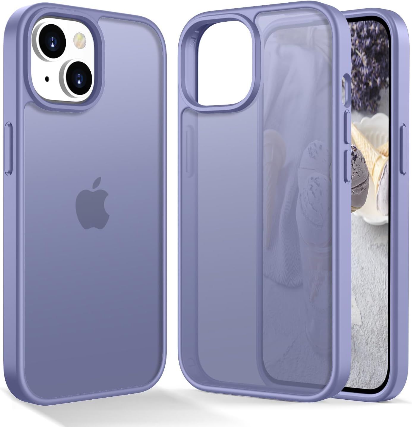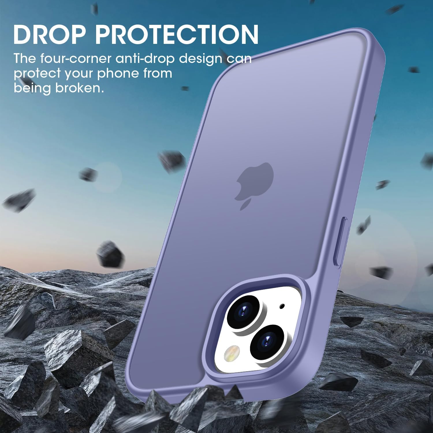 Матов калъф HGH за iPhone 15 6.1 инча, военна защита, защитен калъф от кадифено матово кадифено покритие, устойчив на надраскване, прозрачен защитен калъф за гръб, калъф против пръстови отпечатъци (лилав)