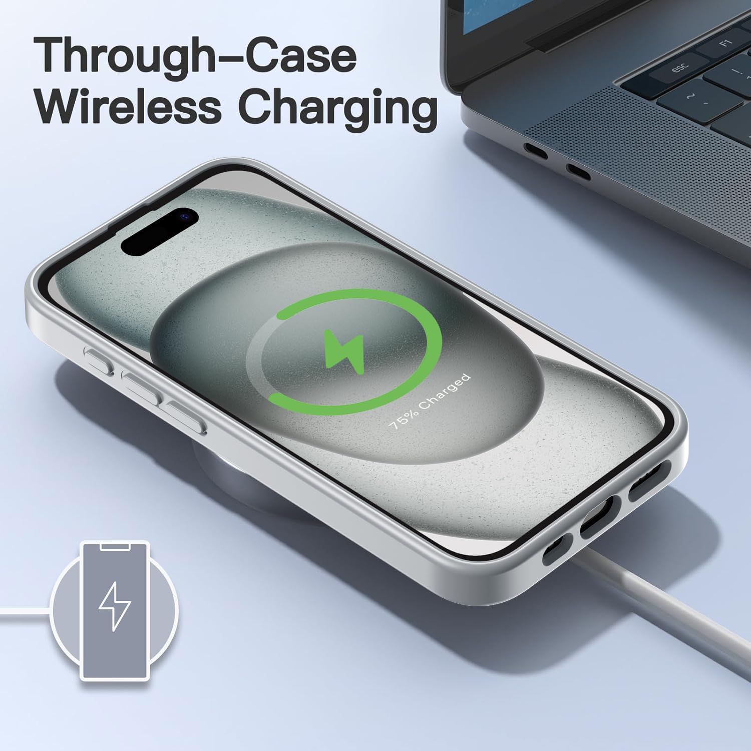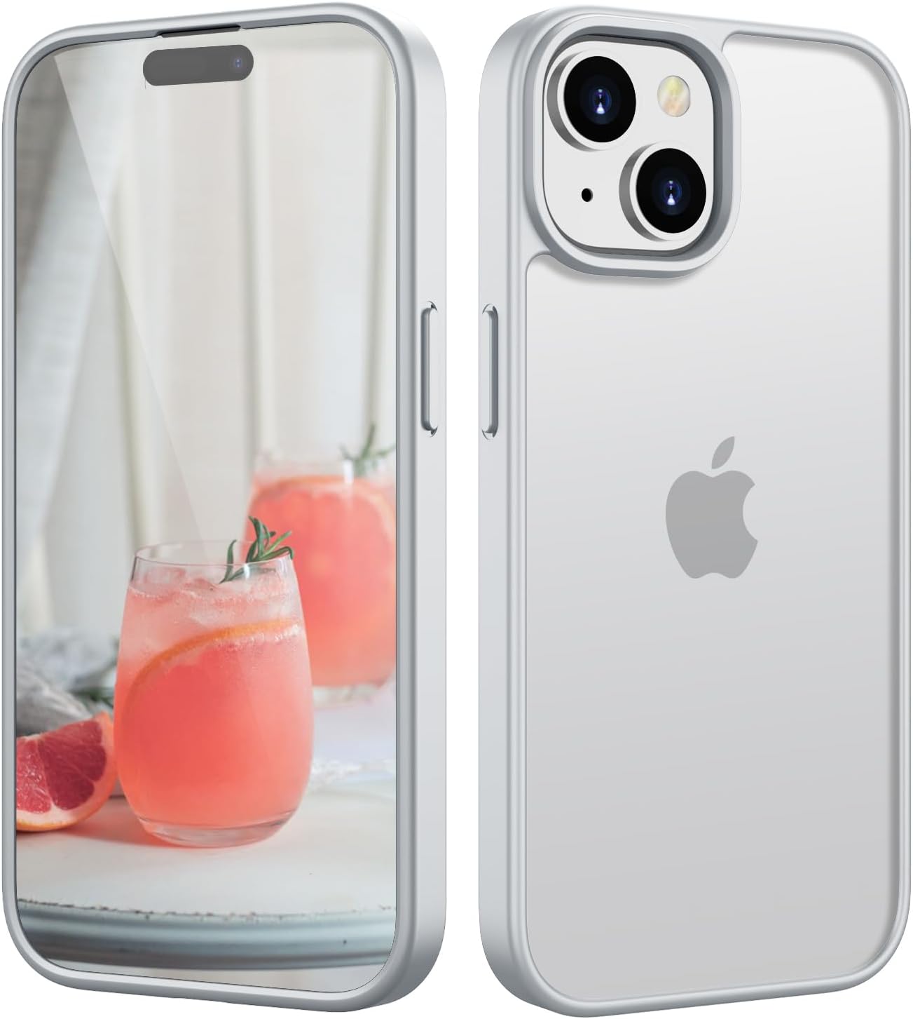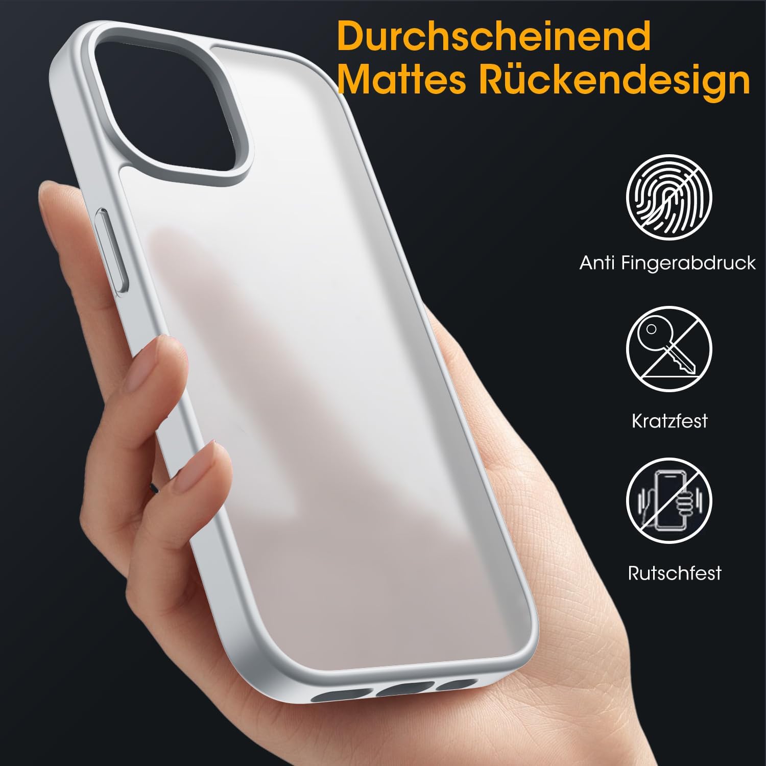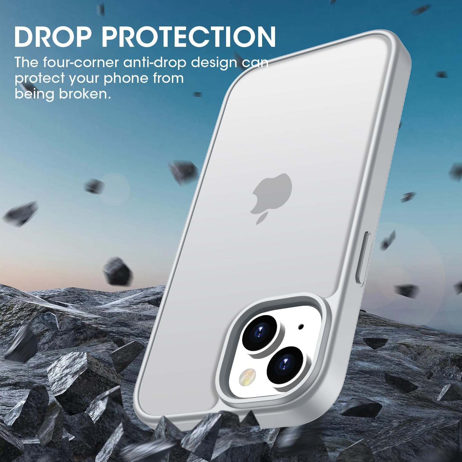 Матов калъф HGH за iPhone 15 6.1 инча, военна защита, защитен калъф от кадифено покритие, матов, против надраскване, прозрачен защитен калъф за гръб, против пръстови отпечатъци (бял)