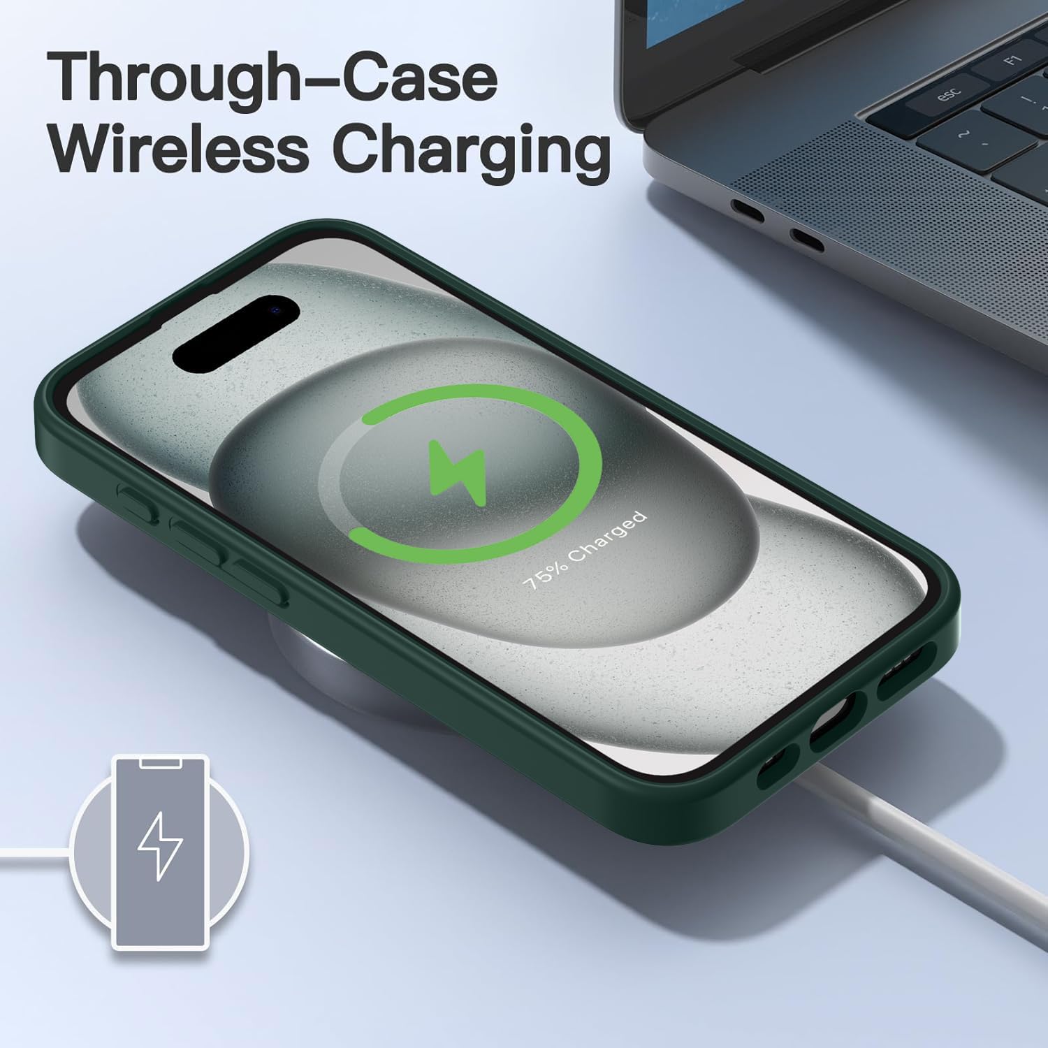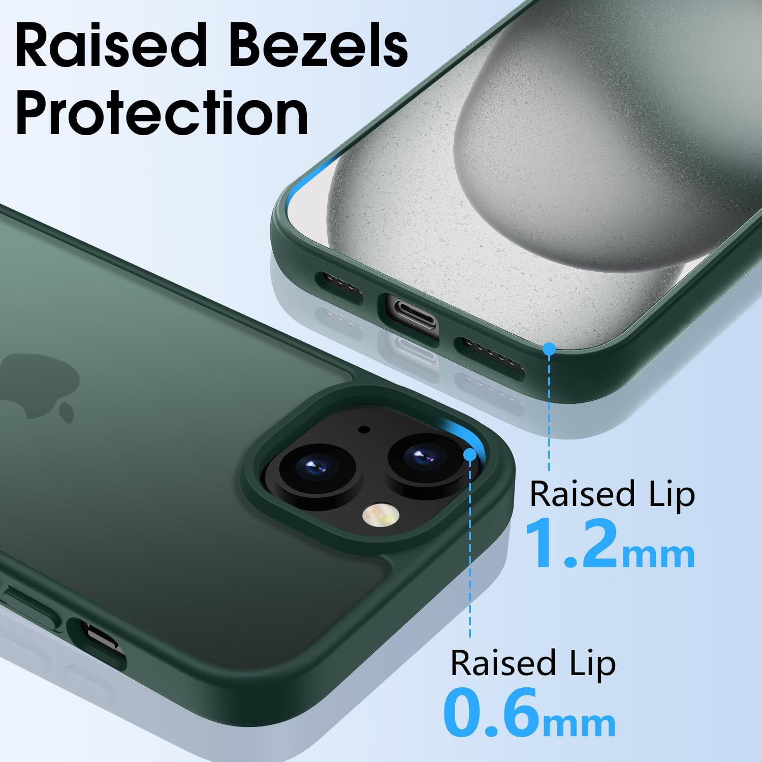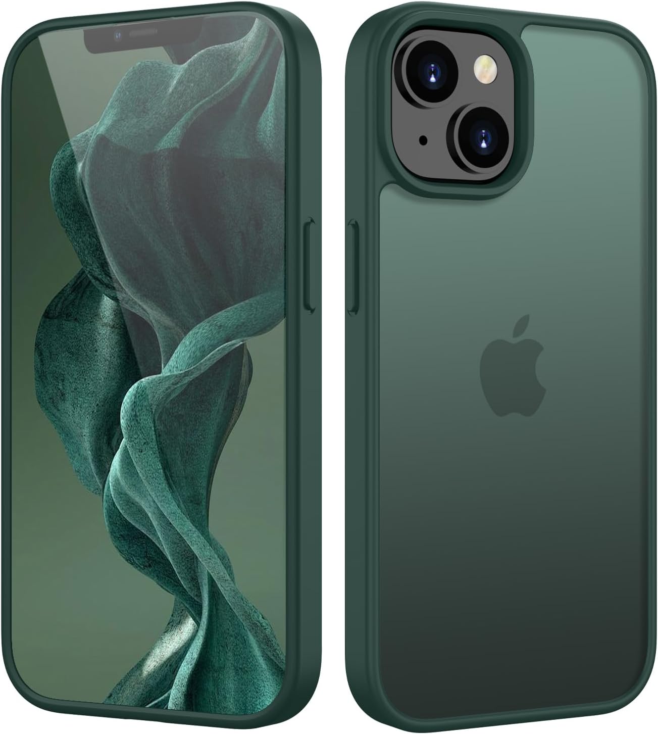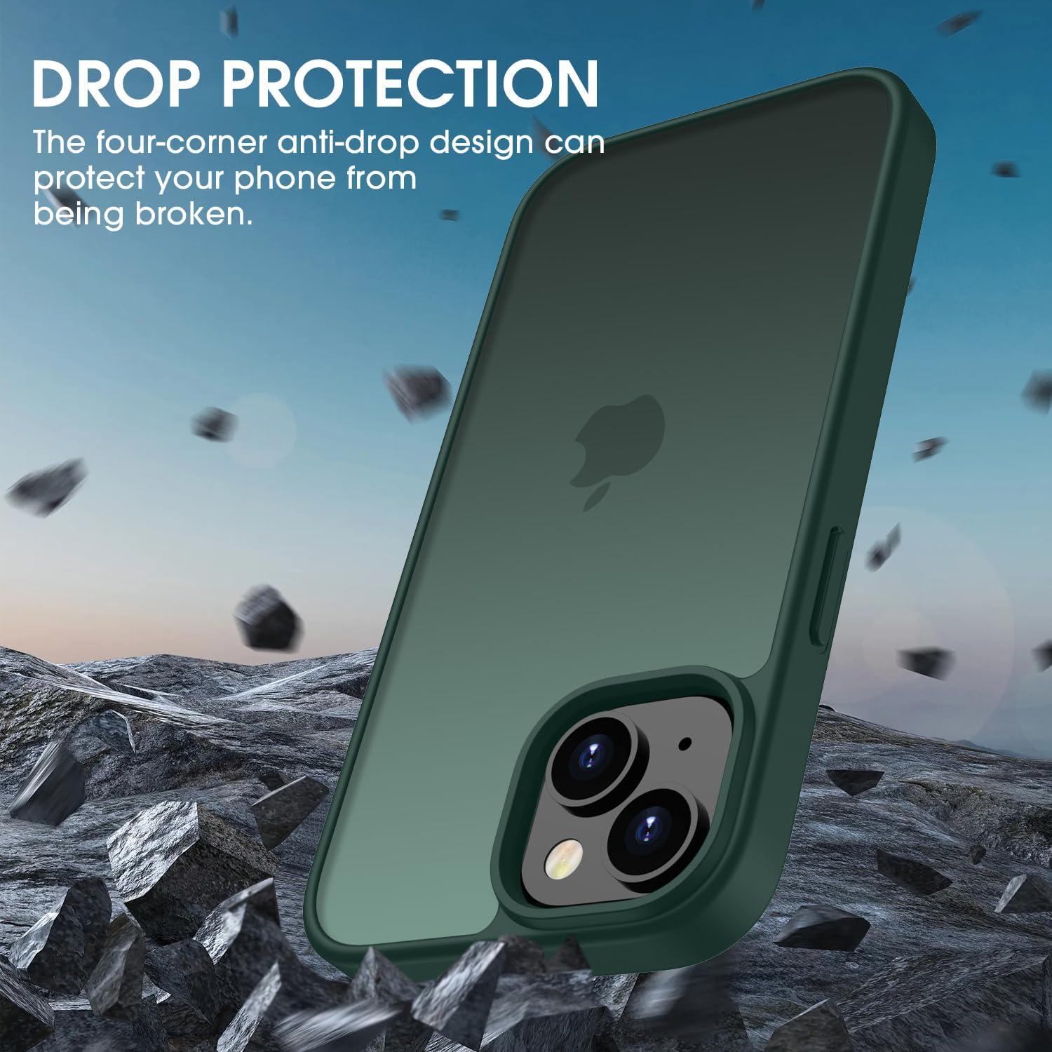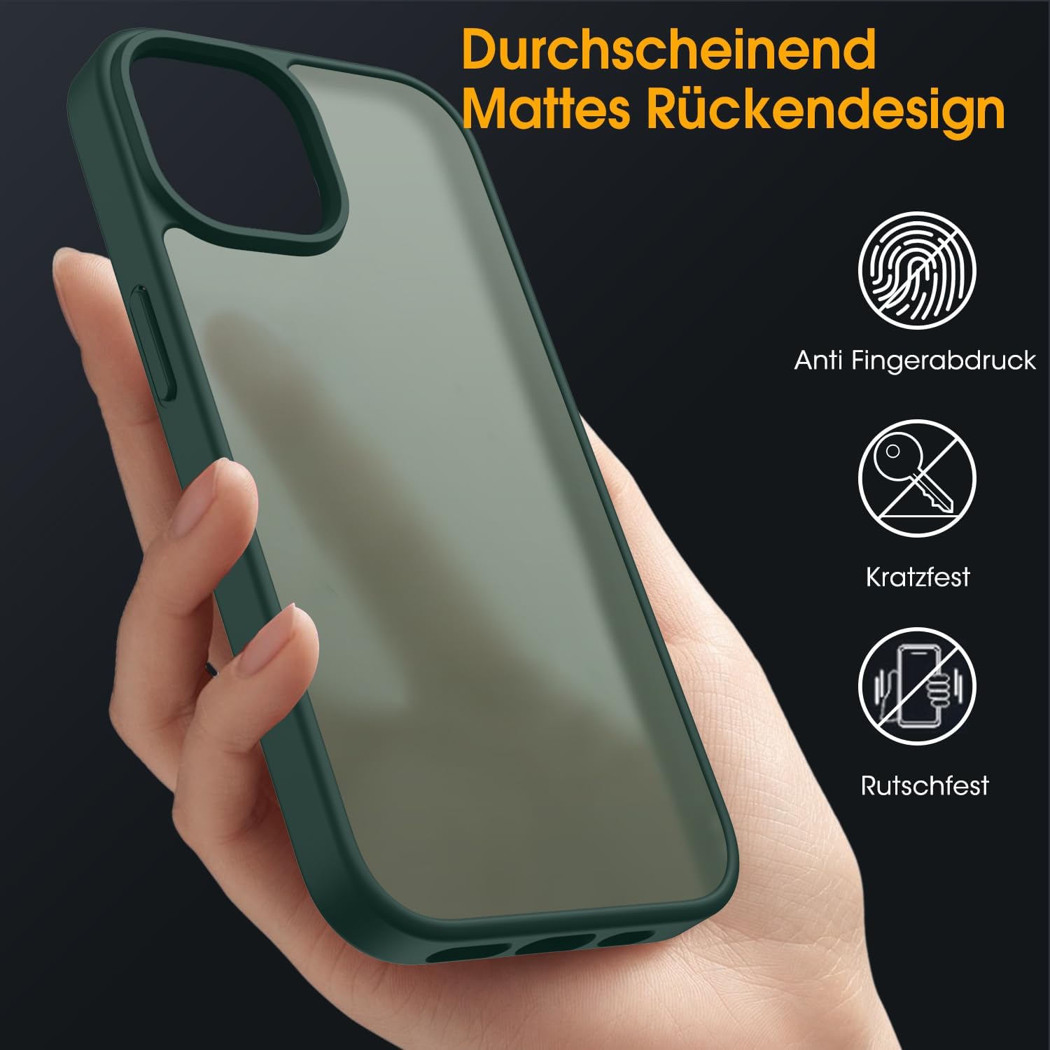 Матов калъф HGH за iPhone 15 6.1 инча [Военна защита] Защитен калъф Velvet Touch Matt против надраскване, прозрачен защитен калъф за гръб, против пръстови отпечатъци (зелен)