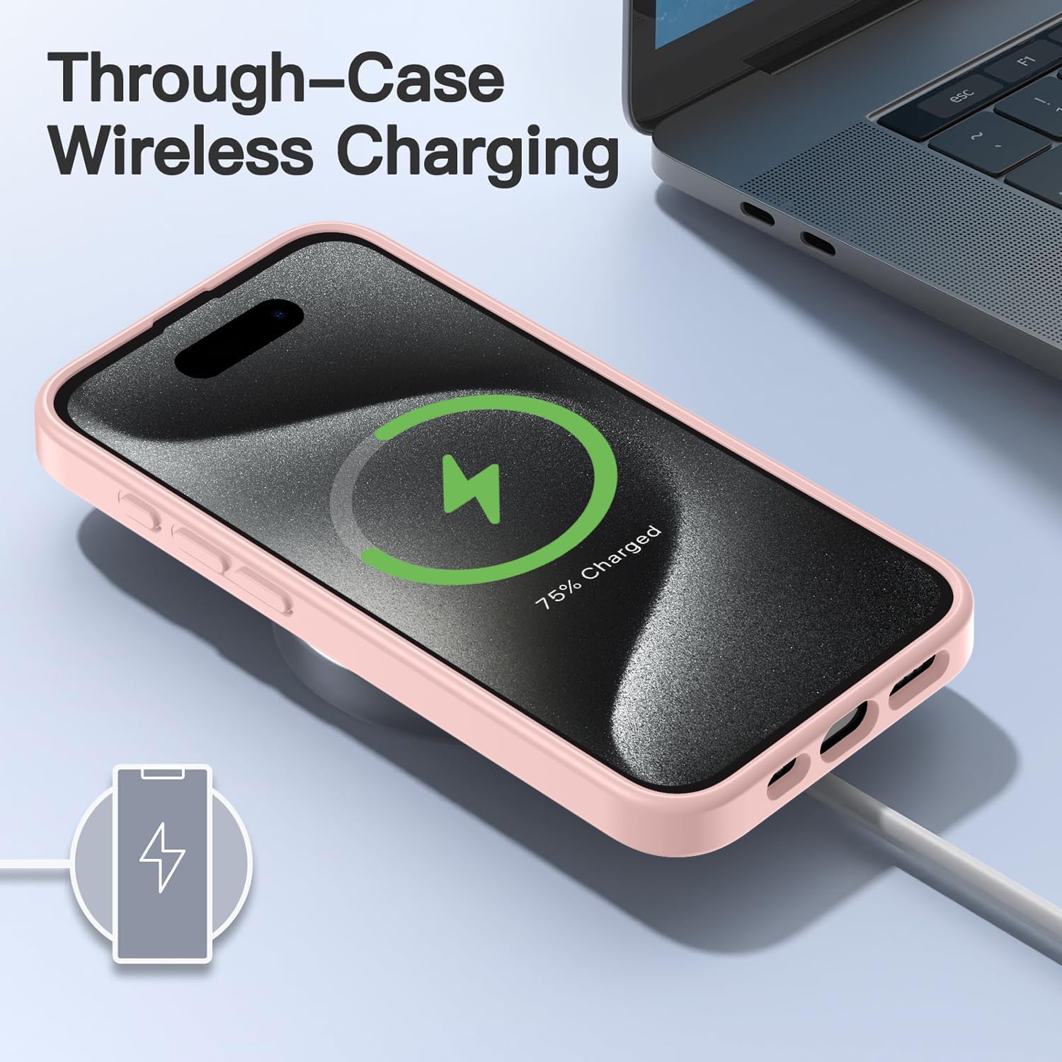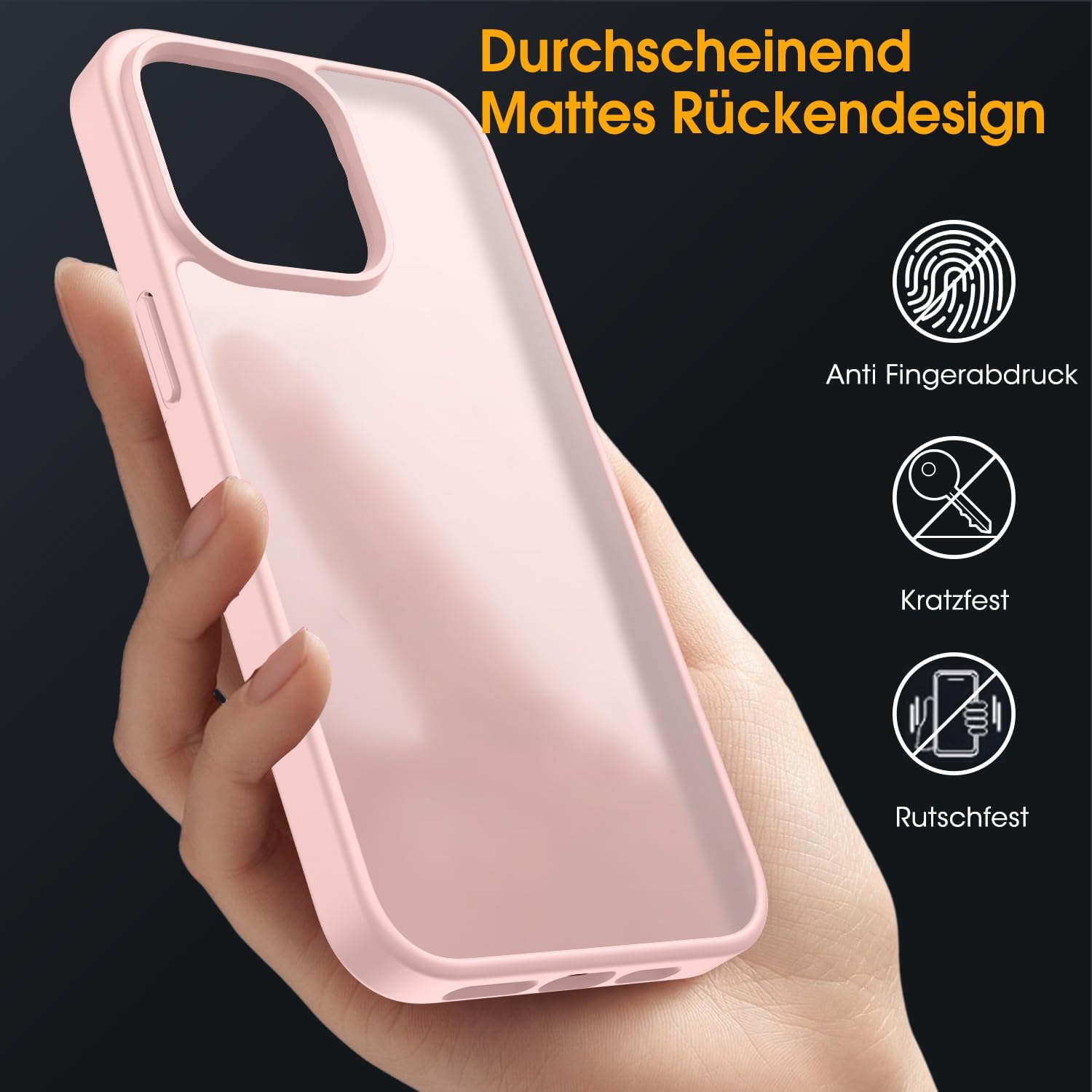 Матов калъф HGH за iPhone 15 Pro 6.1 инча, военен защитен калъф, кадифен матов, устойчив на надраскване, прозрачен защитен калъф за гръб, калъф против пръстови отпечатъци (розов)