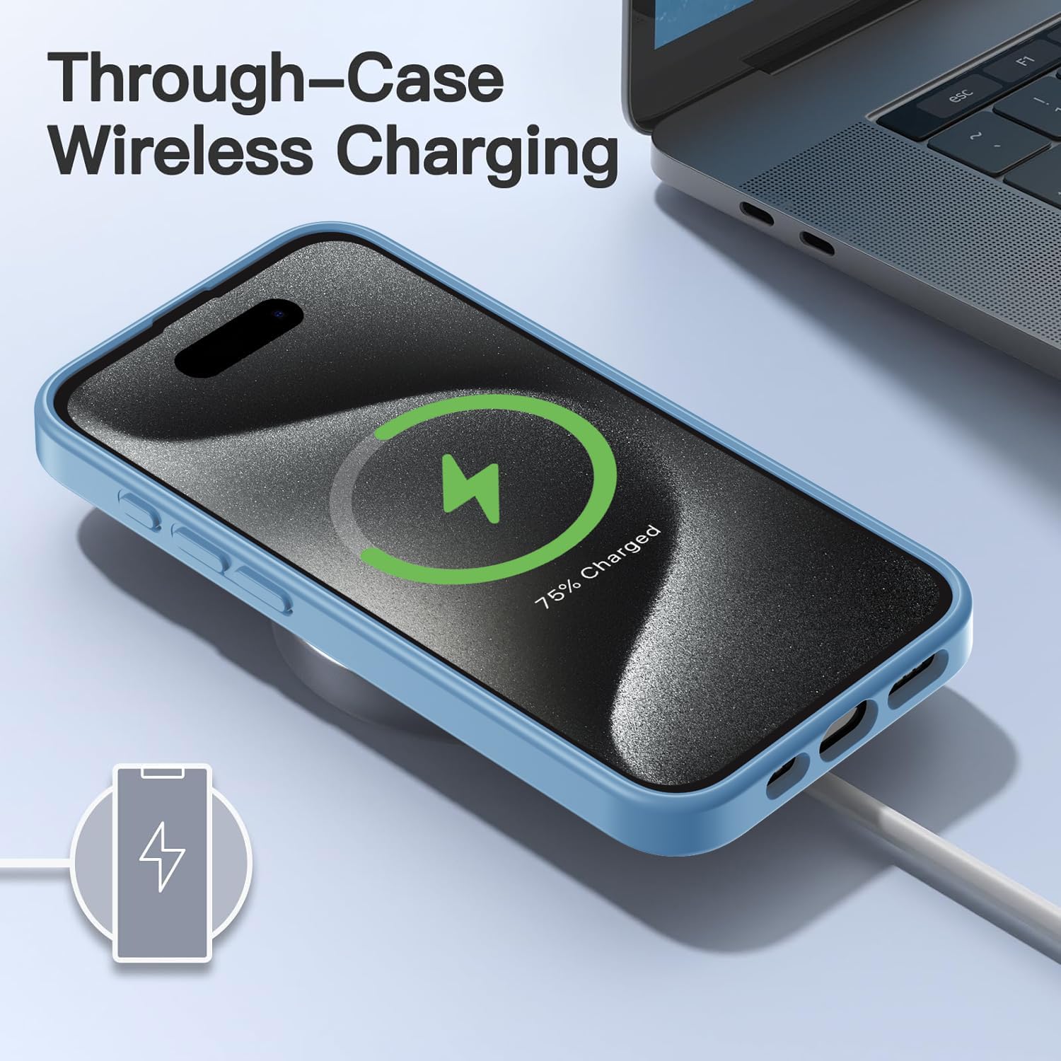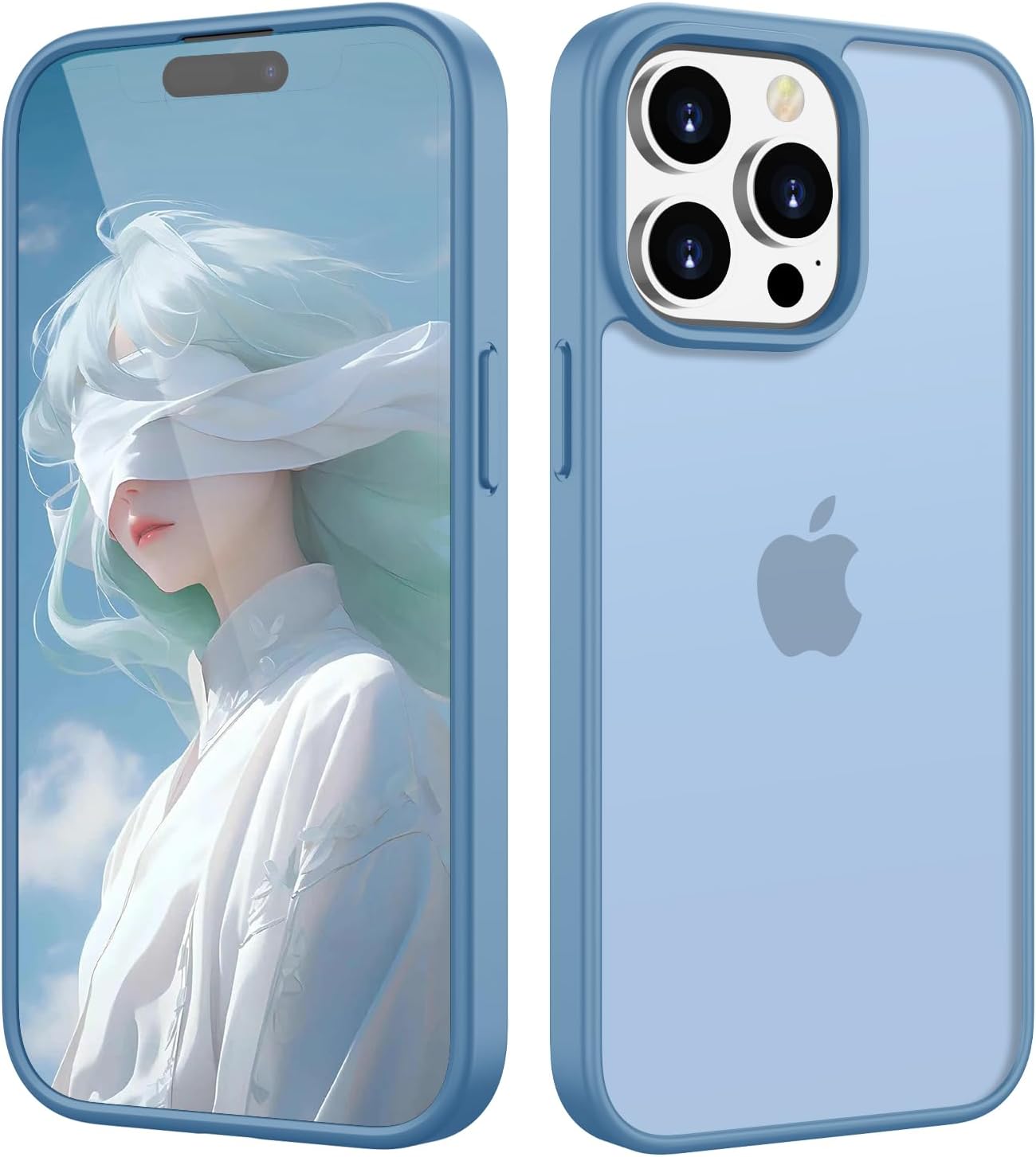 Матов калъф HGH за iPhone 15 Pro 6.1 инча [Военна защита] Защитен калъф Velvet Touch Matt против надраскване, прозрачен защитен калъф за гръб, против пръстови отпечатъци (бебешко син)
