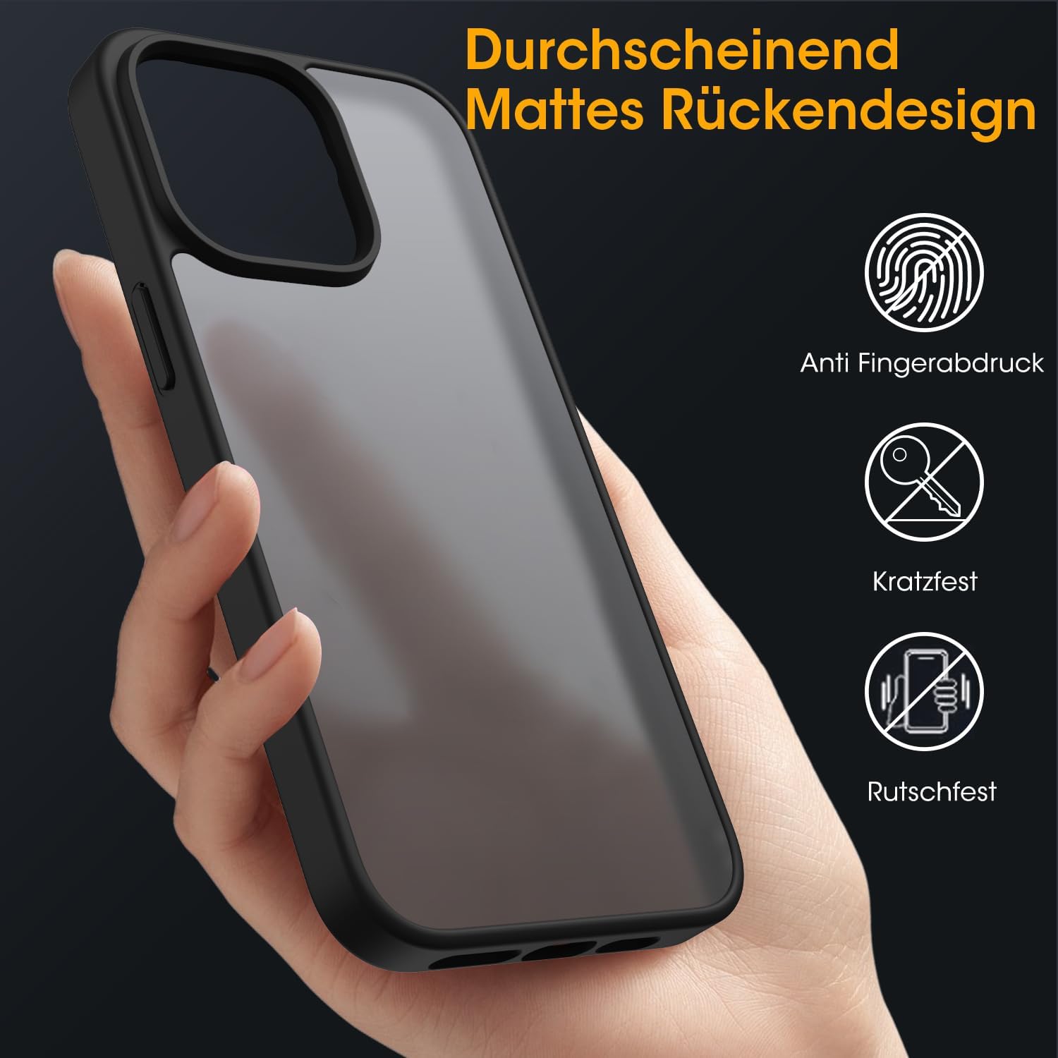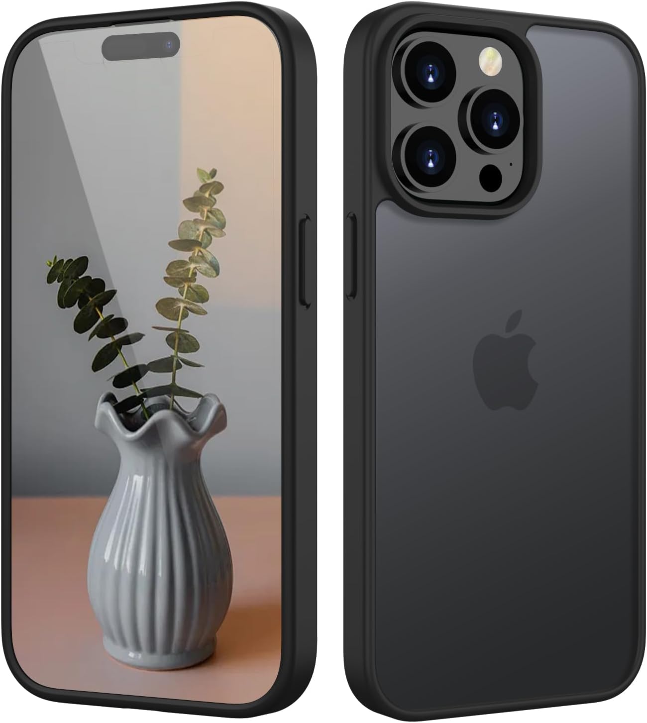 Матов калъф HGH за iPhone 15 Pro 6.1 инча [Военна защита] Защитен калъф Velvet Touch Matt против надраскване, прозрачен защитен калъф за гръб, против пръстови отпечатъци (черен)
