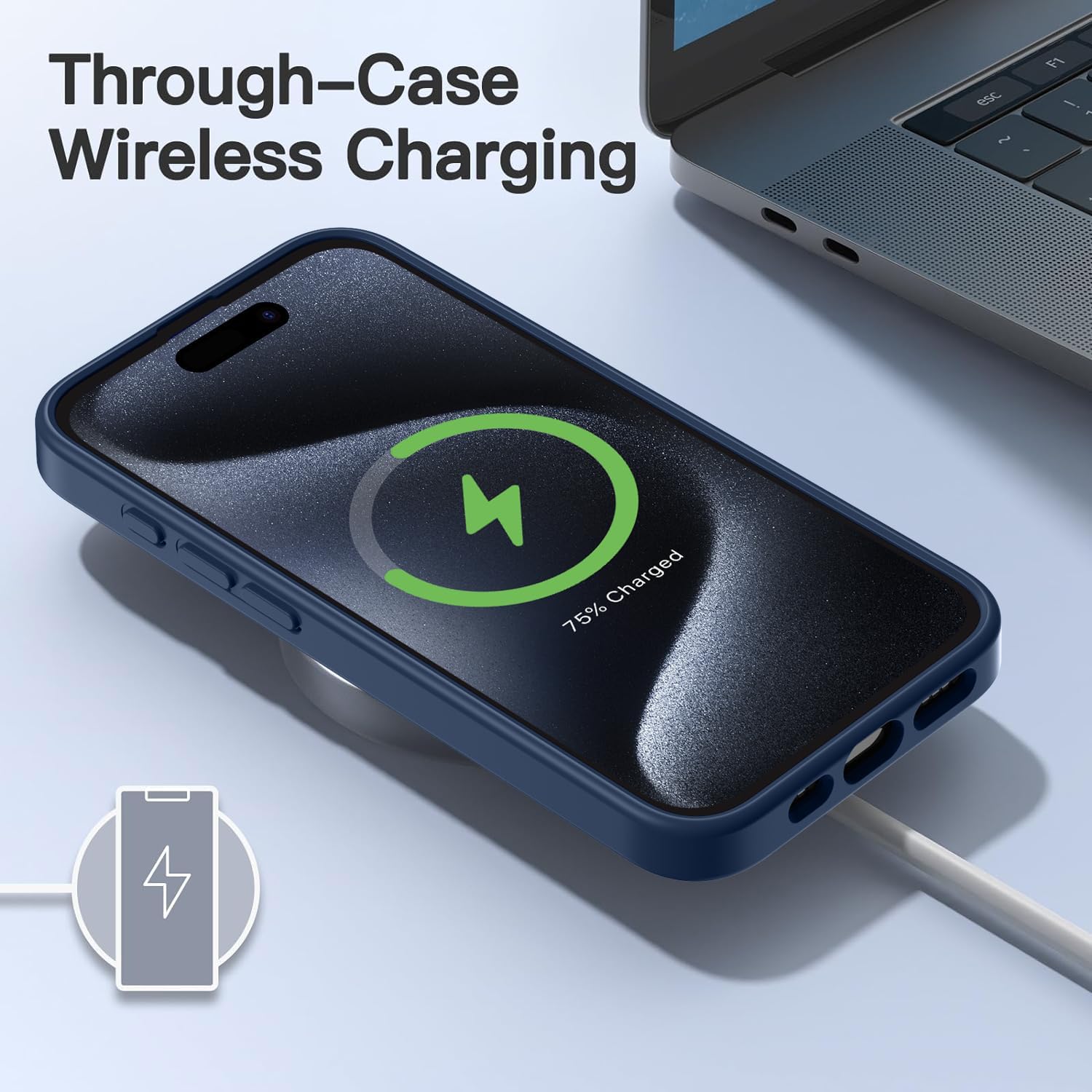 Матов калъф HGH за iPhone 15 Pro 6.1 инча [Военна защита] Защитен калъф Velvet Touch Matt против надраскване, прозрачен защитен калъф за гръб, против пръстови отпечатъци (тъмносин)