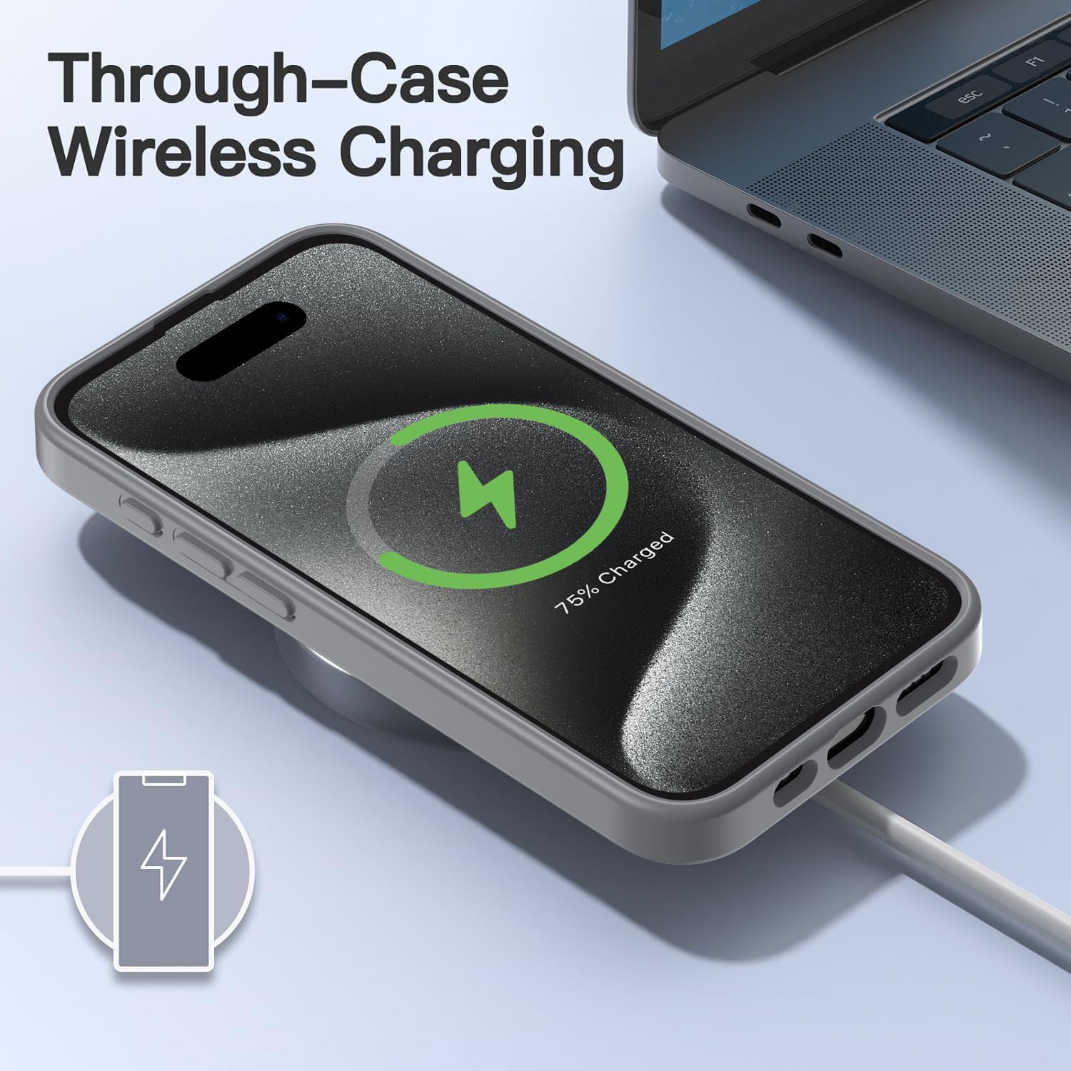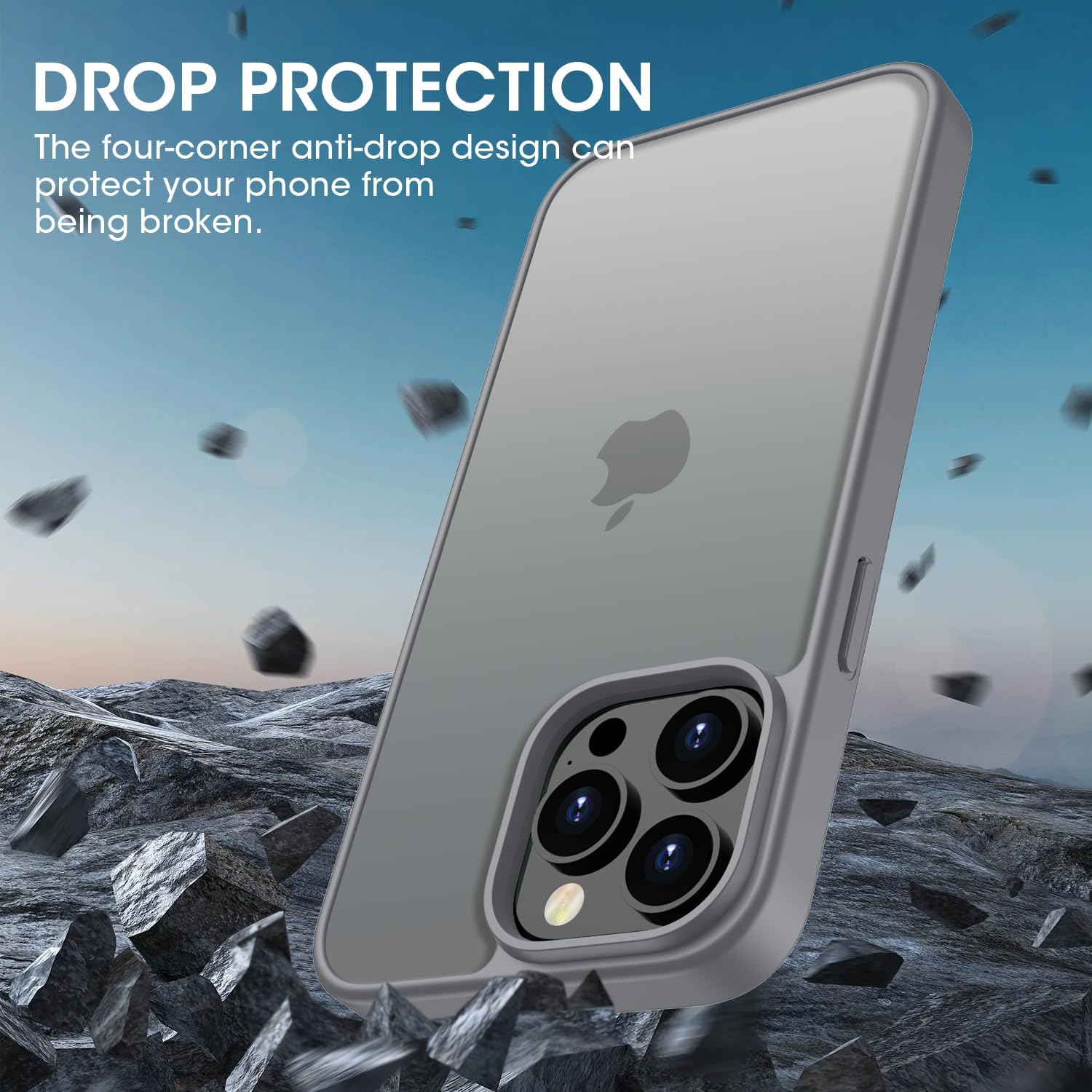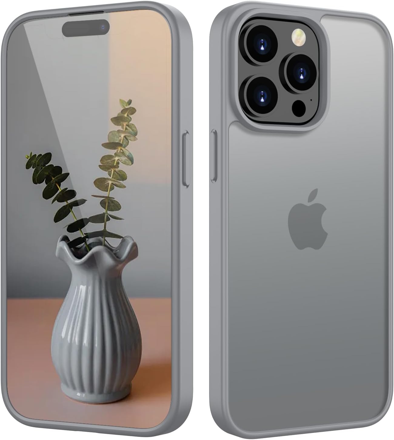 Матов калъф HGH за iPhone 15 Pro 6.1 инча [Военна защита] Защитен калъф Velvet Touch Matt, устойчив на надраскване, прозрачен защитен калъф за гръб, против пръстови отпечатъци (титаниево сив)