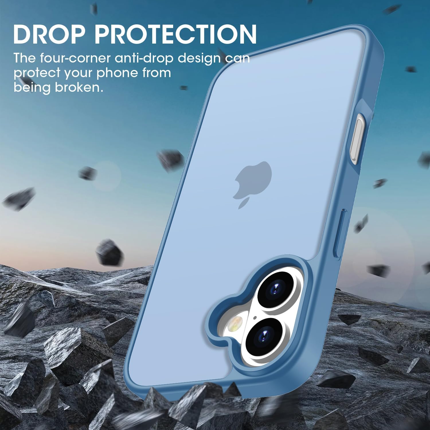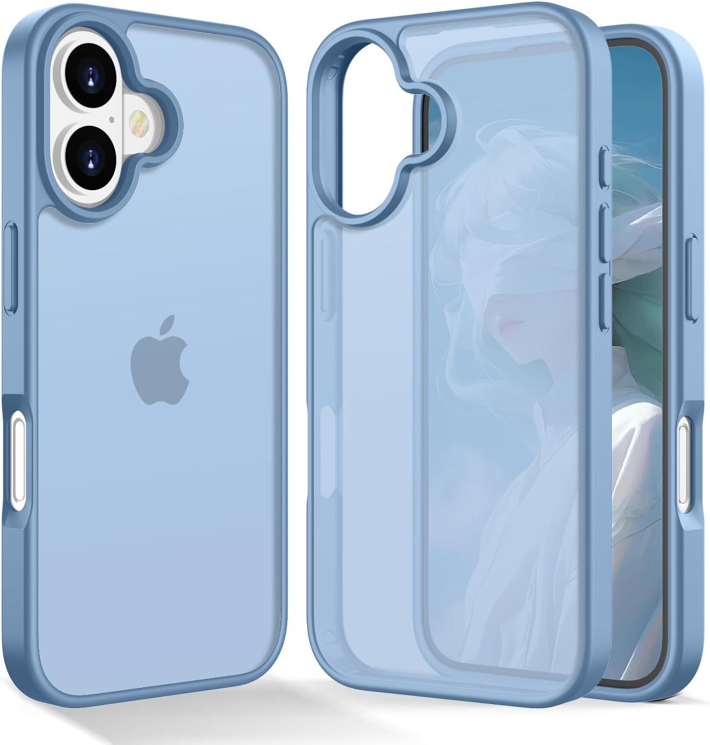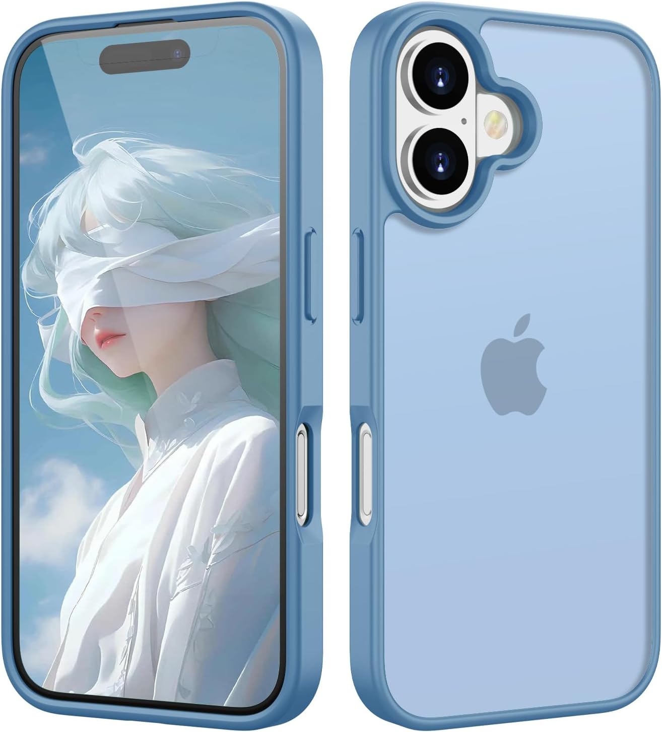 Матов калъф HGH за iPhone 16 6.1 инча, военна защита, защитен калъф от кадифено матово кадифено покритие, против надраскване, прозрачен защитен калъф за гръб, против пръстови отпечатъци (бебешко син)