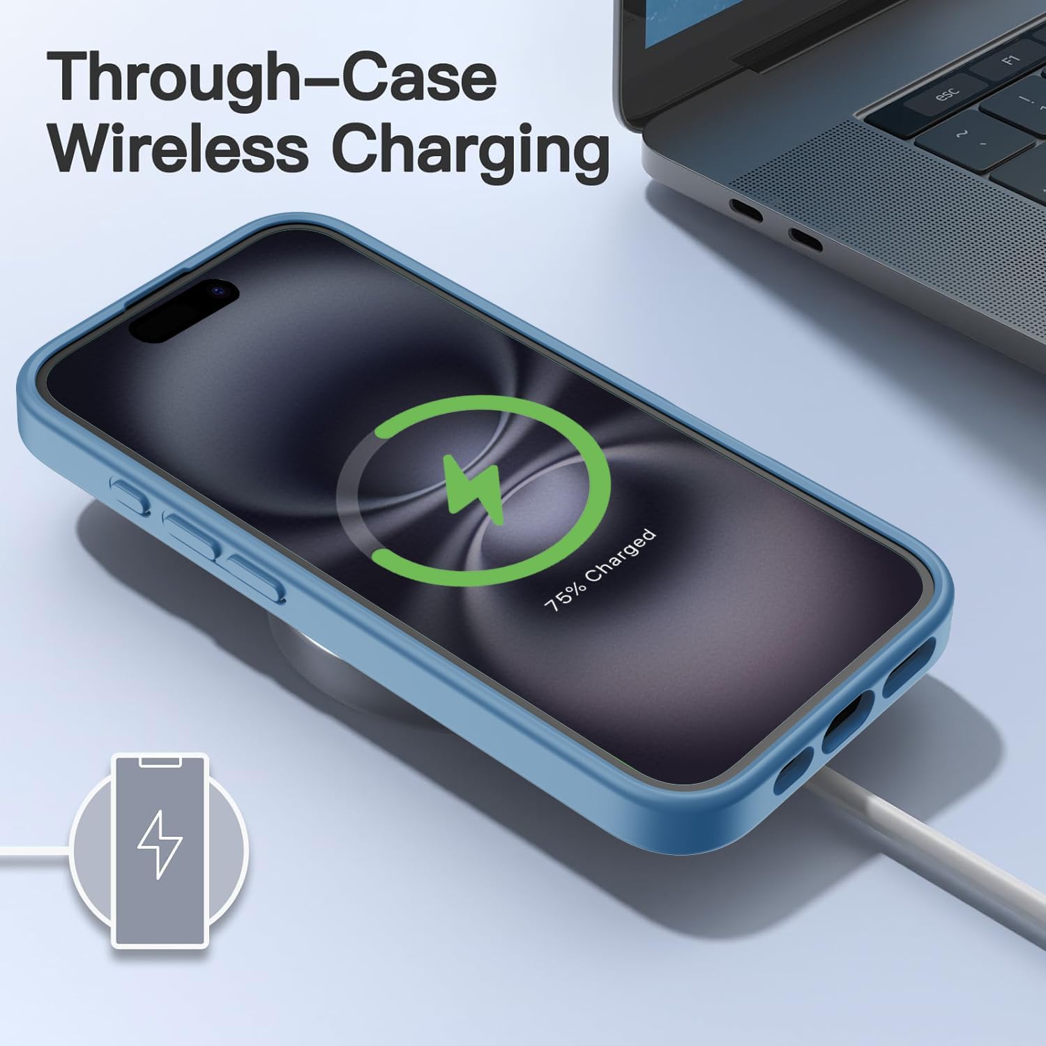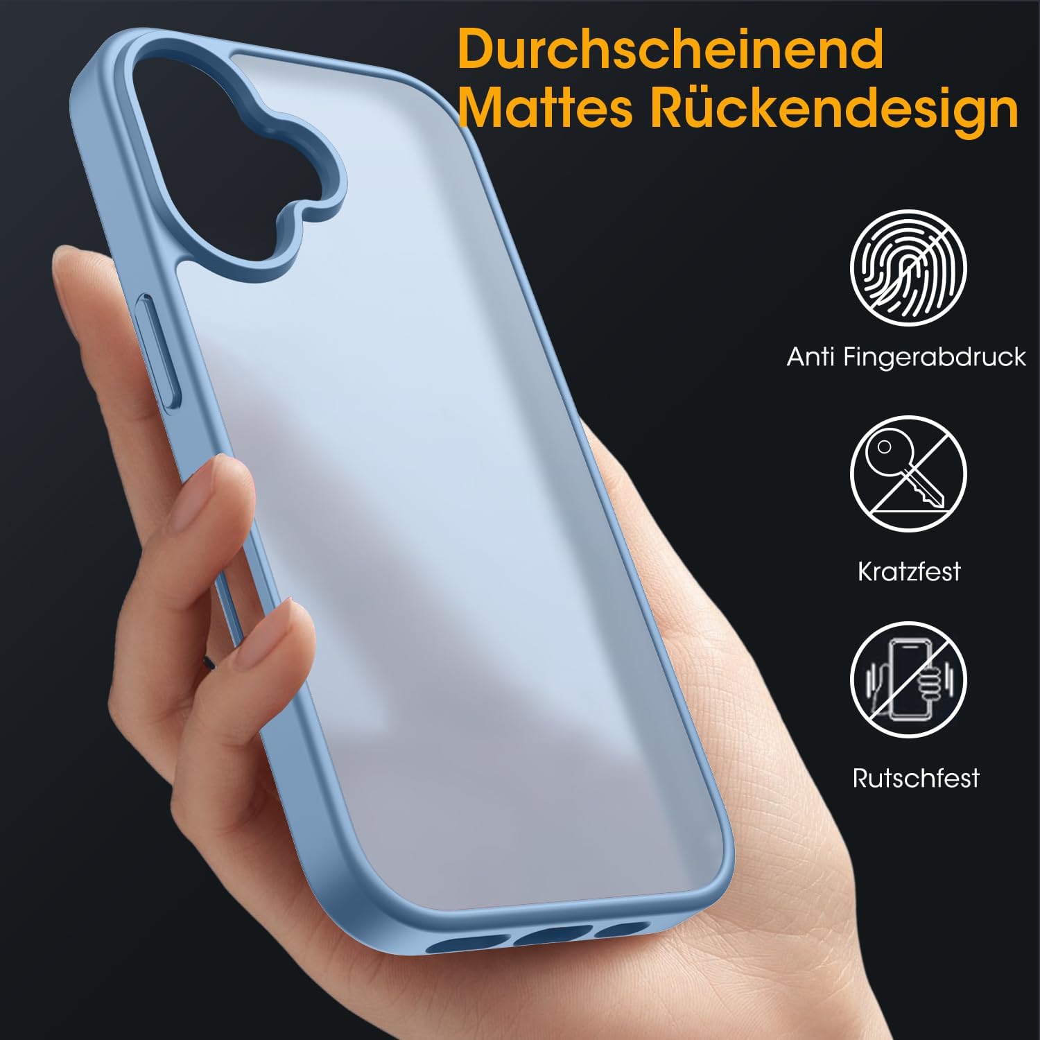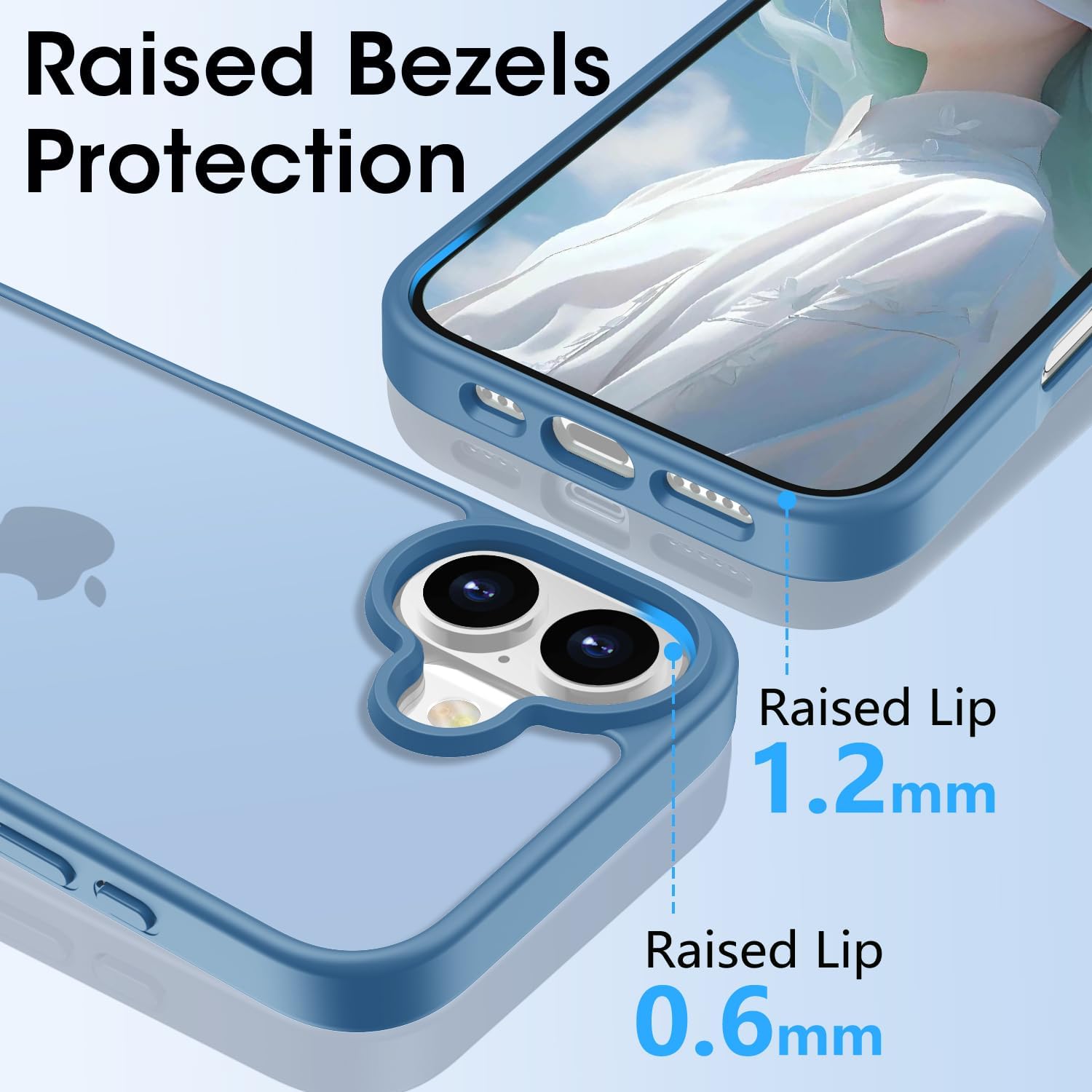Матов калъф HGH за iPhone 16 6.1 инча, военна защита, защитен калъф от кадифено матово кадифено покритие, против надраскване, прозрачен защитен калъф за гръб, против пръстови отпечатъци (бебешко син)