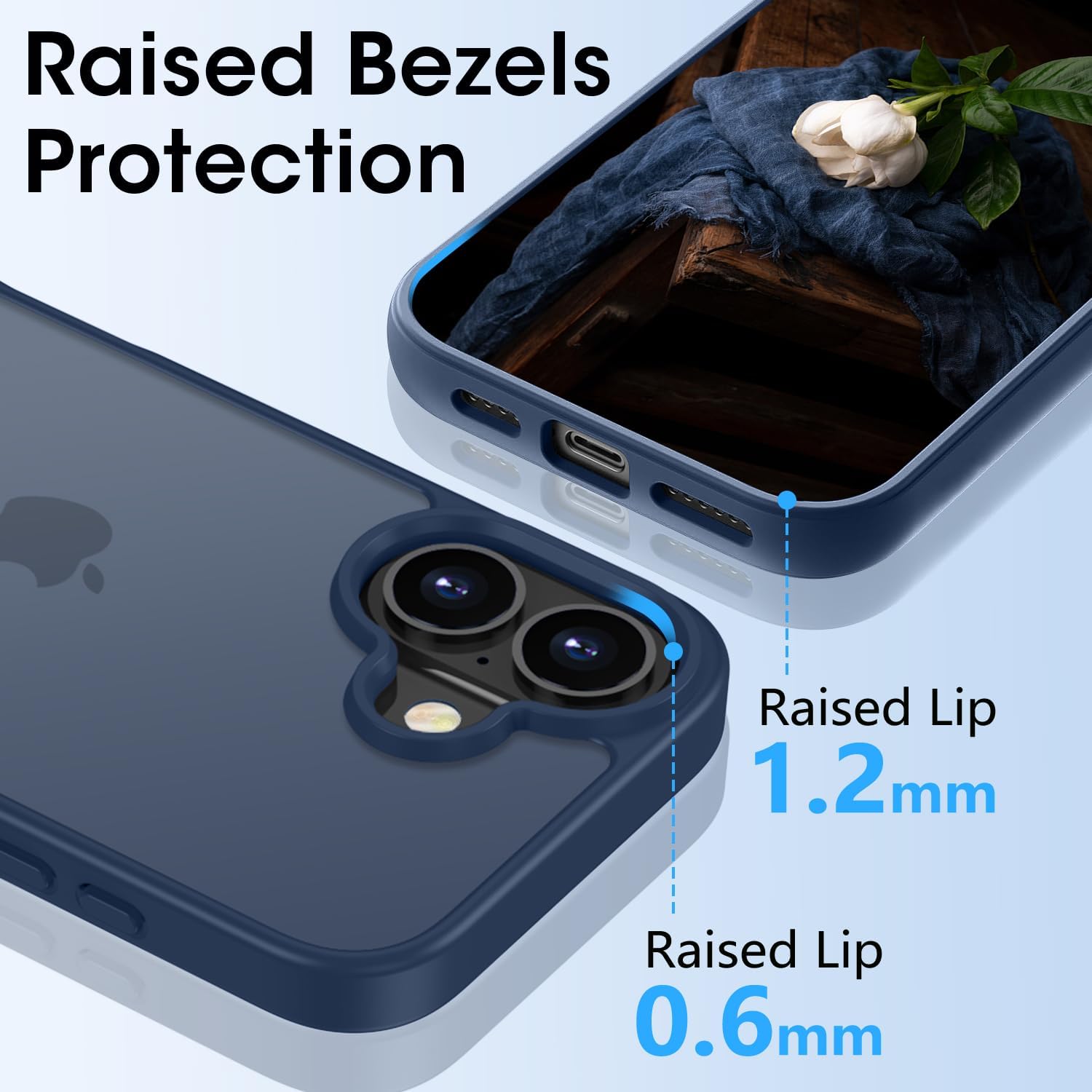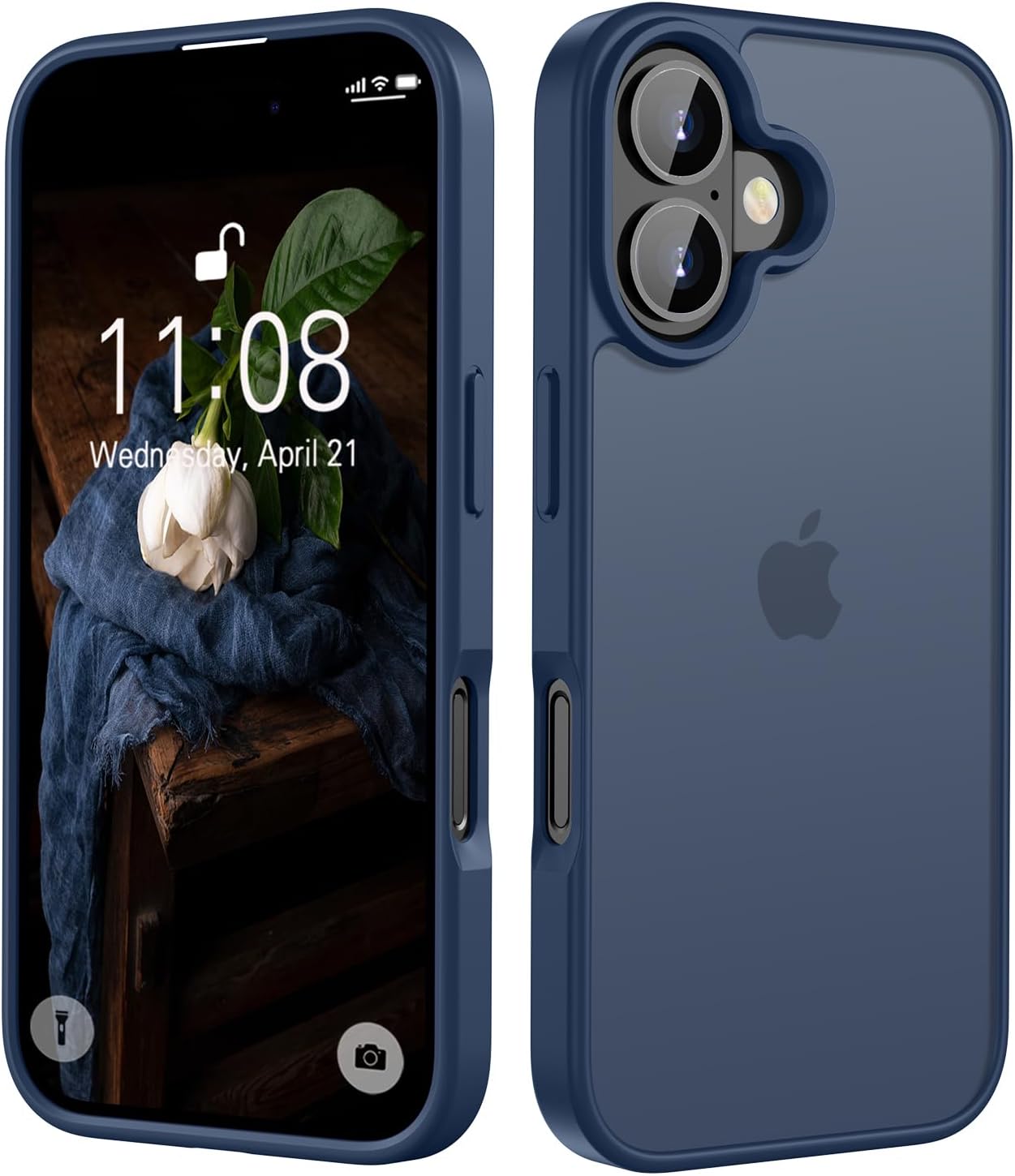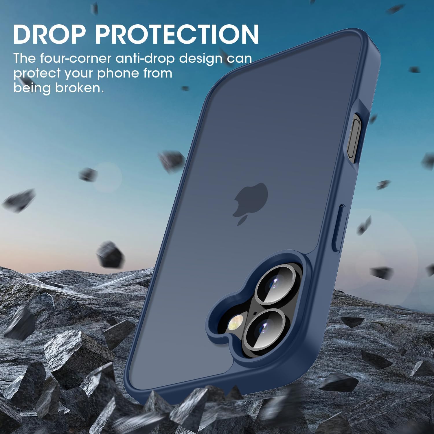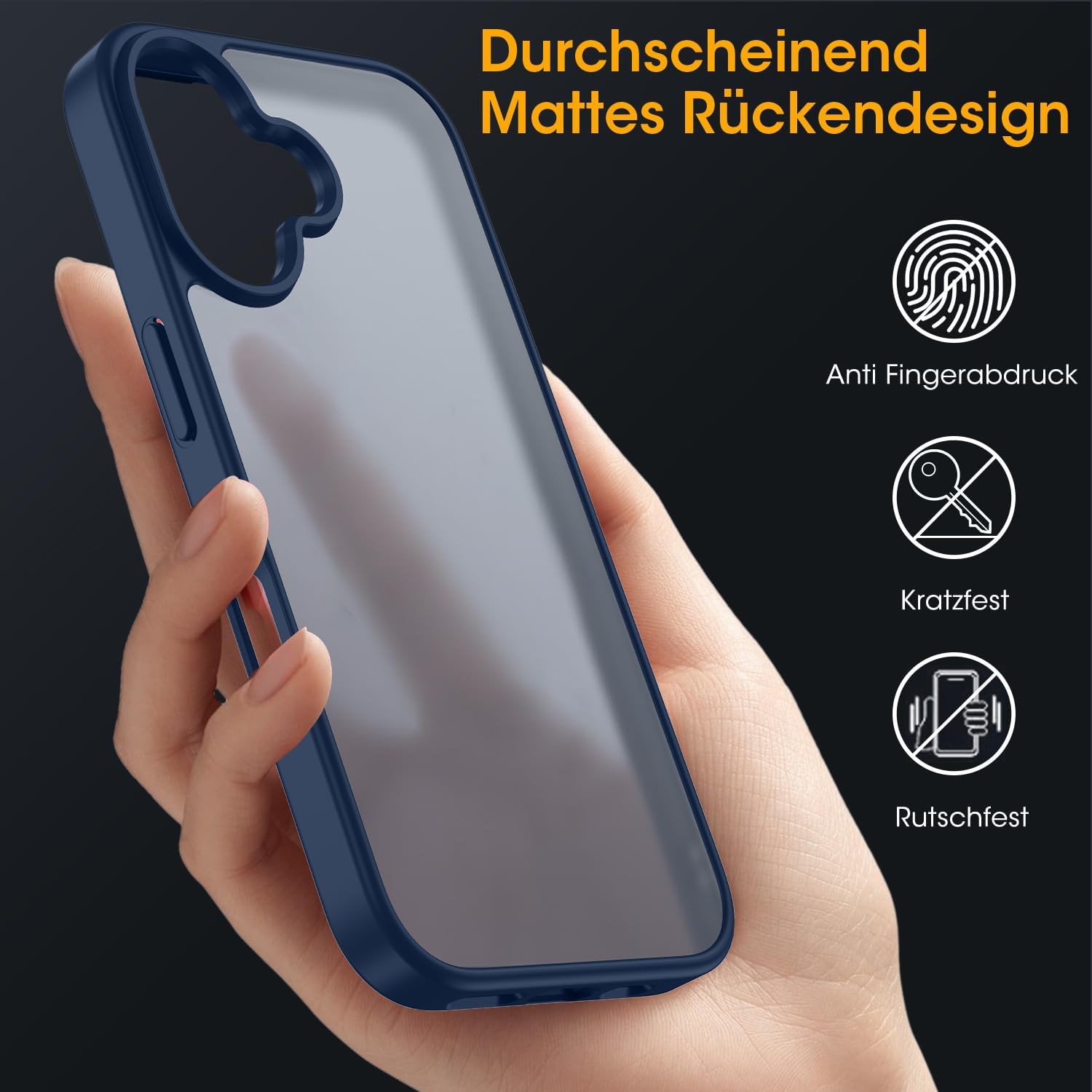 Матов калъф HGH за iPhone 16 6.1 инча, военна защита, защитен калъф от кадифено покритие, матов, против надраскване, прозрачен защитен калъф за гръб, против пръстови отпечатъци (тъмносин)