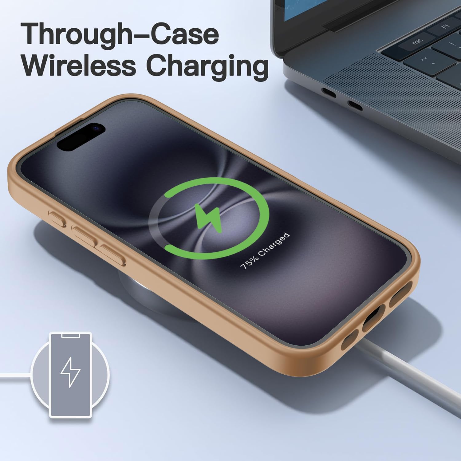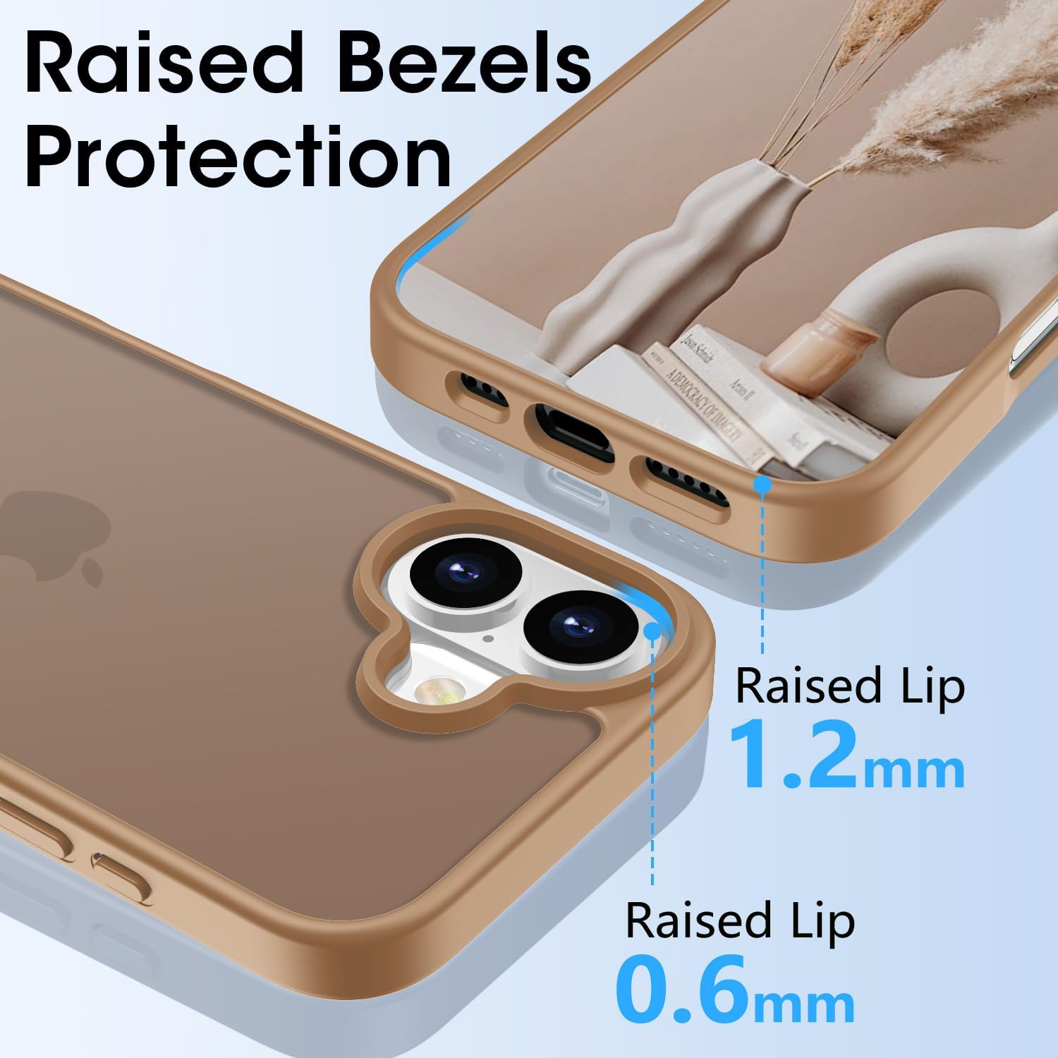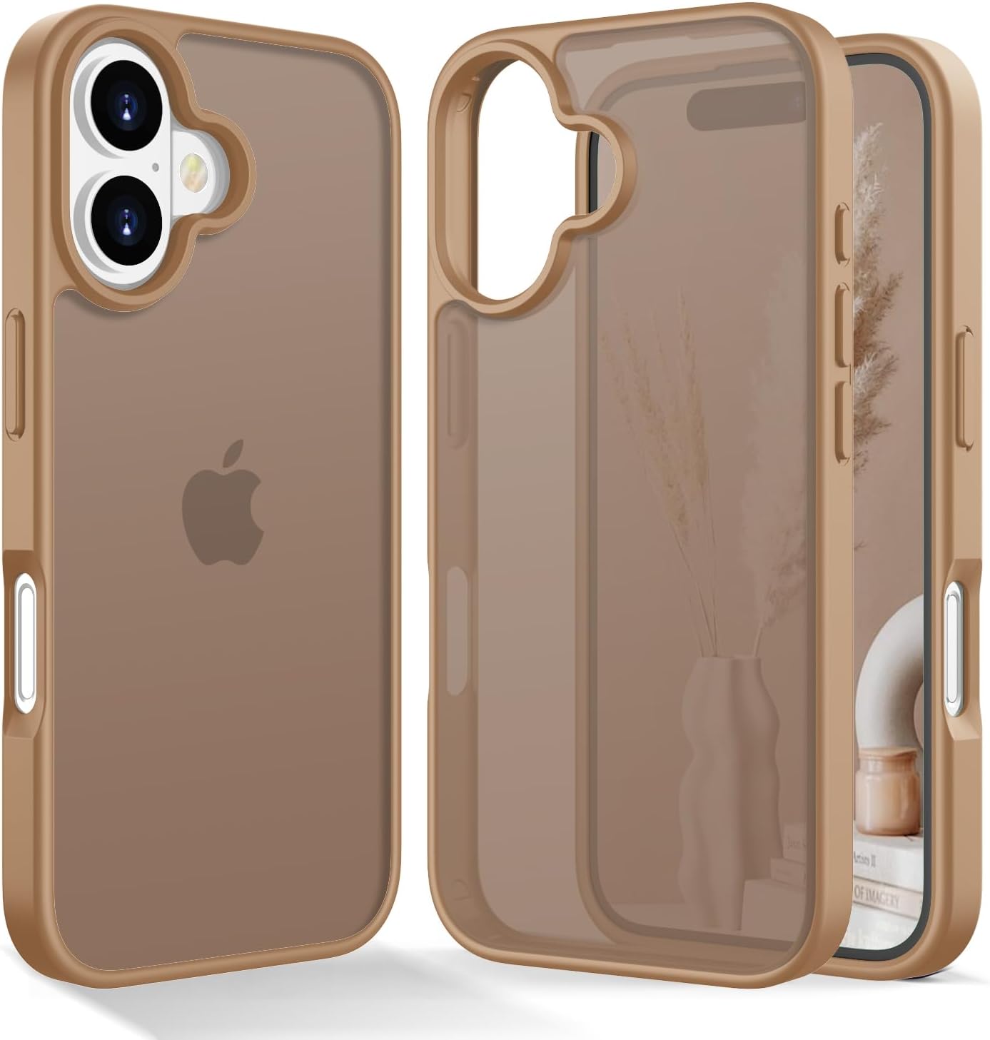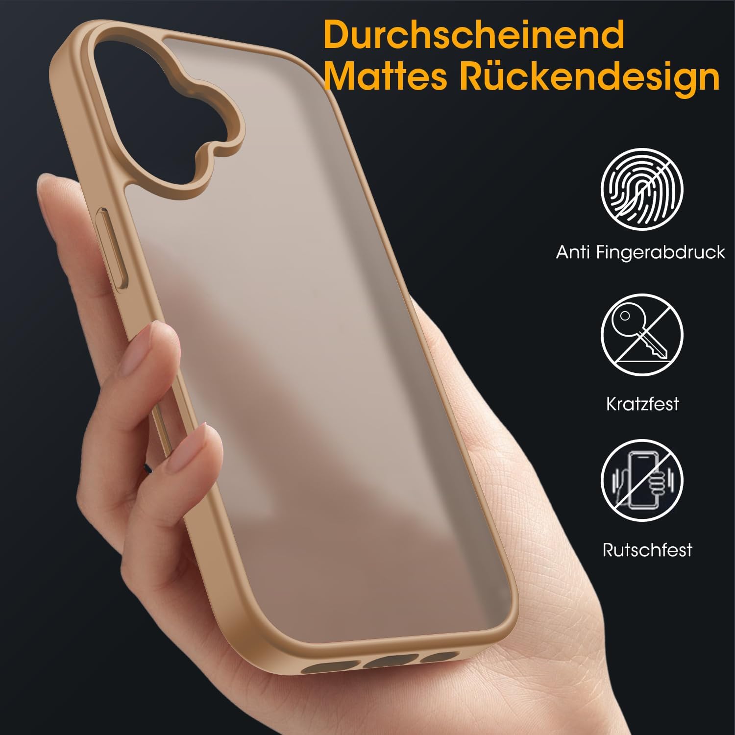 Матов калъф HGH за iPhone 16 6.1 инча [Военна защита] Защитен калъф Velvet Touch Matt против надраскване, Прозрачен защитен калъф за гръб, Против пръстови отпечатъци (Пустинен пясък)