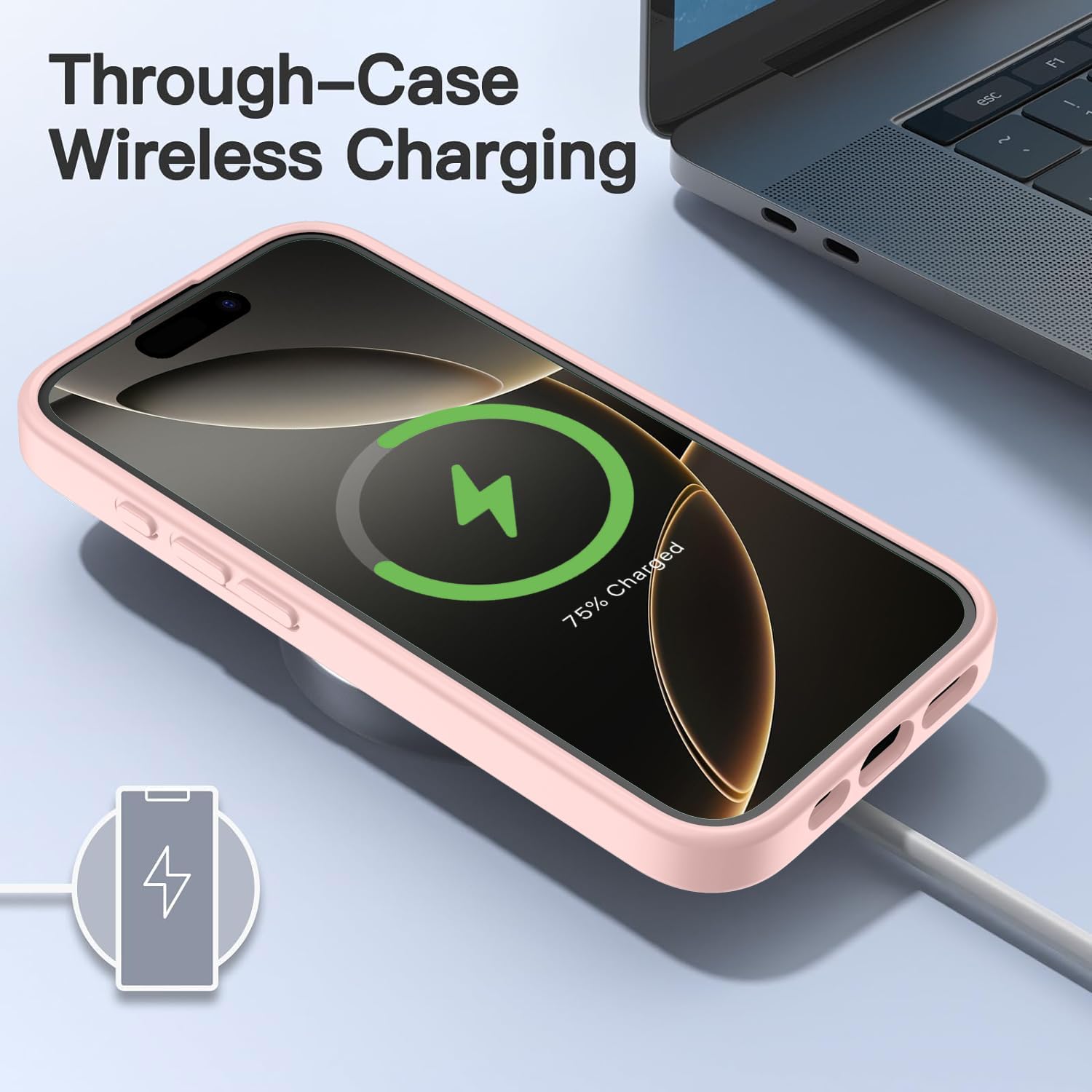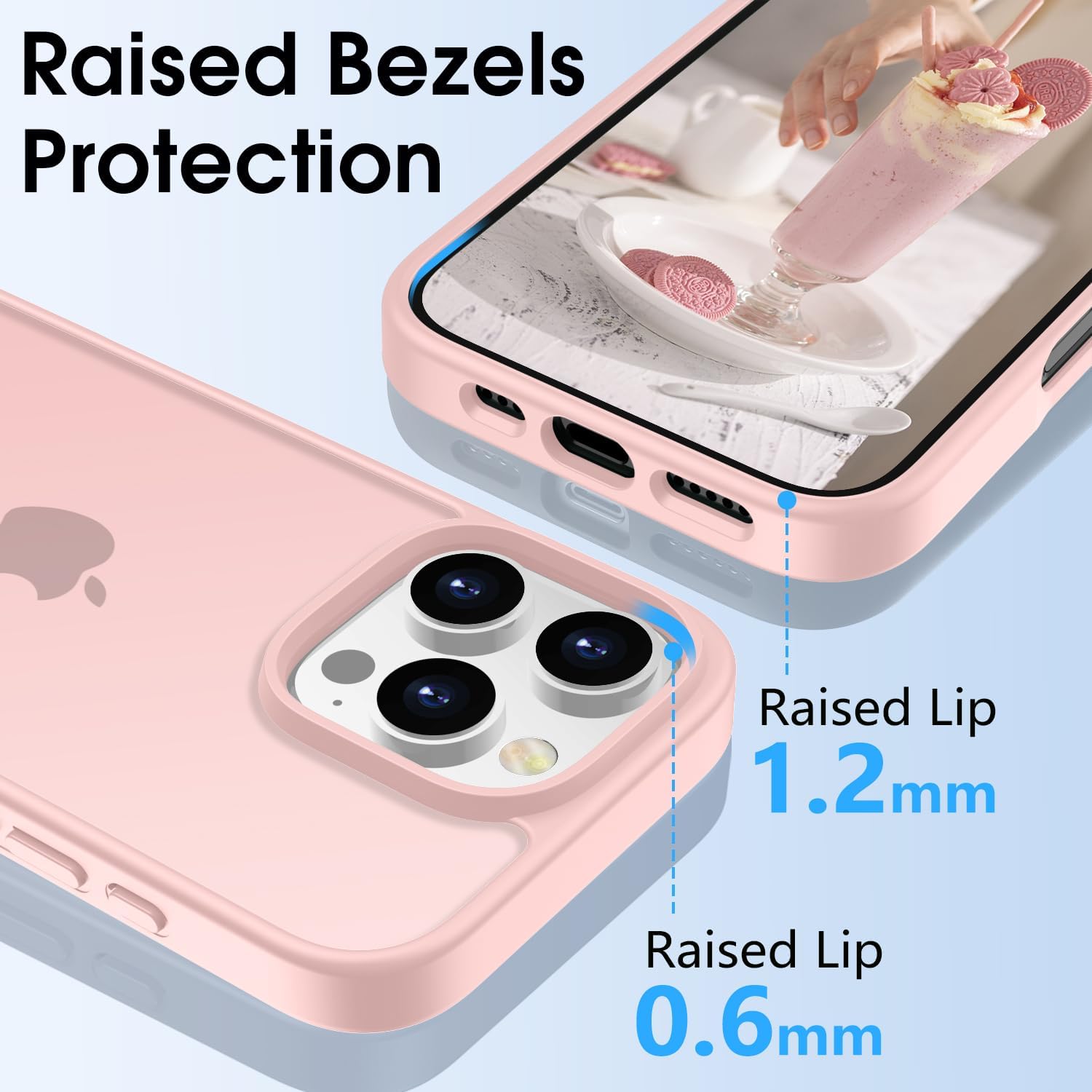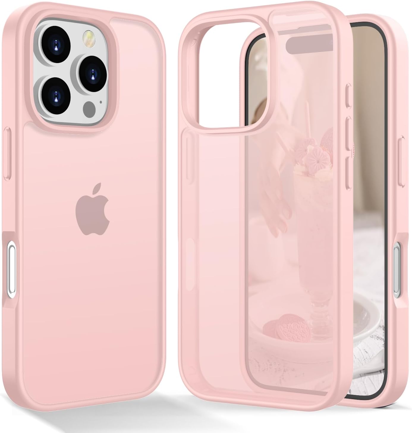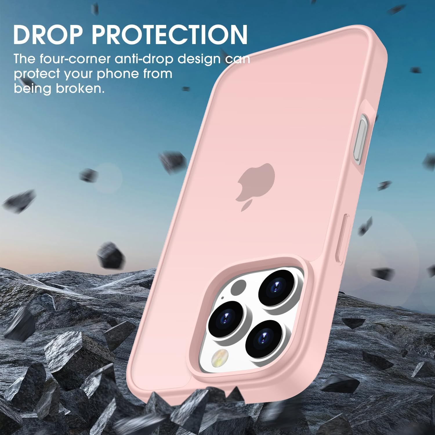 Матов калъф HGH за iPhone 16 Pro 6.3 инча, военна защита, защитен калъф от кадифено матово кадифено покритие, защита от надраскване, прозрачен защитен калъф за гръб, защита от пръстови отпечатъци (розов)