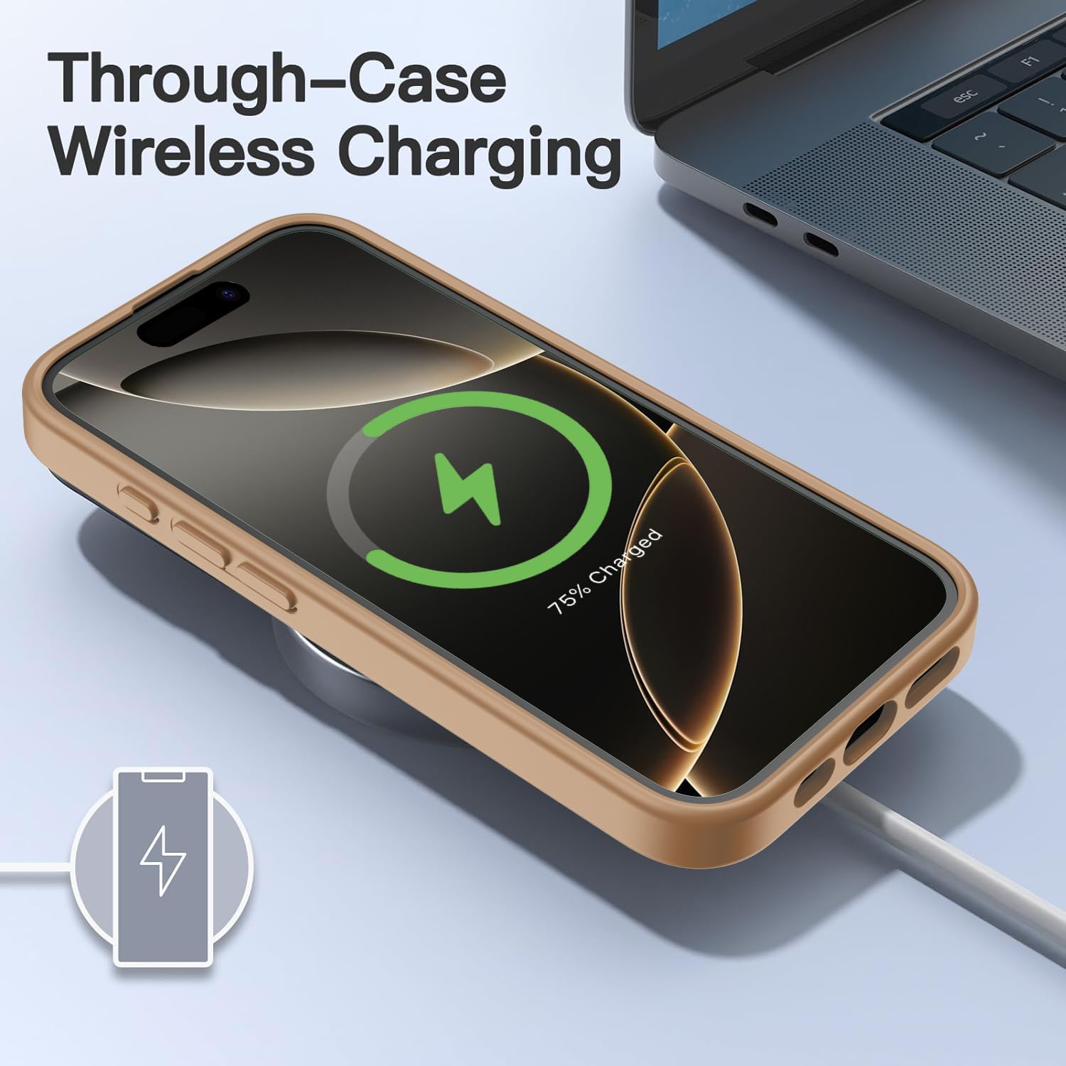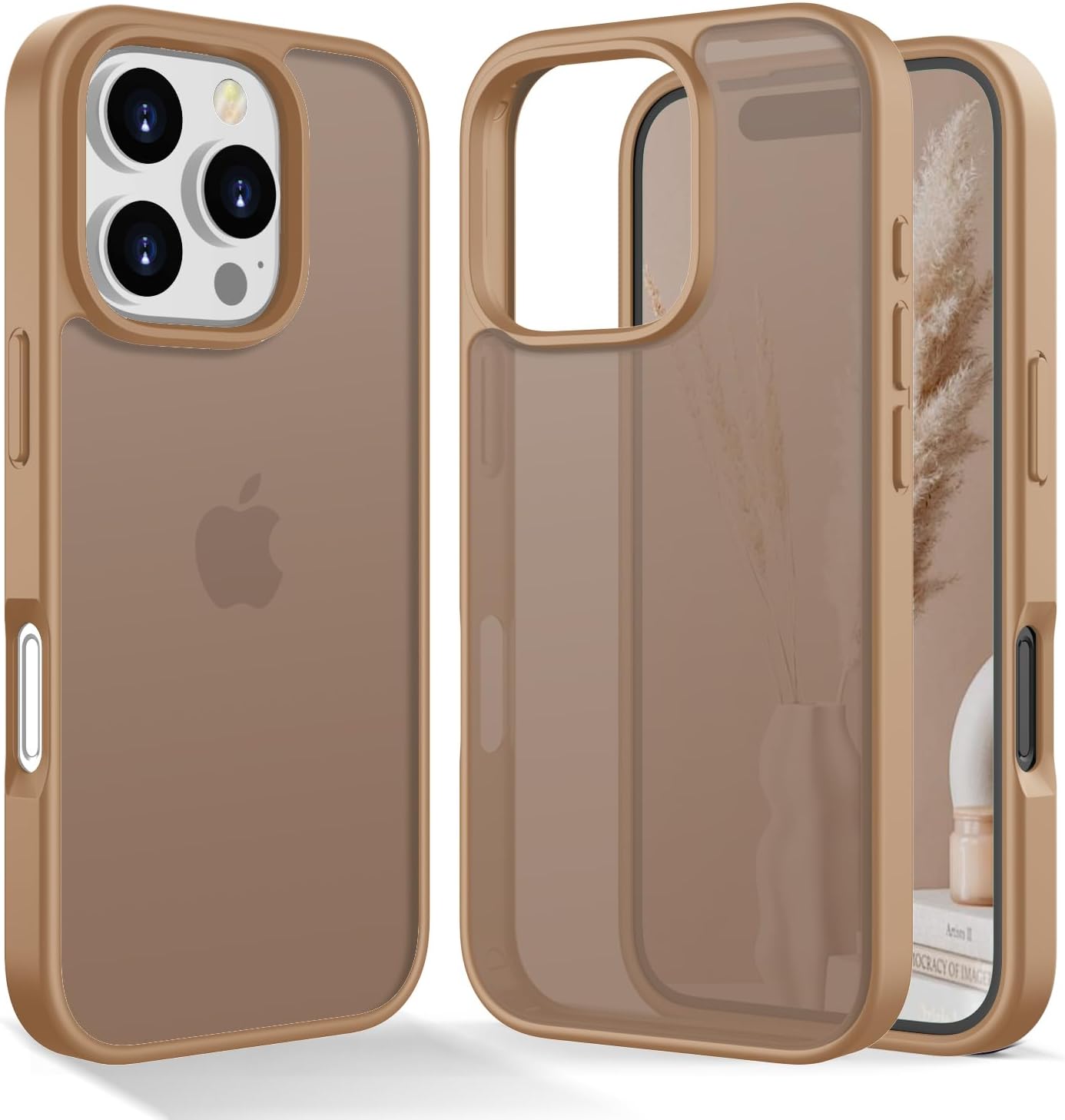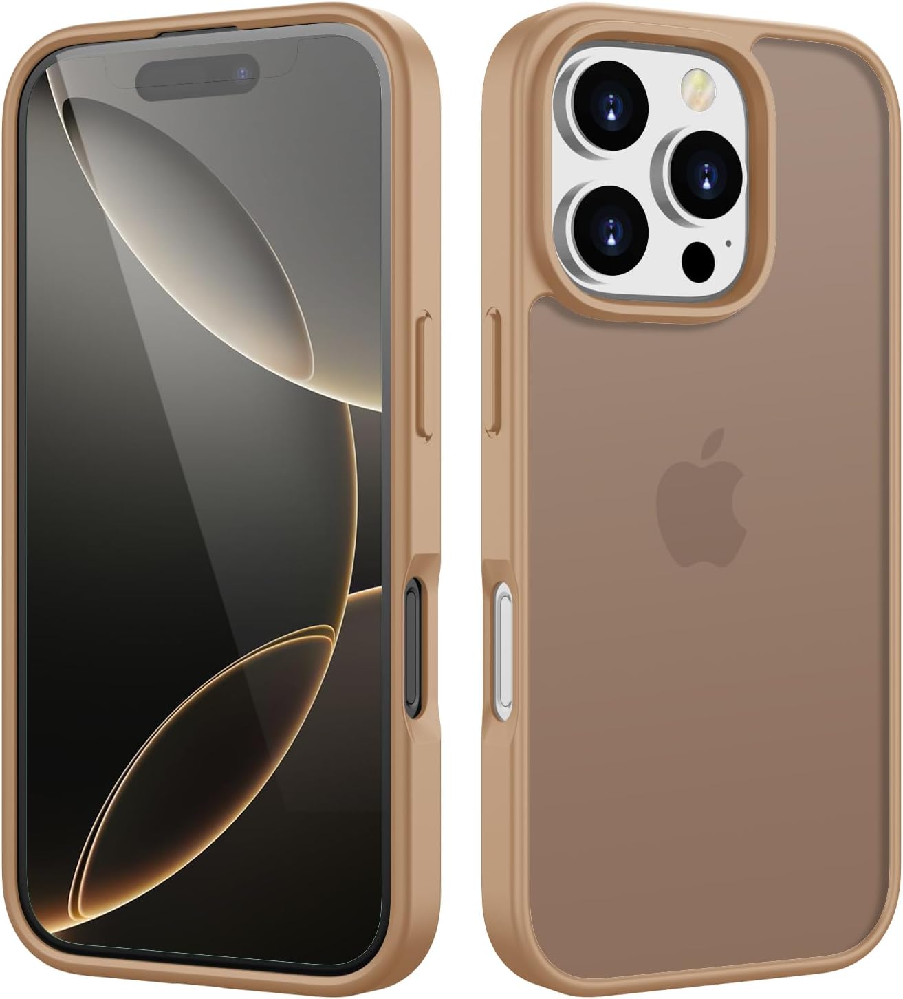 Матов калъф HGH за iPhone 16 Pro 6.3 инча [Военна защита] Защитен калъф Velvet Touch Matt против надраскване, Прозрачен защитен калъф за гръб, Против пръстови отпечатъци (Пустинен пясък)
