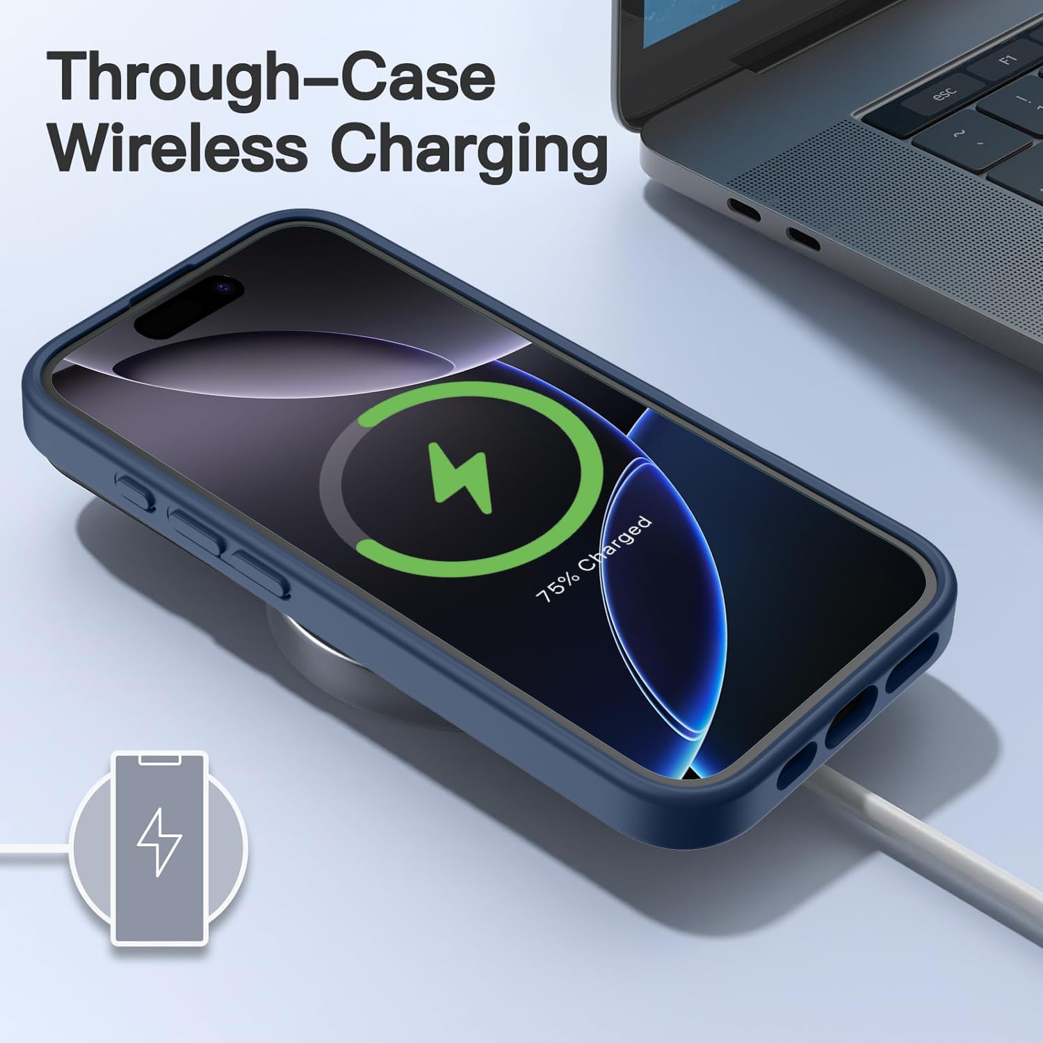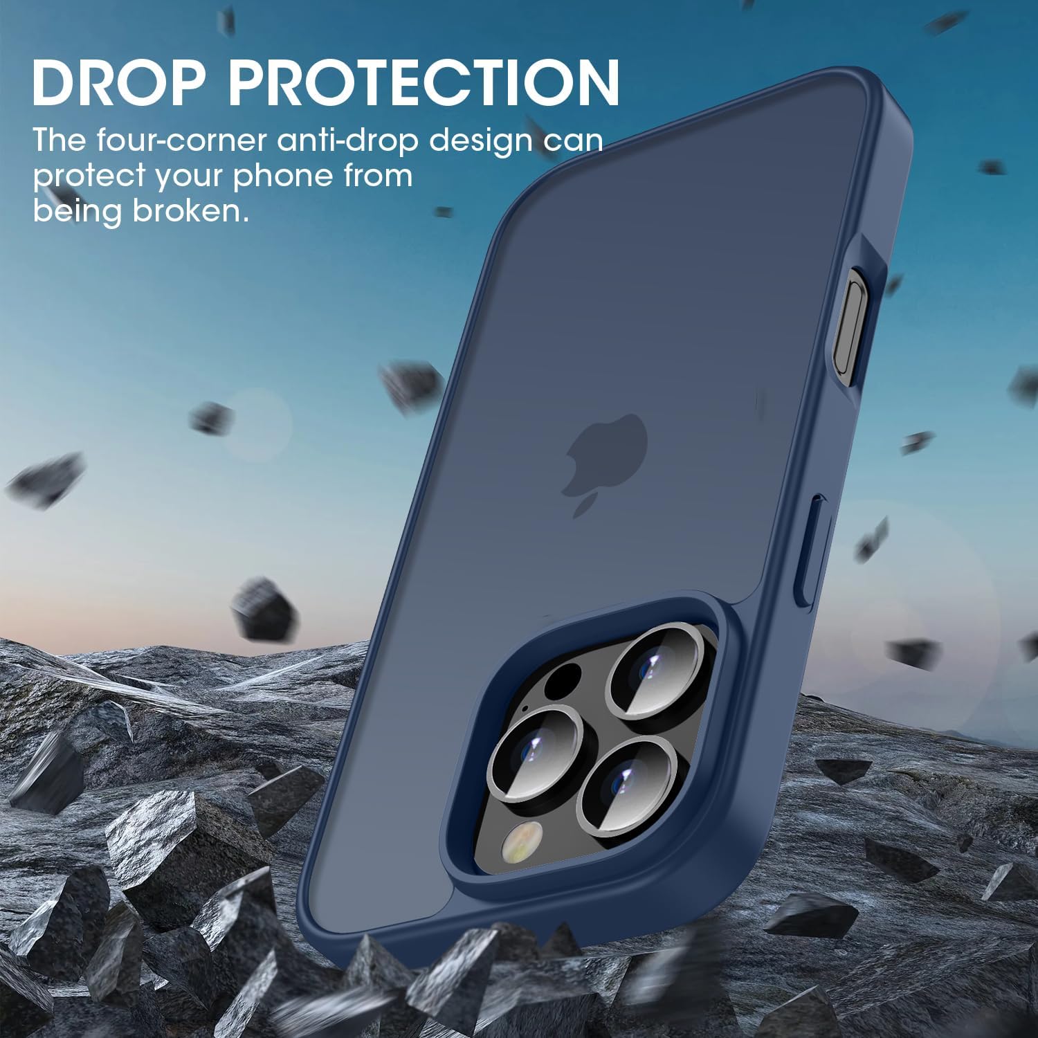 Матов калъф HGH за iPhone 16 Pro 6.3 инча [Военна защита] Защитен калъф Velvet Touch Matt против надраскване, прозрачен защитен калъф за гръб, против пръстови отпечатъци (тъмносин)