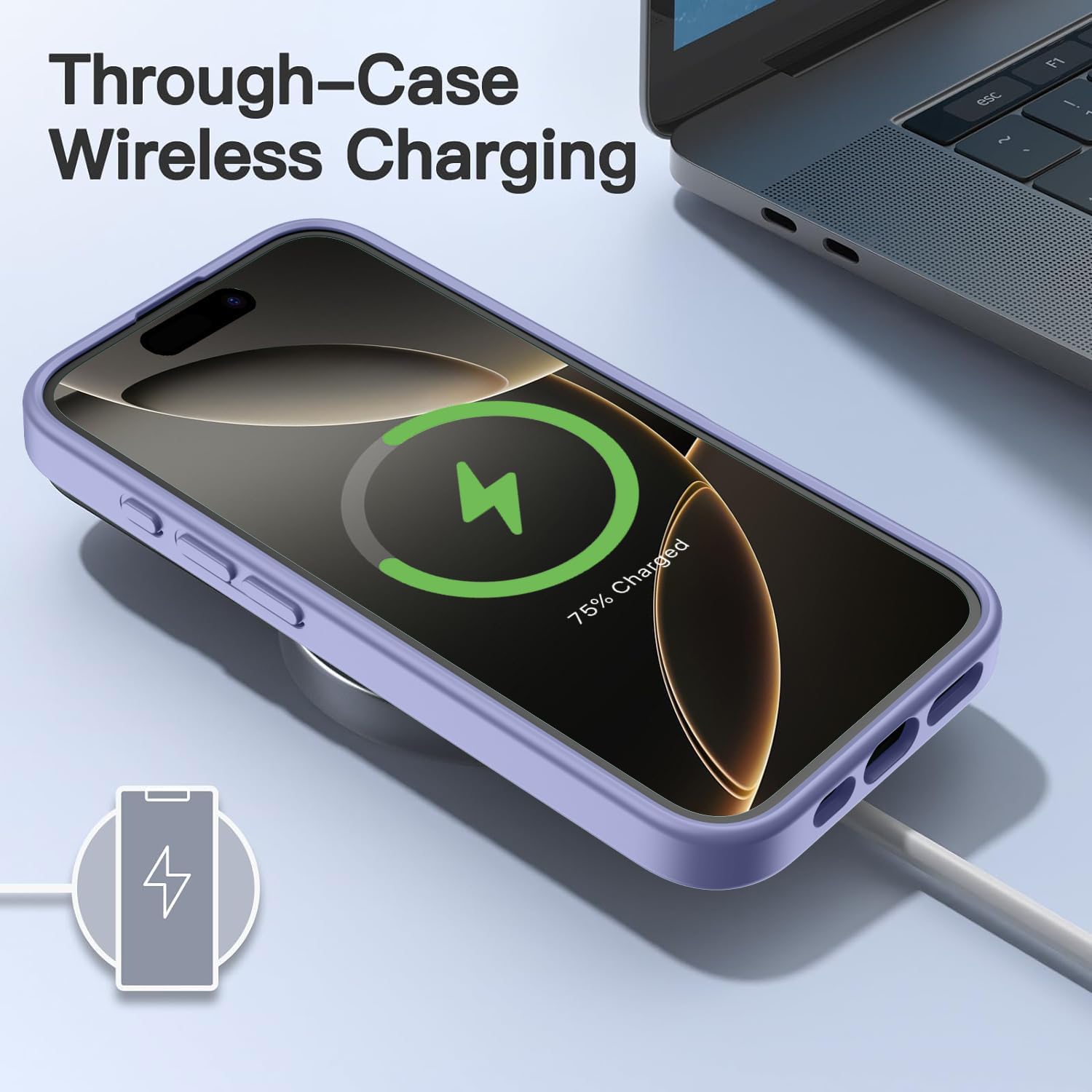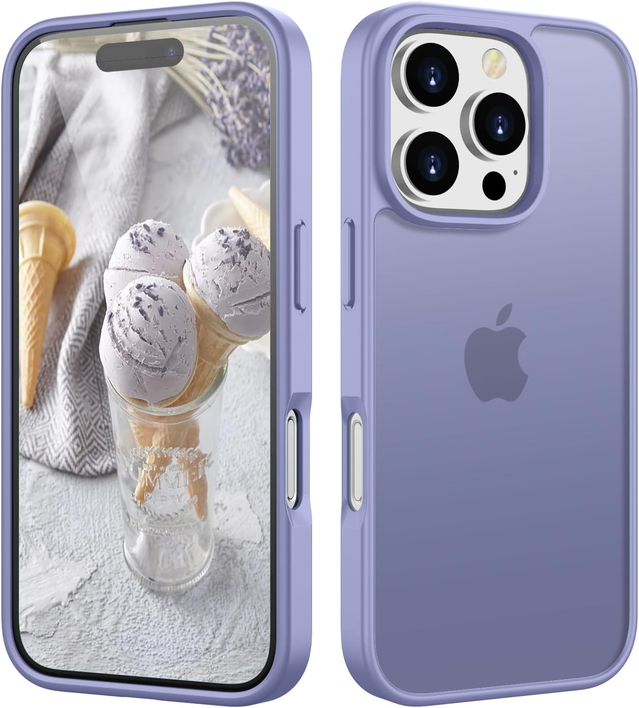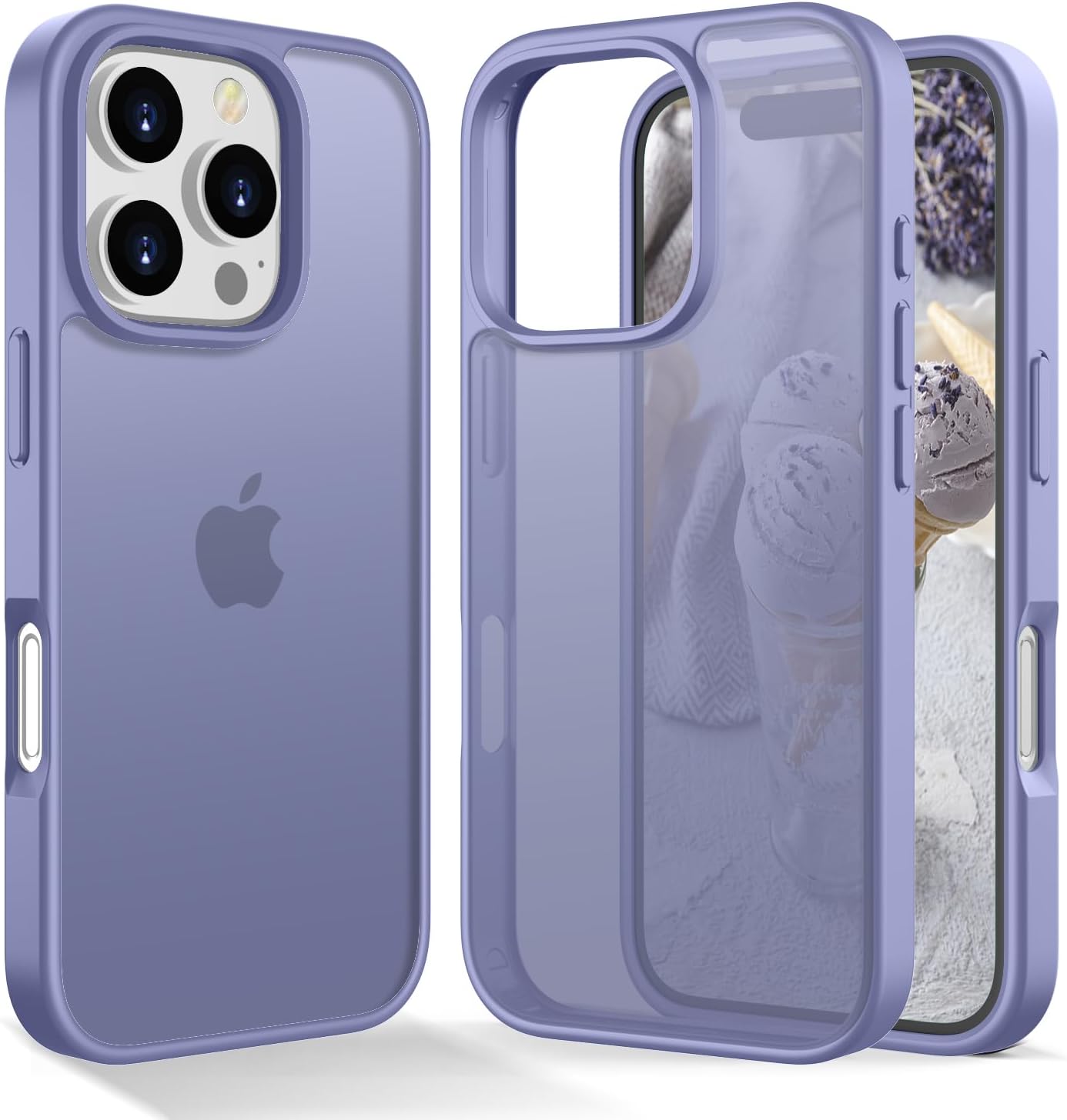 Матов калъф HGH за iPhone 16 Pro Max 6.9 инча, [Военна защита] Защитен калъф Velvet Touch Matt против надраскване, Прозрачен защитен калъф за гръб, Против пръстови отпечатъци (Лилав)