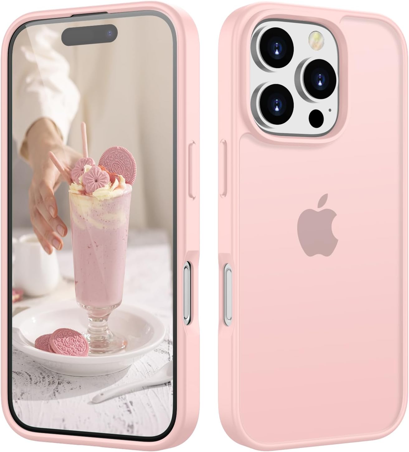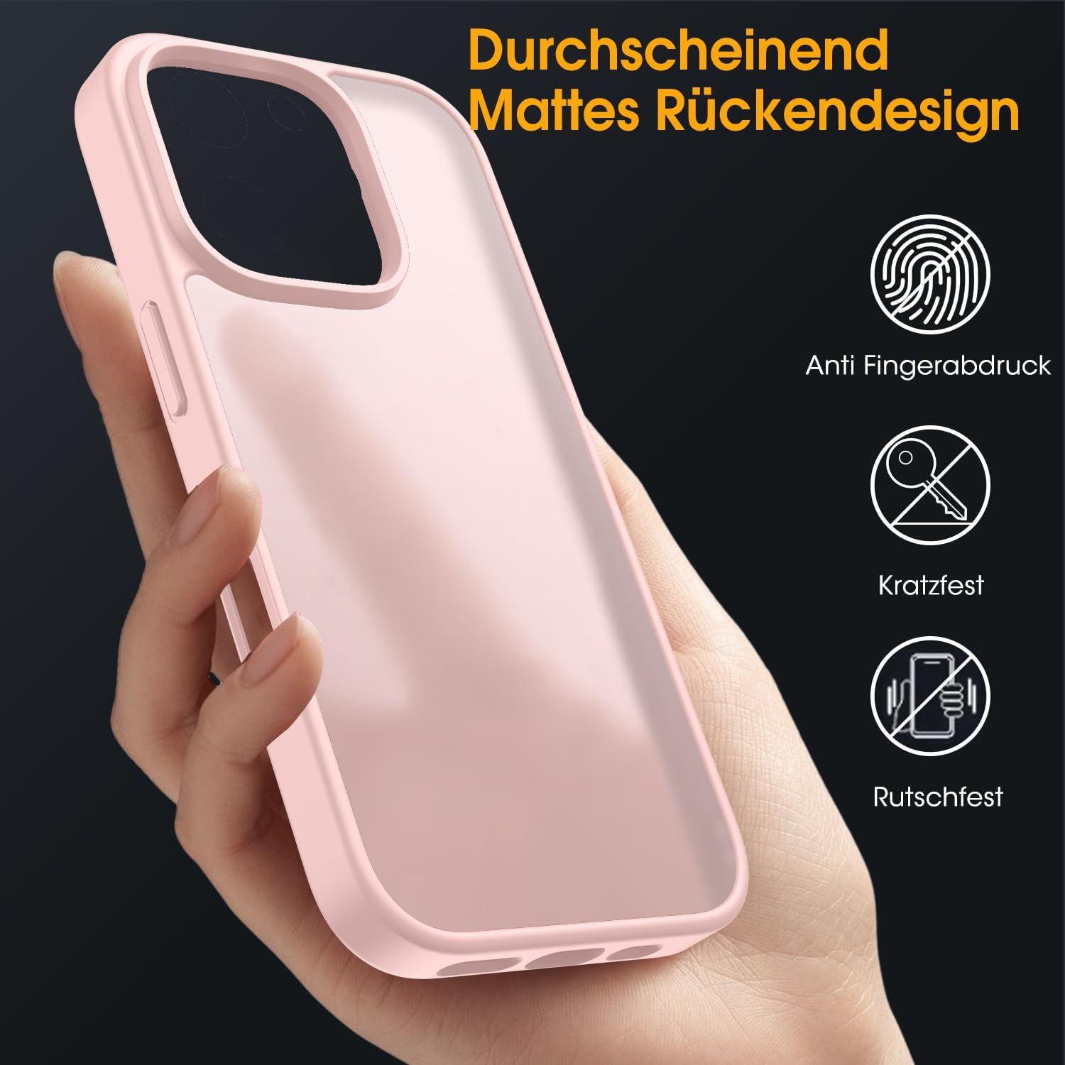 Матов калъф HGH за iPhone 16 Pro Max 6.9 инча, [Военна защита] Защитен калъф Velvet Touch Matt против надраскване, Прозрачен защитен калъф за гръб, Против пръстови отпечатъци (Розов)