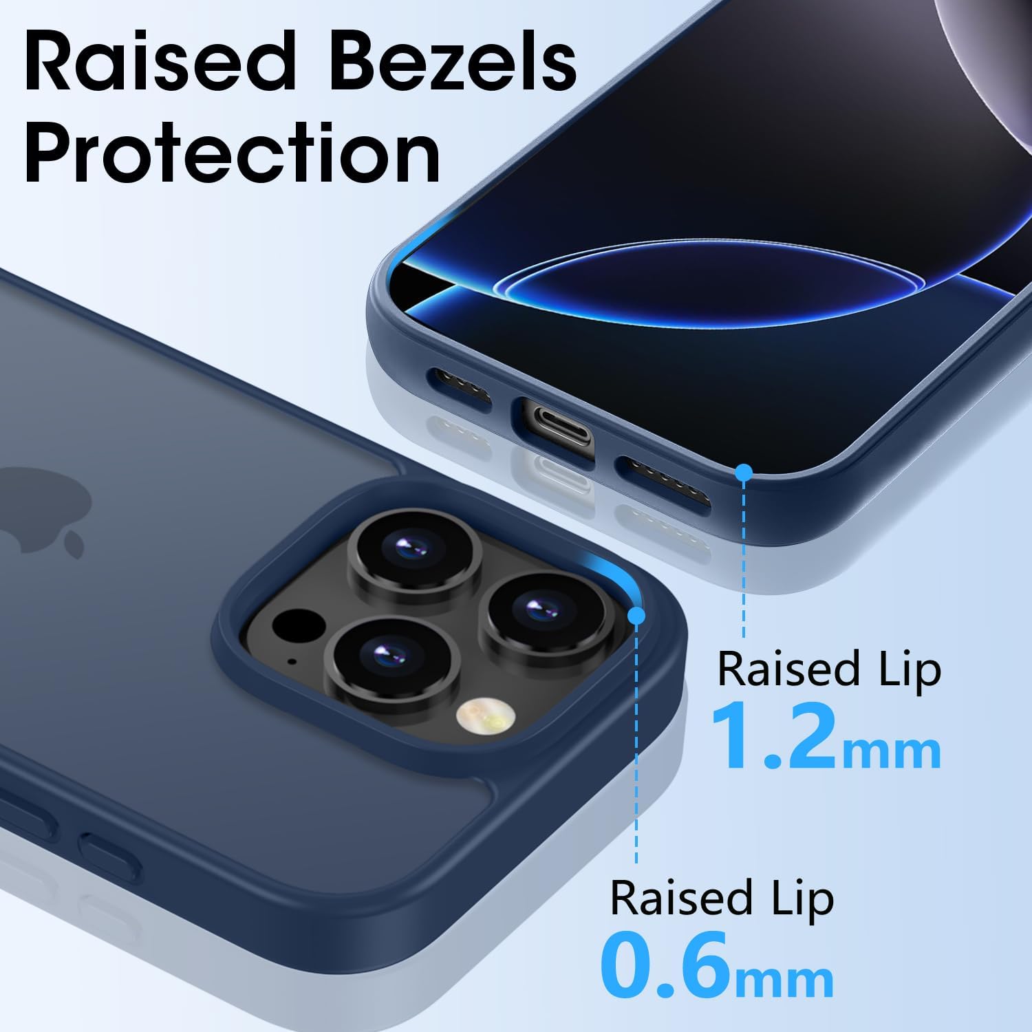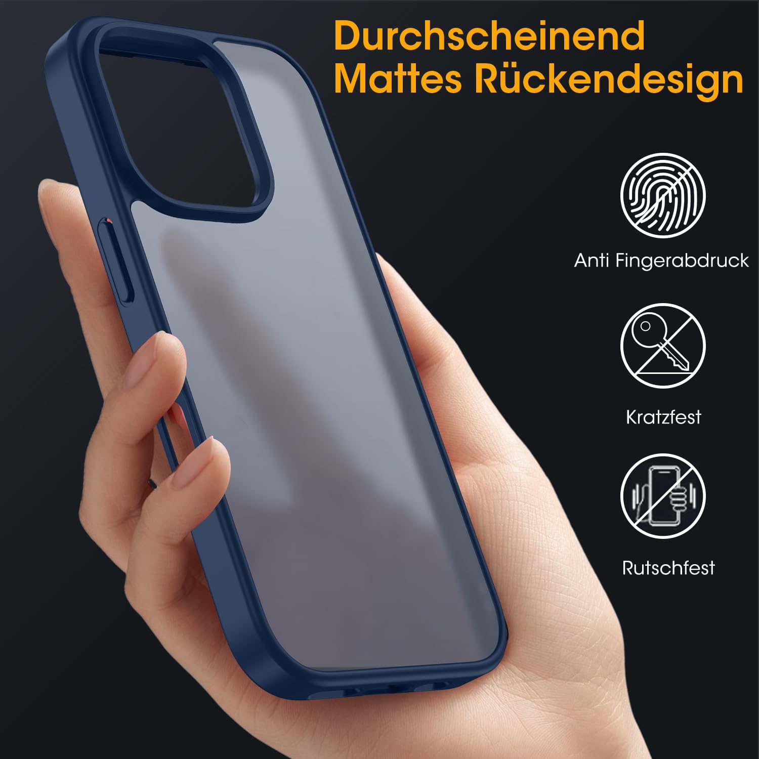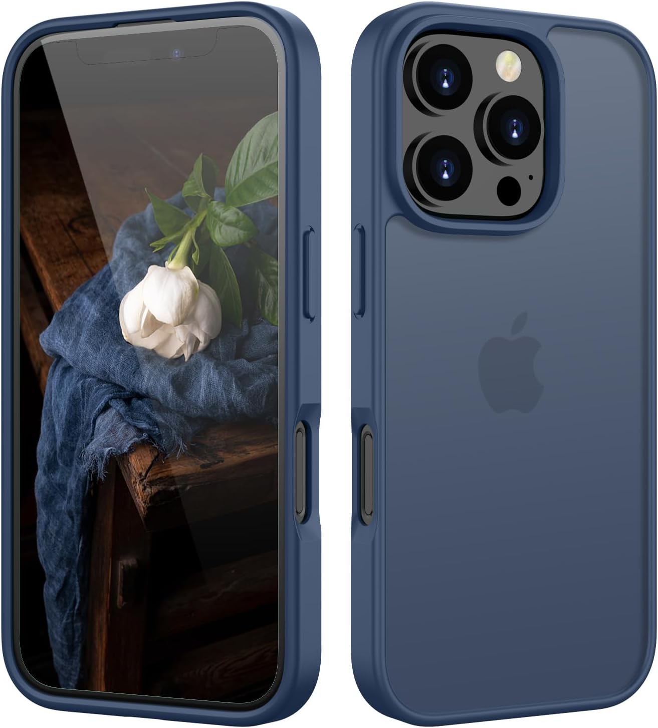 Матов калъф HGH за iPhone 16 Pro Max 6.9 инча [Военна защита] Защитен калъф Velvet Touch Matt против надраскване, прозрачен защитен калъф за гръб, против пръстови отпечатъци (тъмносин)