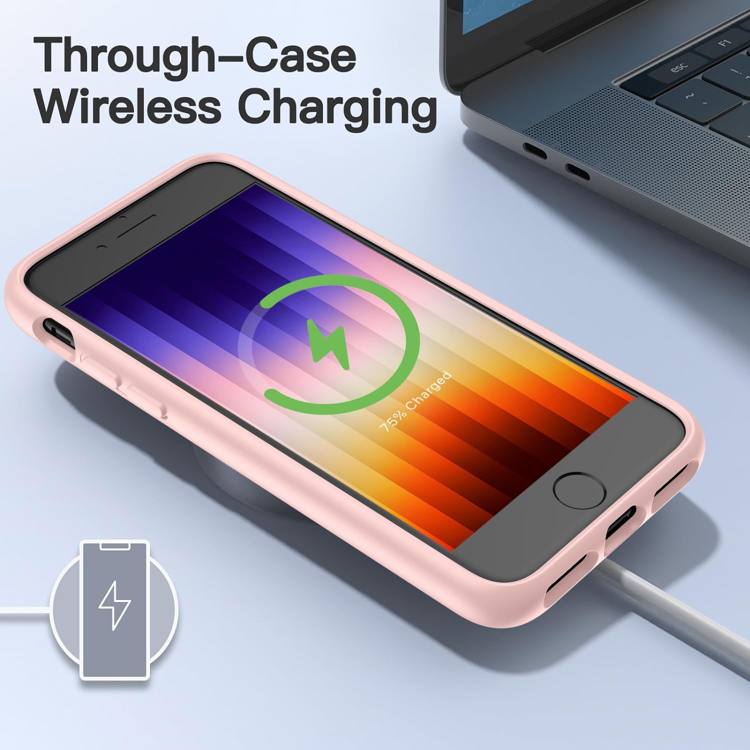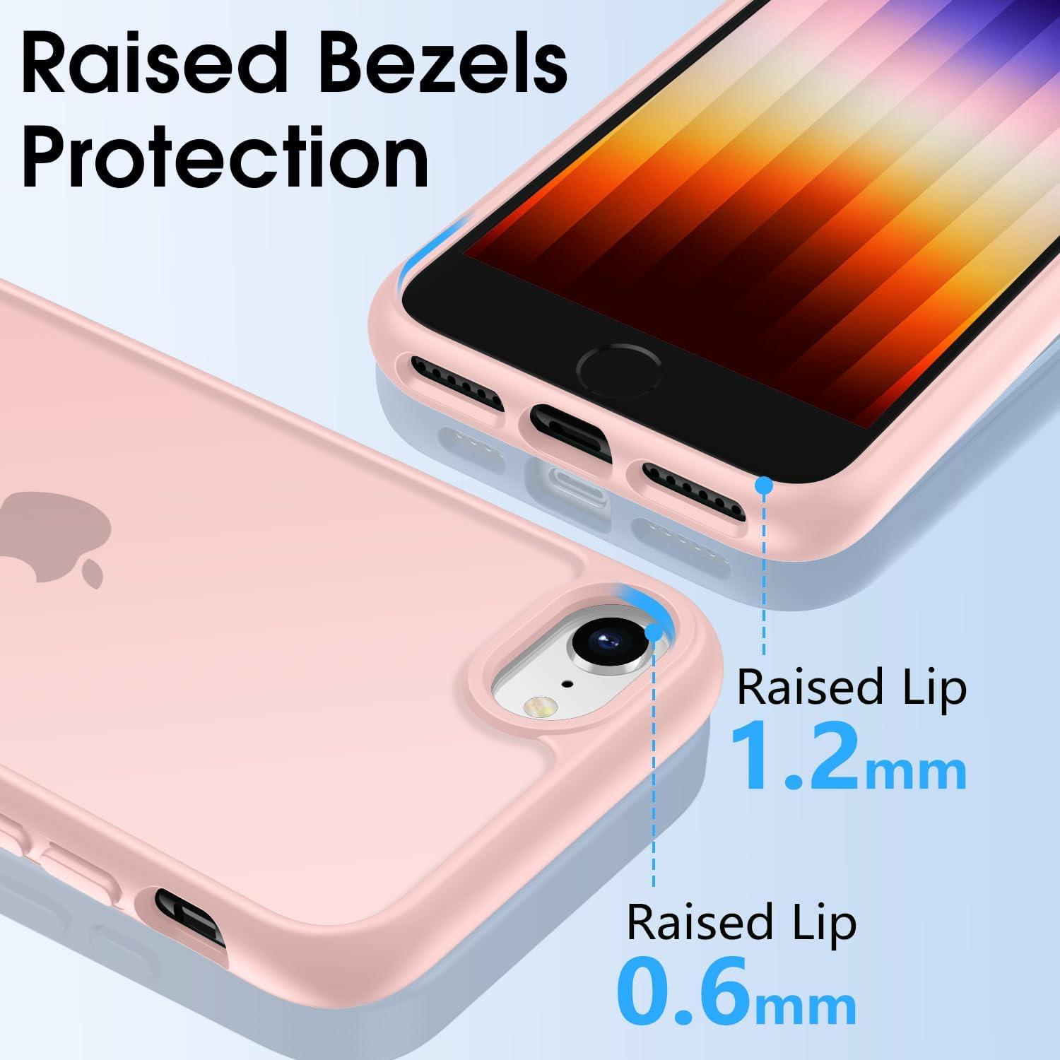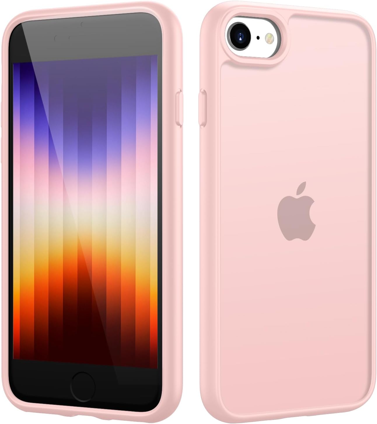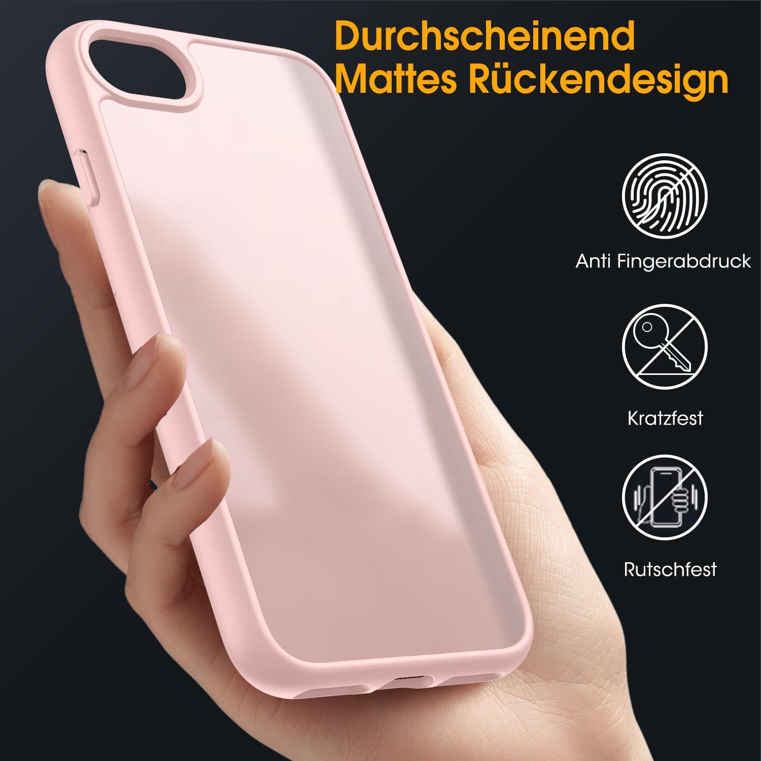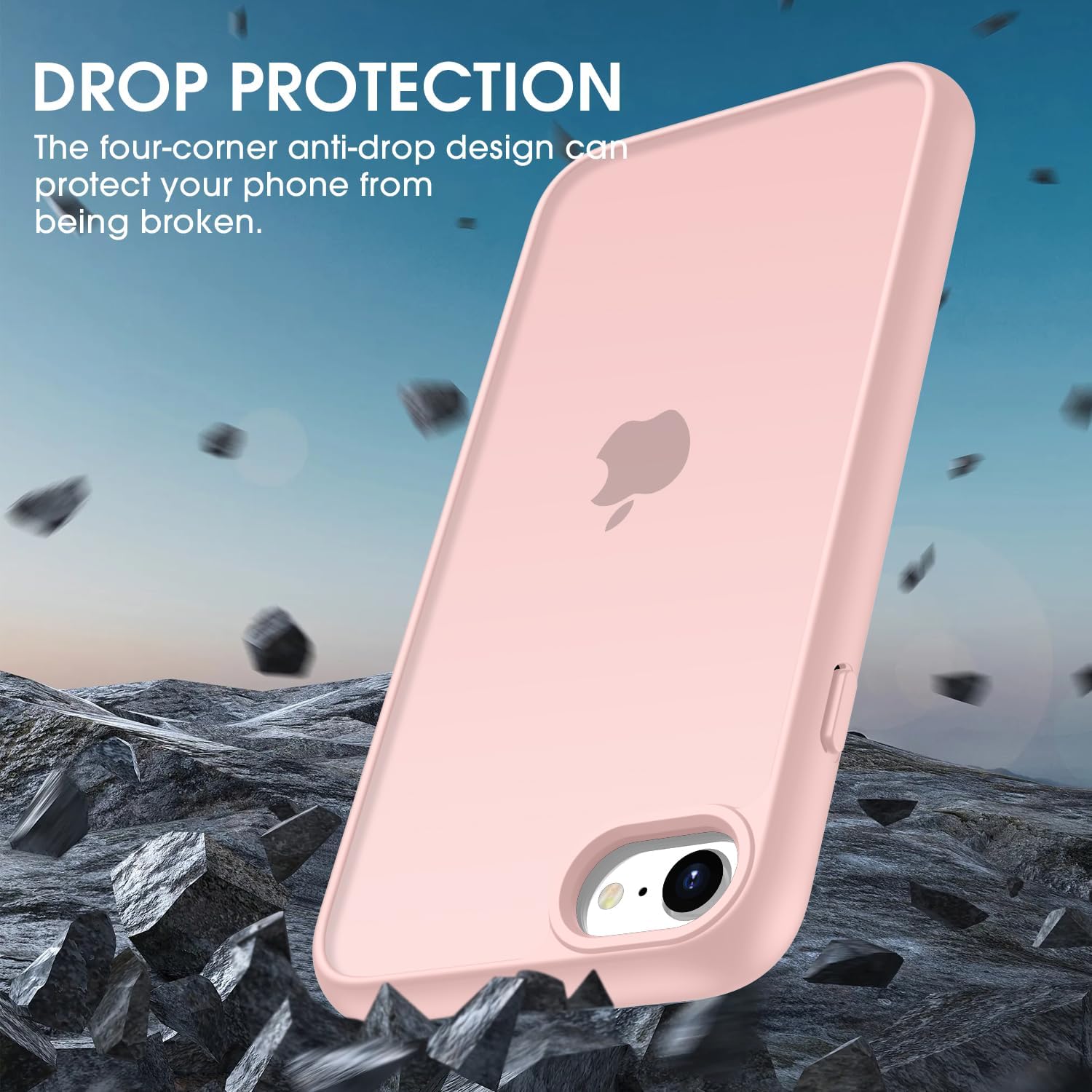 Матов калъф HGH за iPhone SE 3/2 (2022/2020), за iPhone 8/7, [Военна защита] Защитен калъф Velvet Touch Matt Anti-Scratch, Прозрачен защитен калъф за гръб, Anti-Fingerprint (Розов)