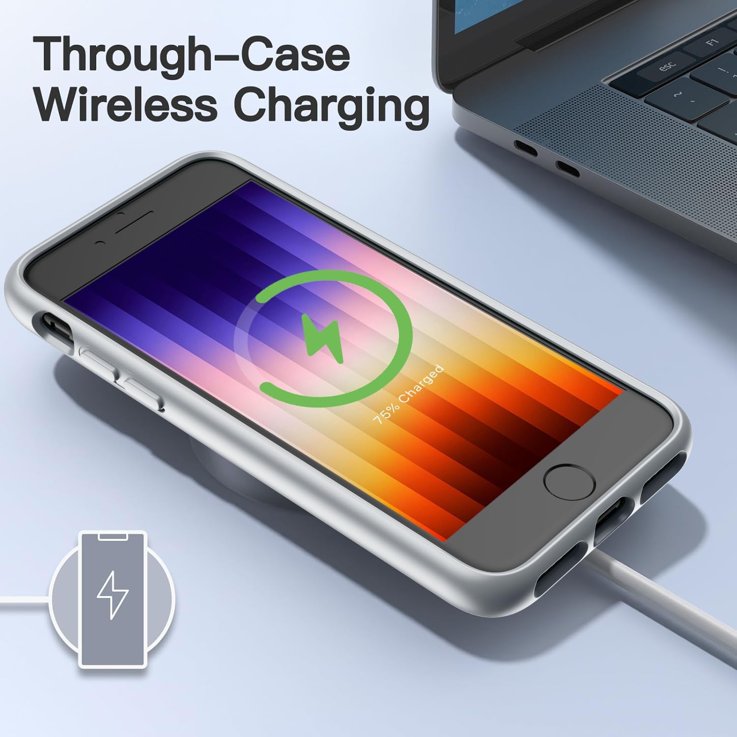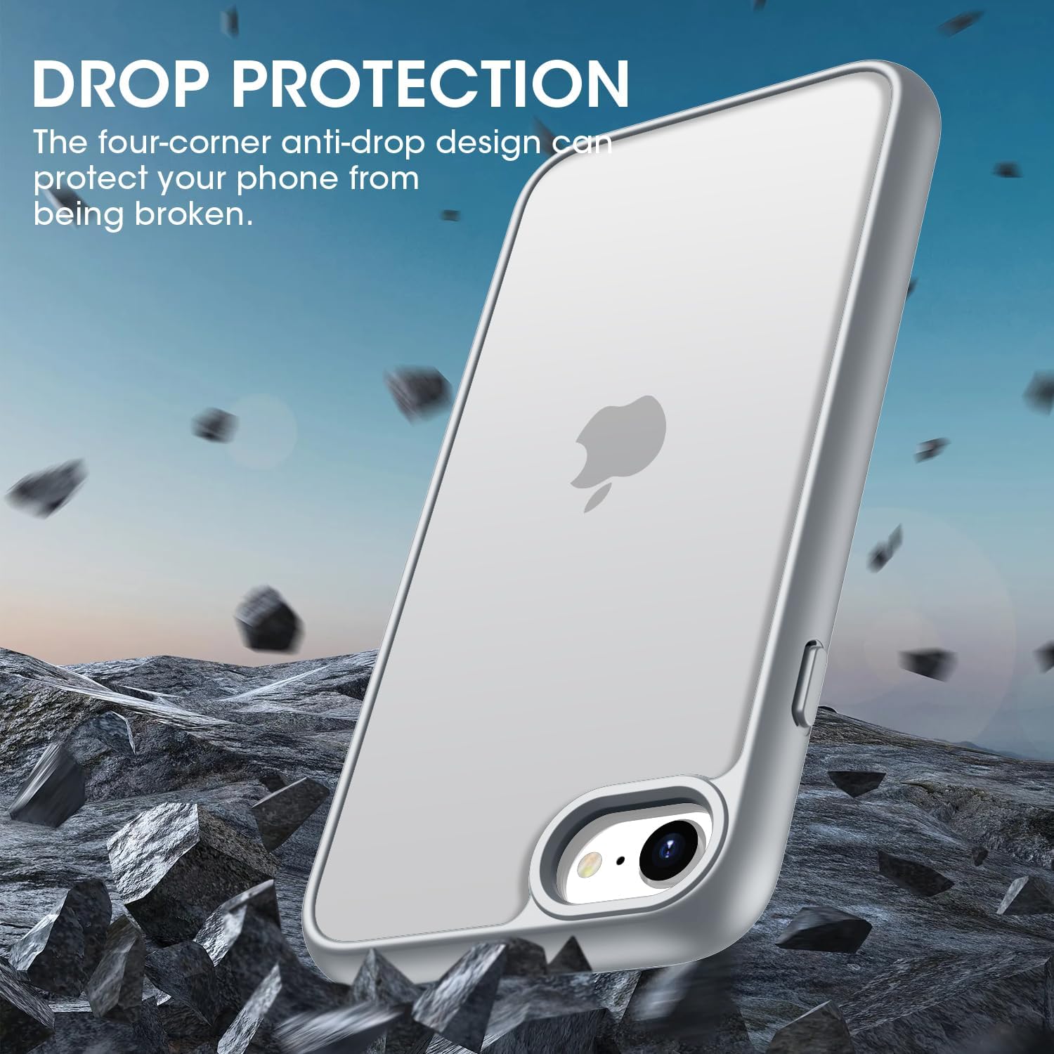 Матов калъф HGH за iPhone SE 3/2 (2022/2020), за iPhone 8/7, [Военна защита] Защитен калъф Velvet Touch Matt против надраскване, Прозрачен защитен калъф за гръб, Против пръстови отпечатъци (Бял)