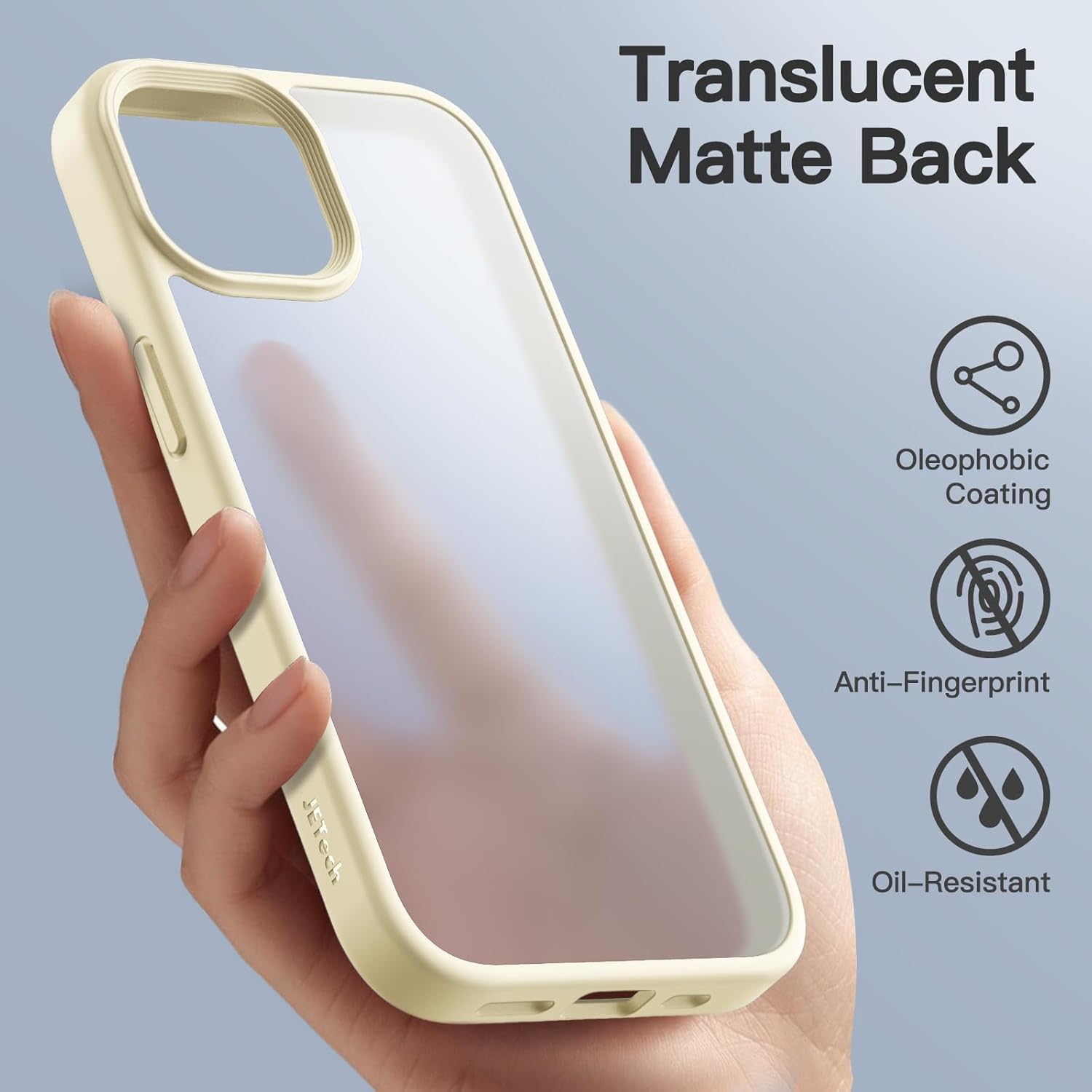 Матов калъф JETech за iPhone 15 6.1 инча, удароустойчив калъф за мобилен телефон със военен стандарт за защита от падане, матов прозрачен защитен калъф за гръб, защита от пръстови отпечатъци