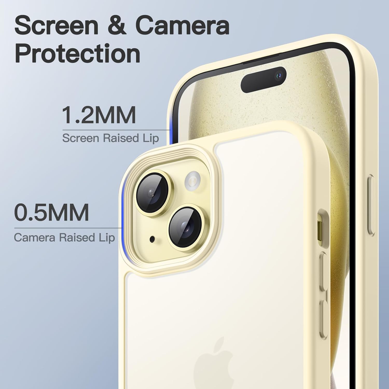 Матов калъф JETech за iPhone 15 6.1 инча, удароустойчив калъф за мобилен телефон с военен стандарт за защита от падане, матов прозрачен защитен калъф за гръб, против пръстови отпечатъци (жълт)