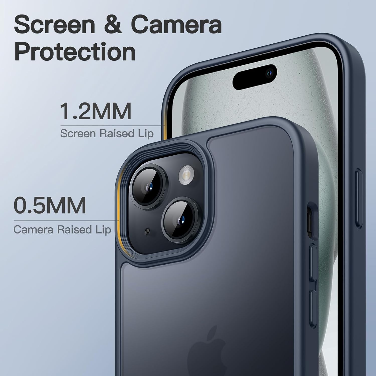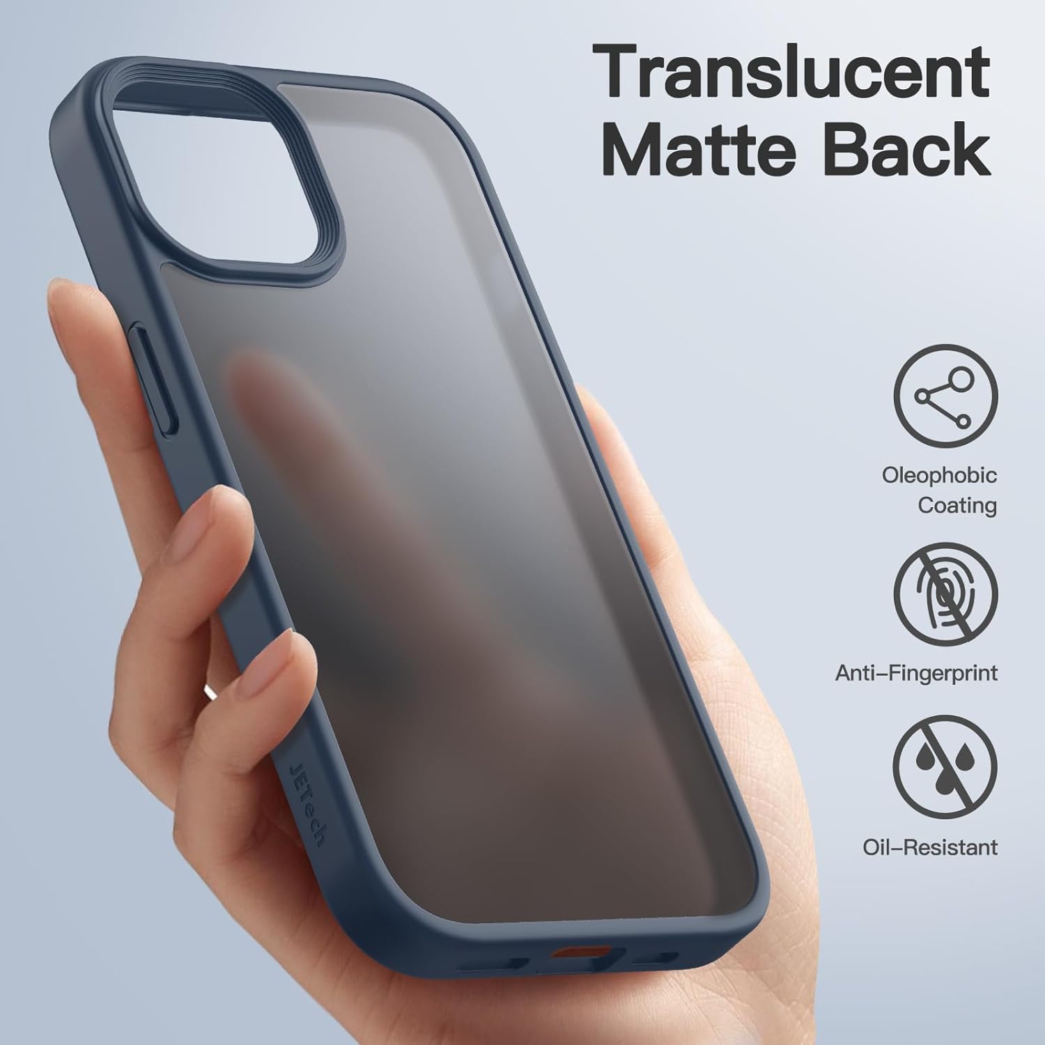 Матов калъф JETech за iPhone 15 6.1 инча, удароустойчив калъф за мобилен телефон със военен стандарт за защита от падане, матов прозрачен защитен калъф за гръб, против пръстови отпечатъци (син)