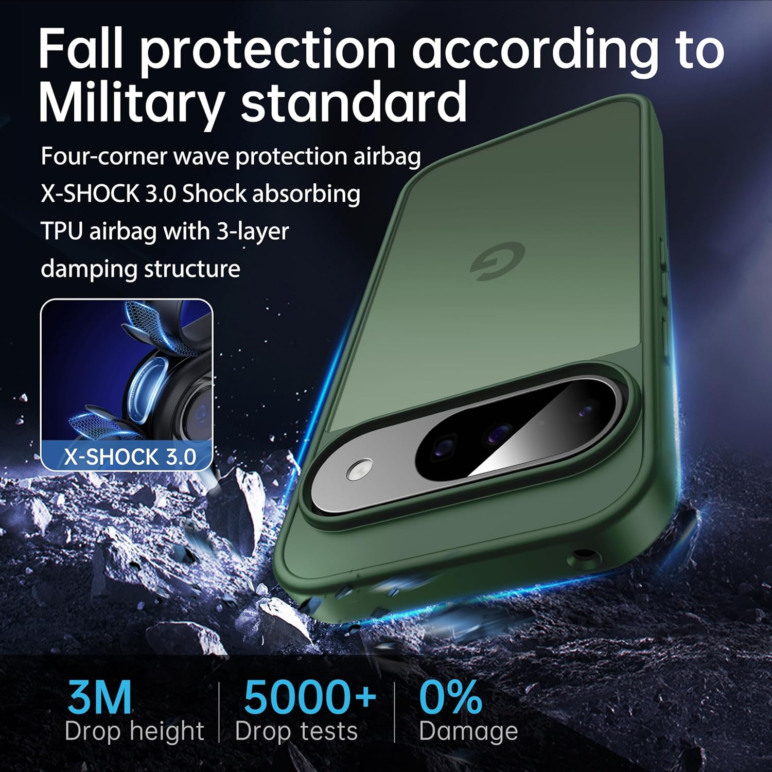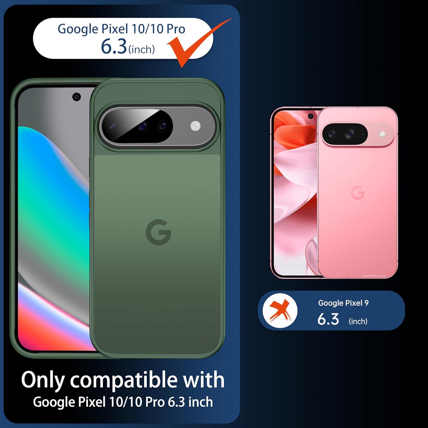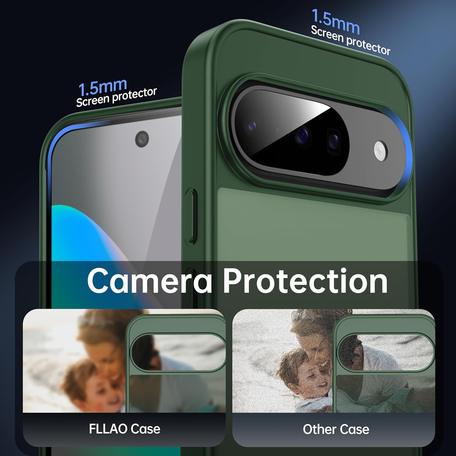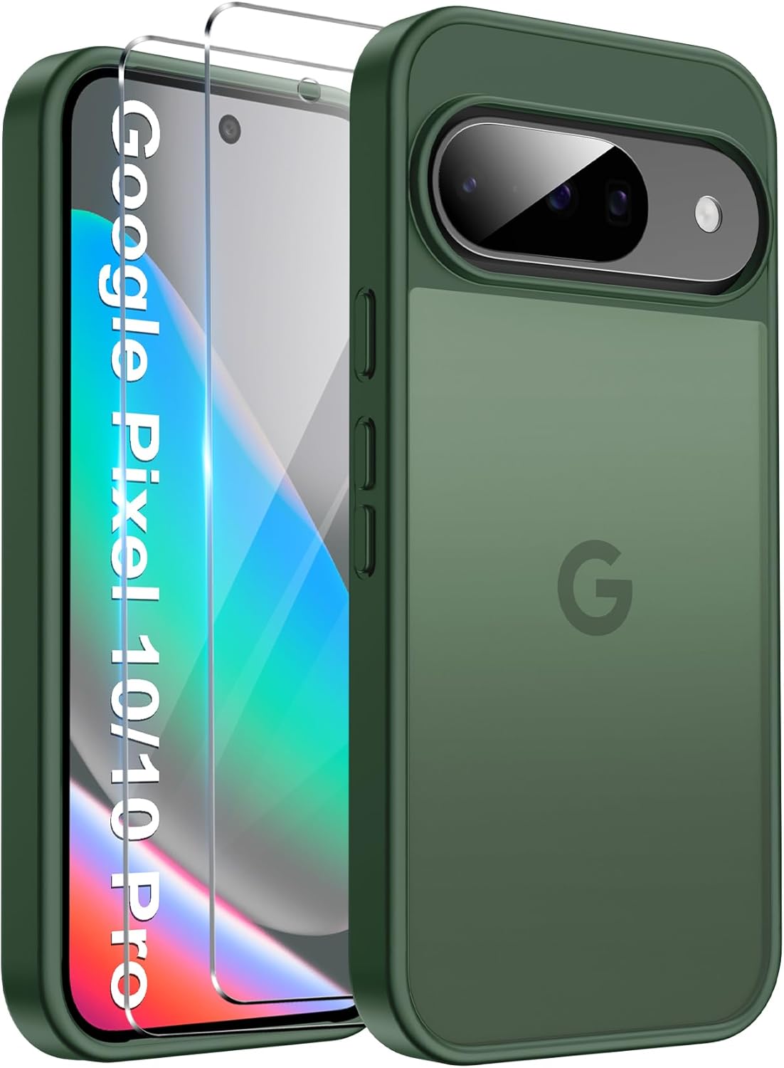 Матов калъф за мобилен телефон FLLAO за Google Pixel 10/10 Pro/9/9 Pro и 2 протектора за екран, със защита на камерата, военна стандартна защита, удароустойчив PC гръб TPU bumper калъф за Google Pixel