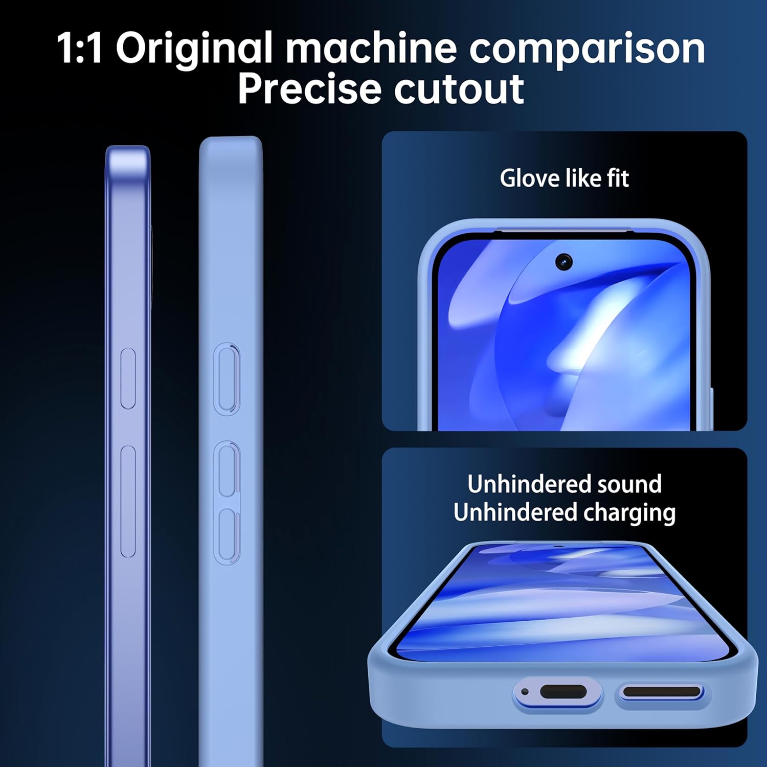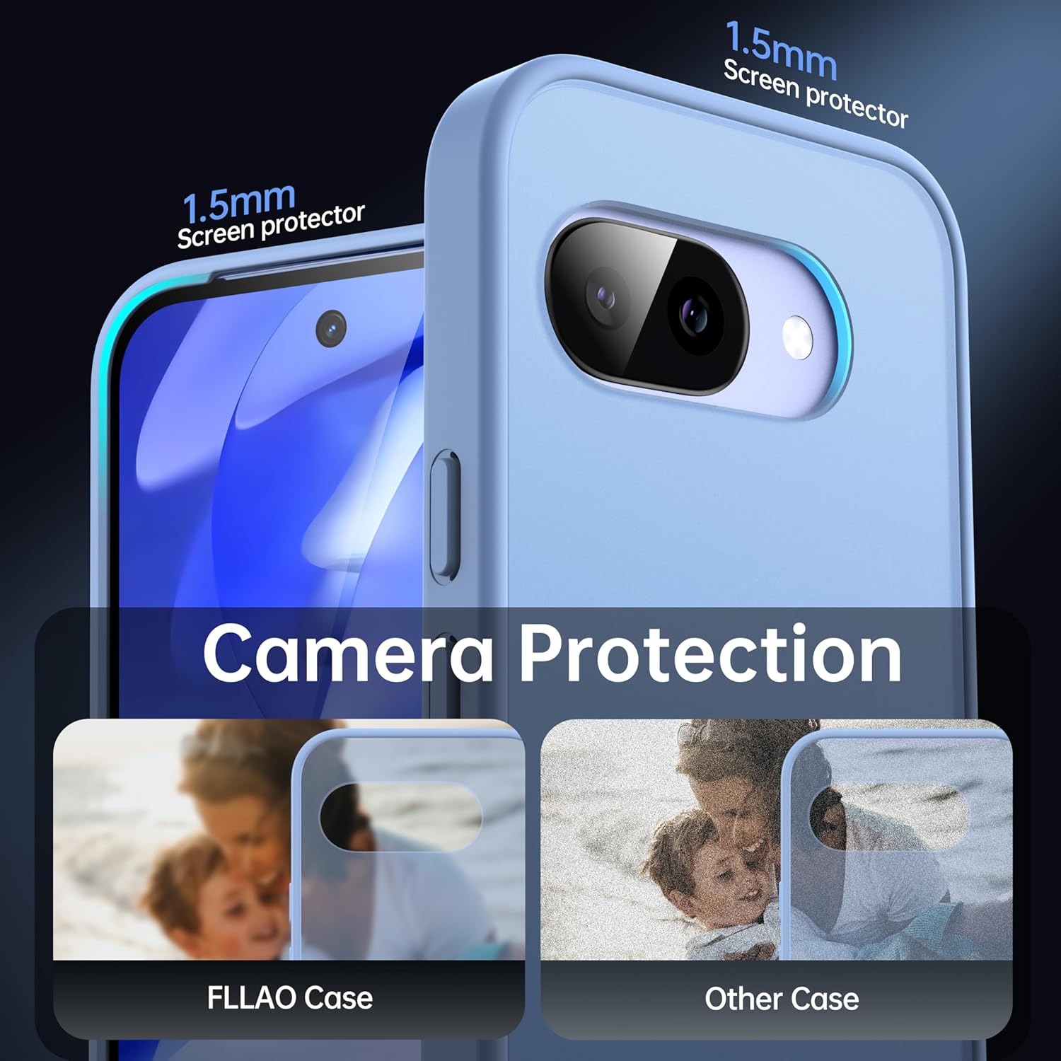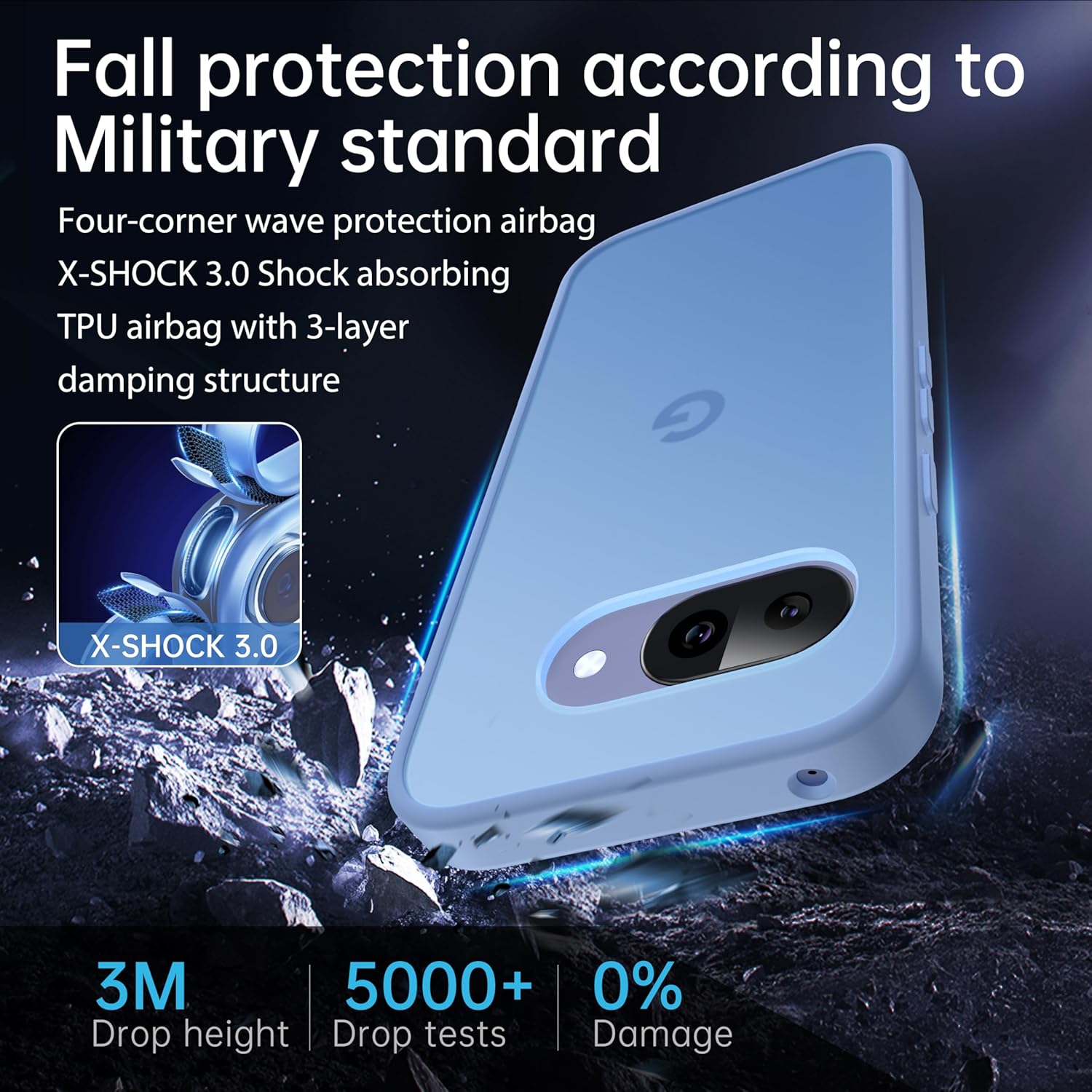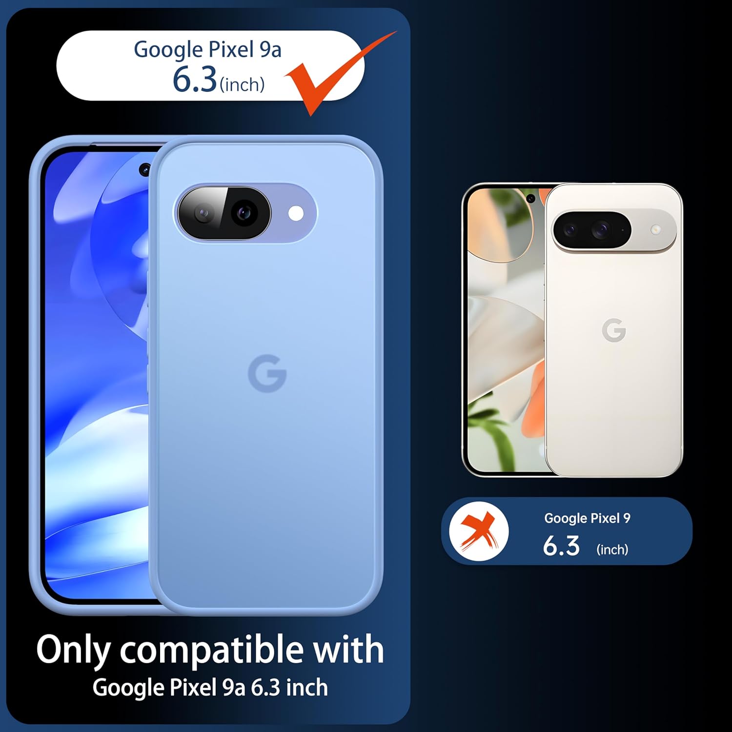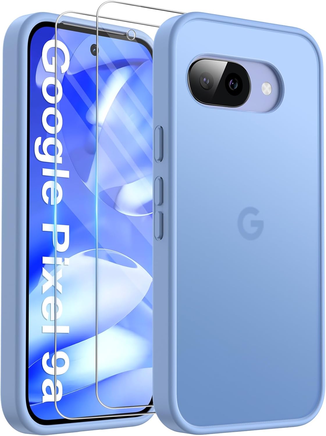 Матов калъф за мобилен телефон FLLAO за Google Pixel 9a и 2 протектора за екран, със защита на камерата [Военен стандарт за защита] Прозрачен PC гръб TPU bumper калъф за Pixel 9a - син