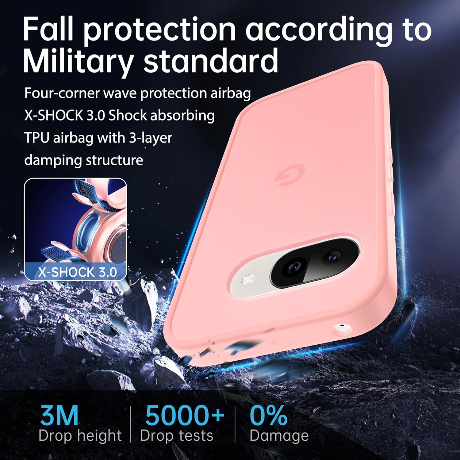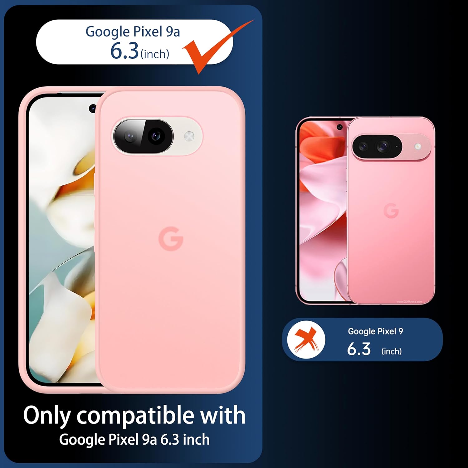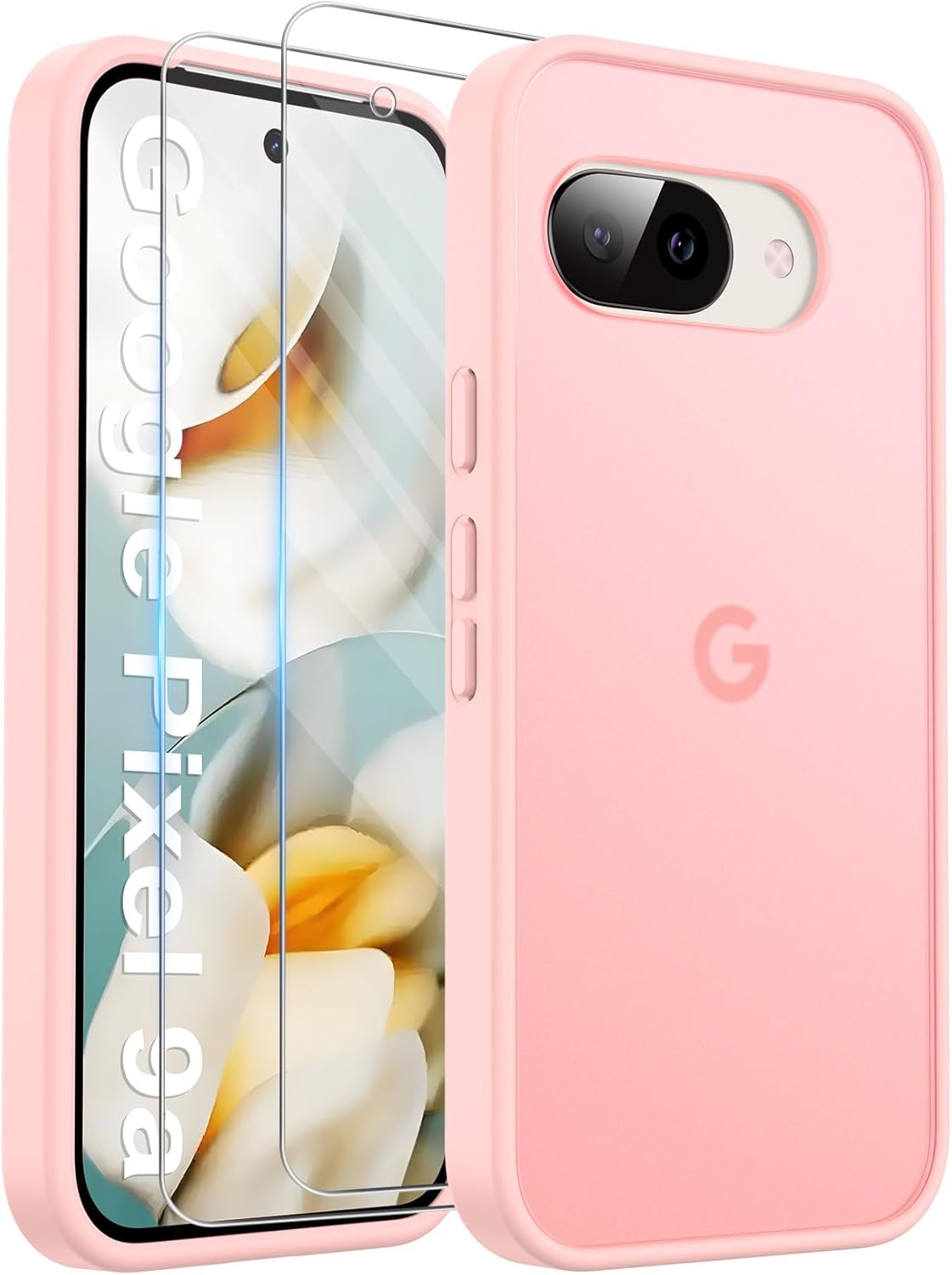 Матов калъф за мобилен телефон FLLAO за Google Pixel 9a и 2 протектора за екран, със защита на камерата [Военен стандарт за защита] Прозрачен PC гръб TPU калъф-бъмпер за Pixel 9a - розов