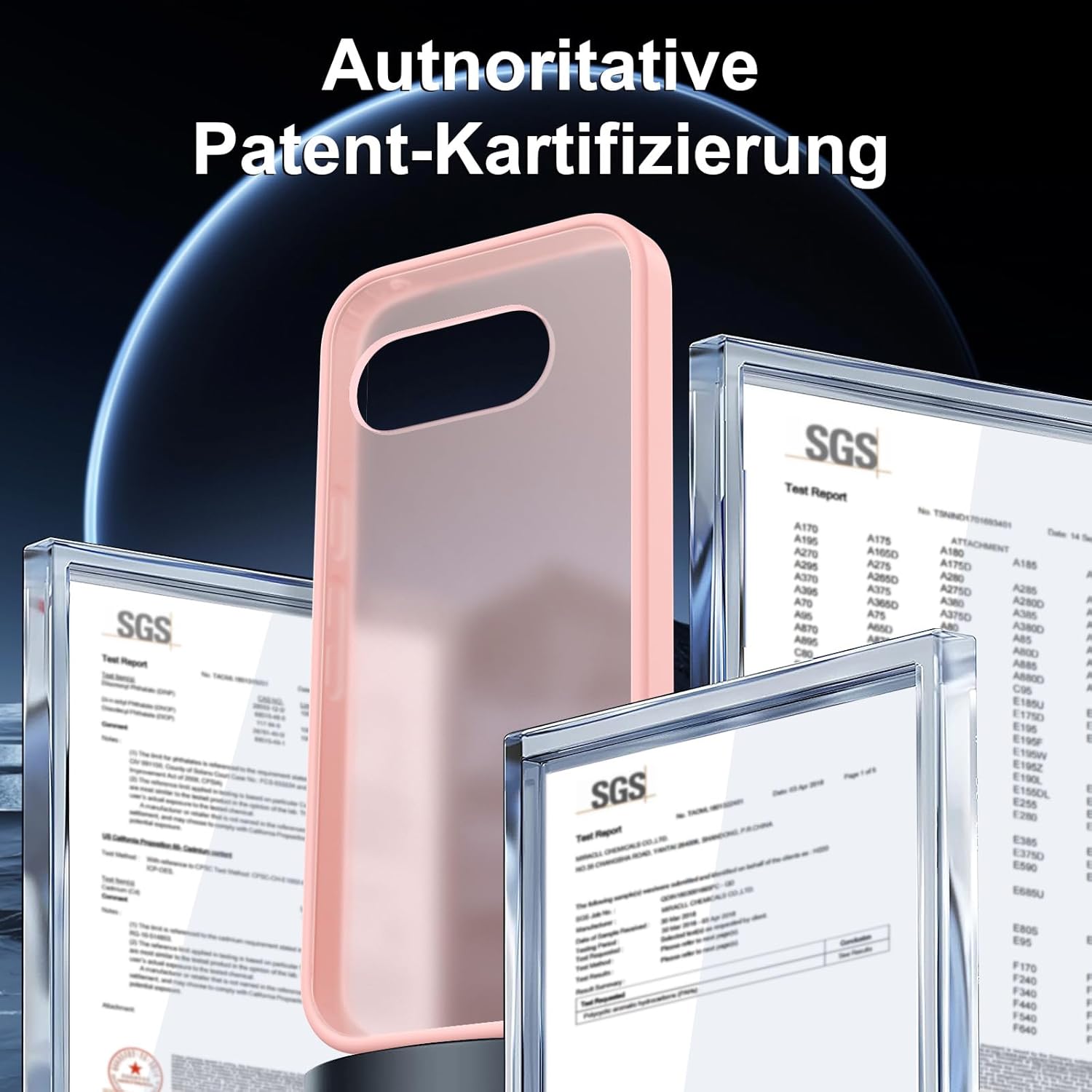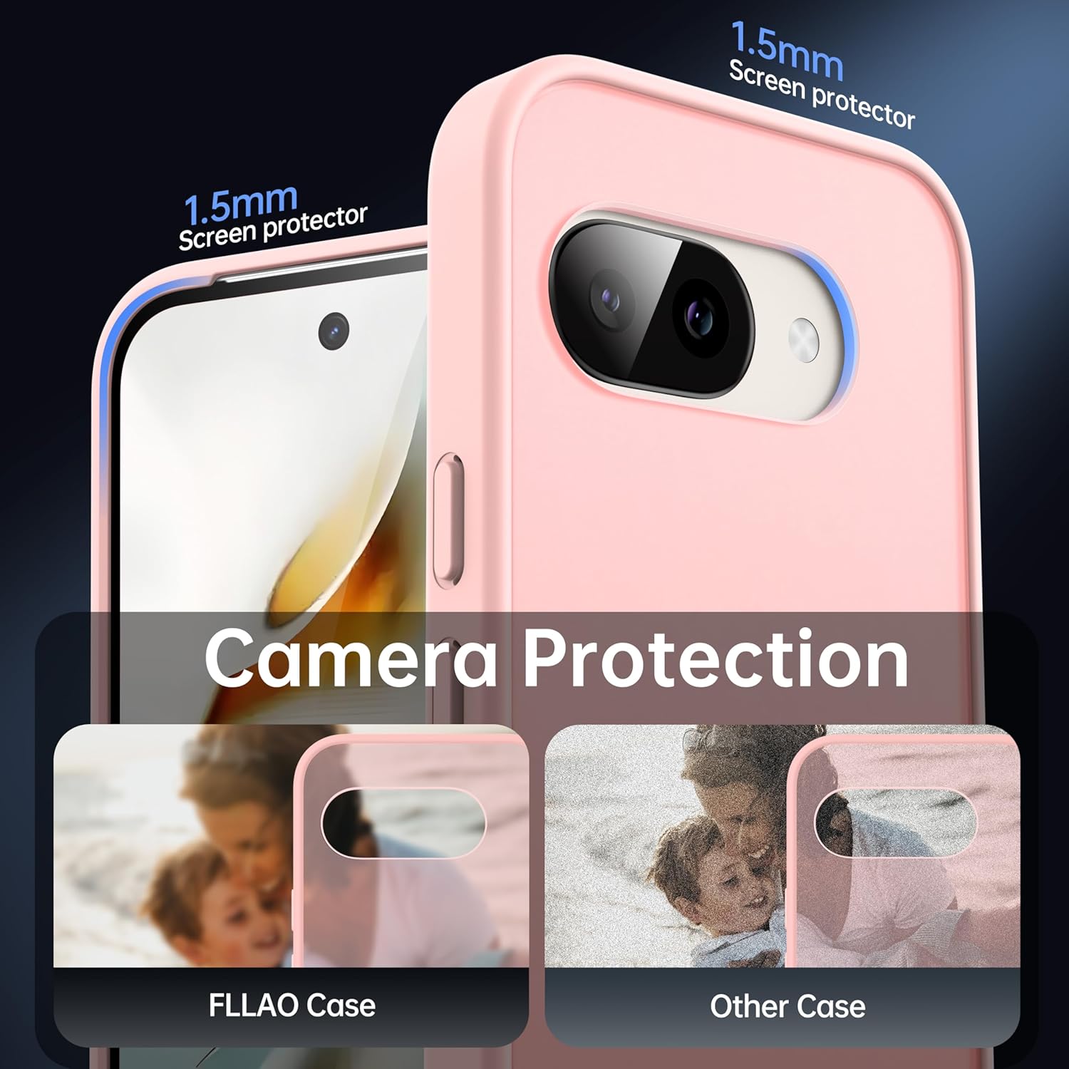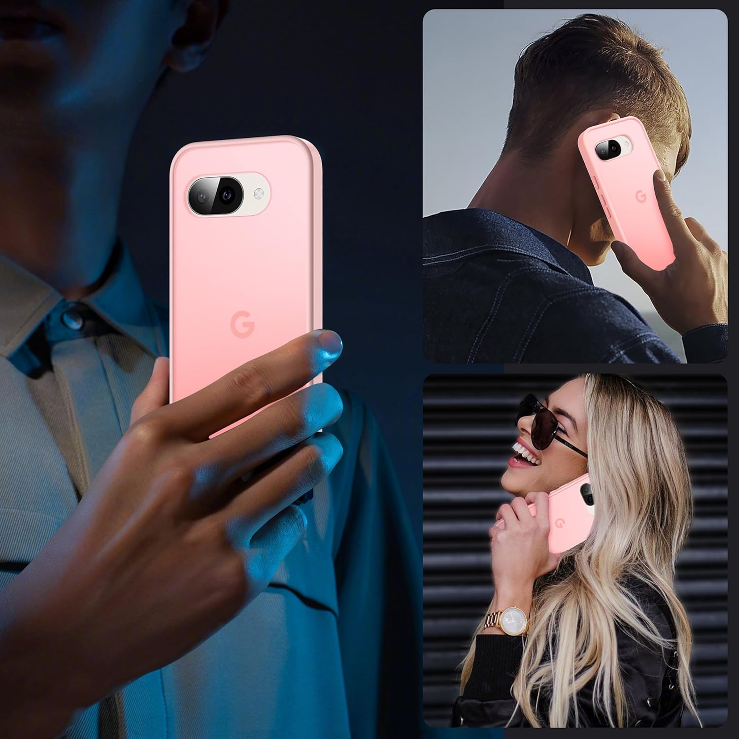 Матов калъф за мобилен телефон FLLAO за Google Pixel 9a и 2 протектора за екран, със защита на камерата [Военен стандарт за защита] Прозрачен PC гръб TPU калъф-бъмпер за Pixel 9a - розов