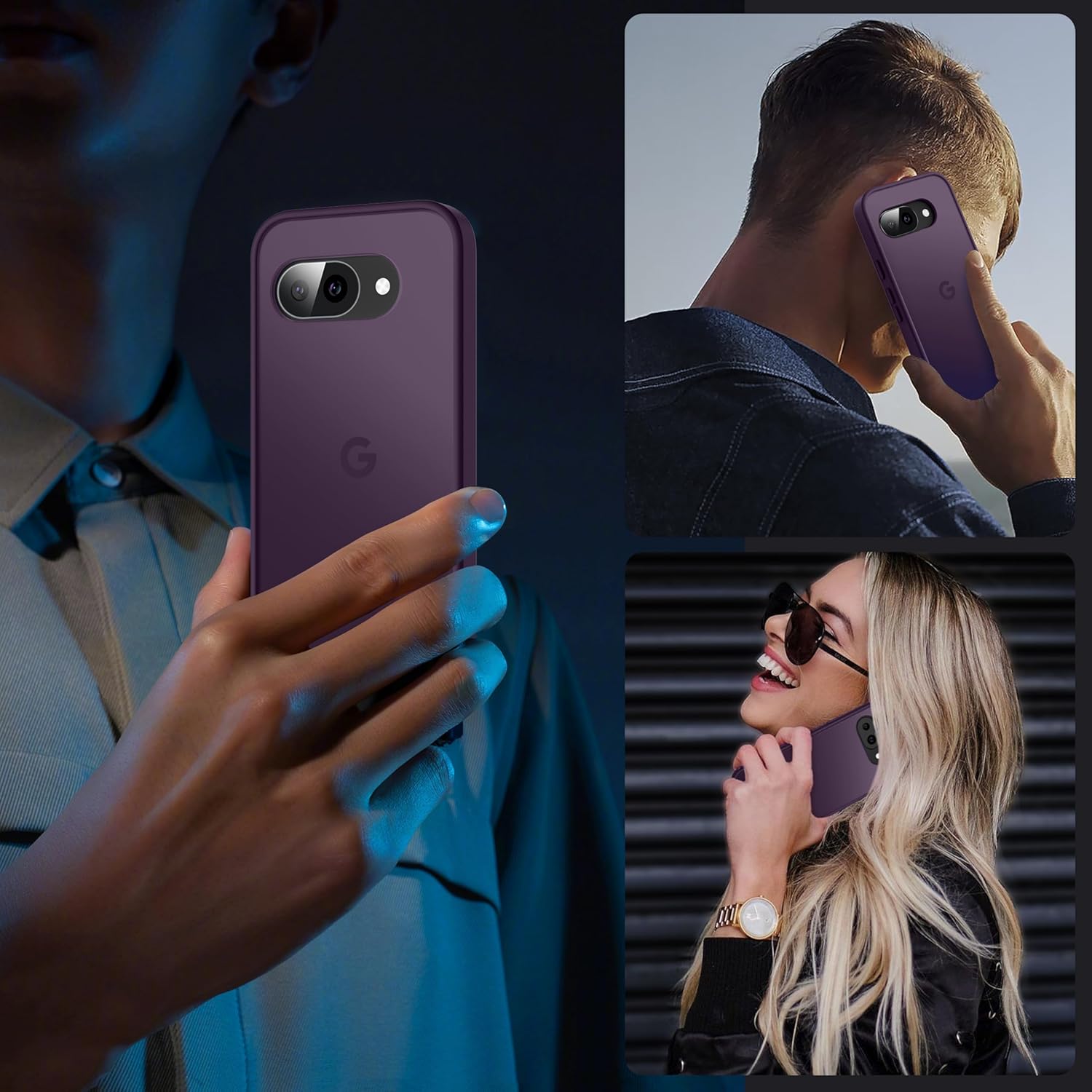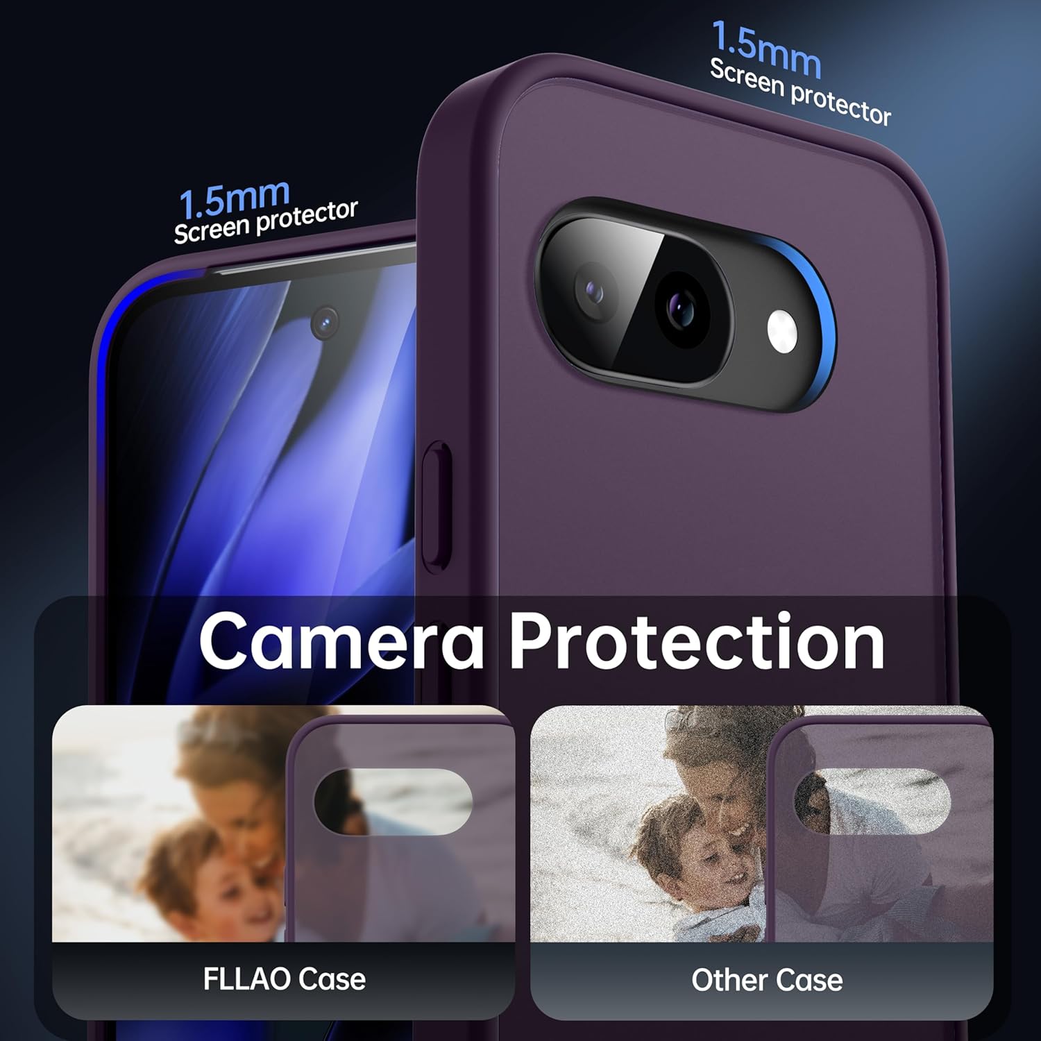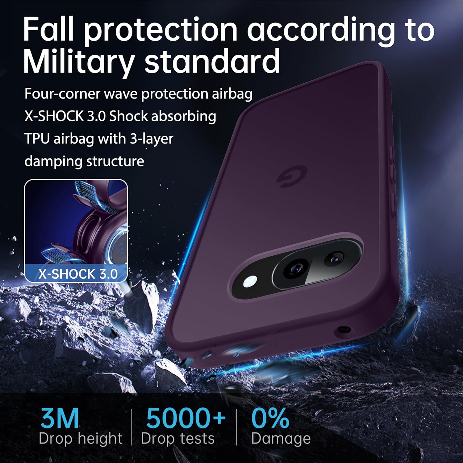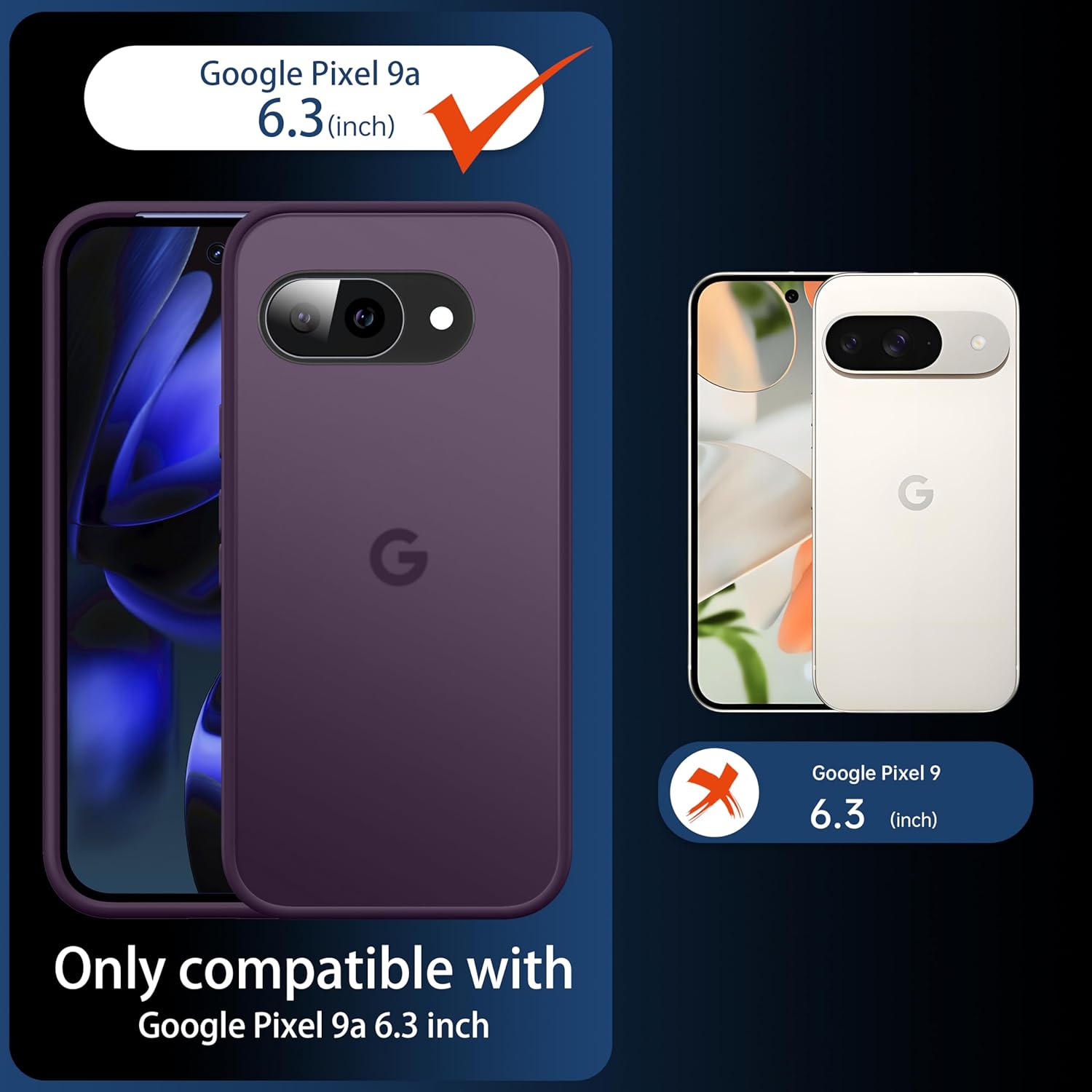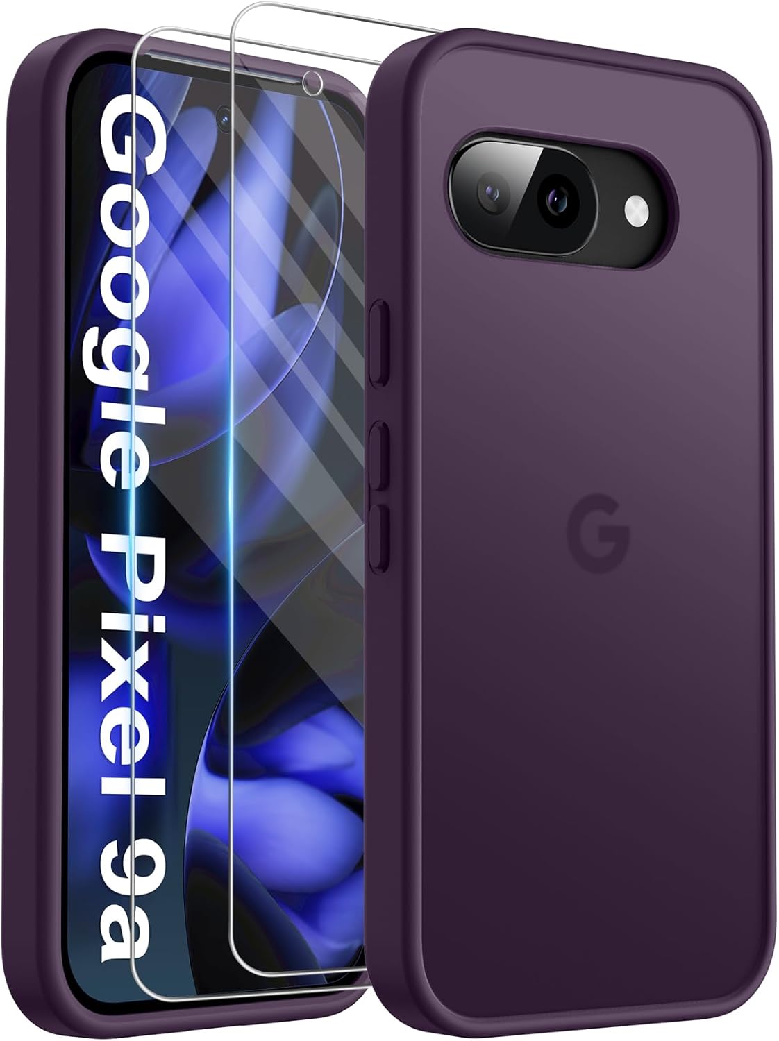Матов калъф за мобилен телефон FLLAO за Google Pixel 9a и 2 протектора за екран, със защита на камерата, военна стандартна защита, прозрачен PC гръб TPU bumper калъф за Google Pixel 9a - тъмен
