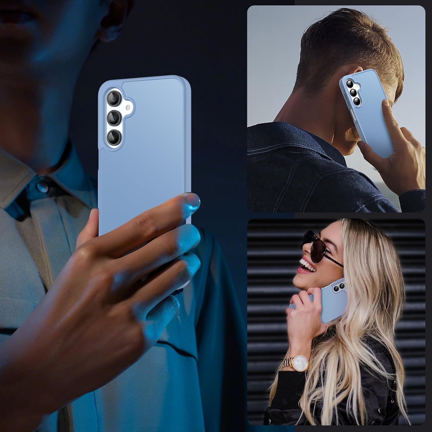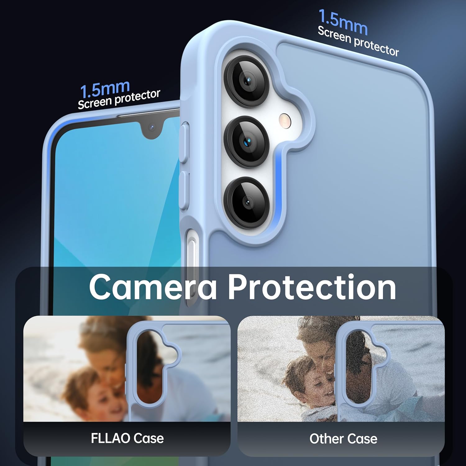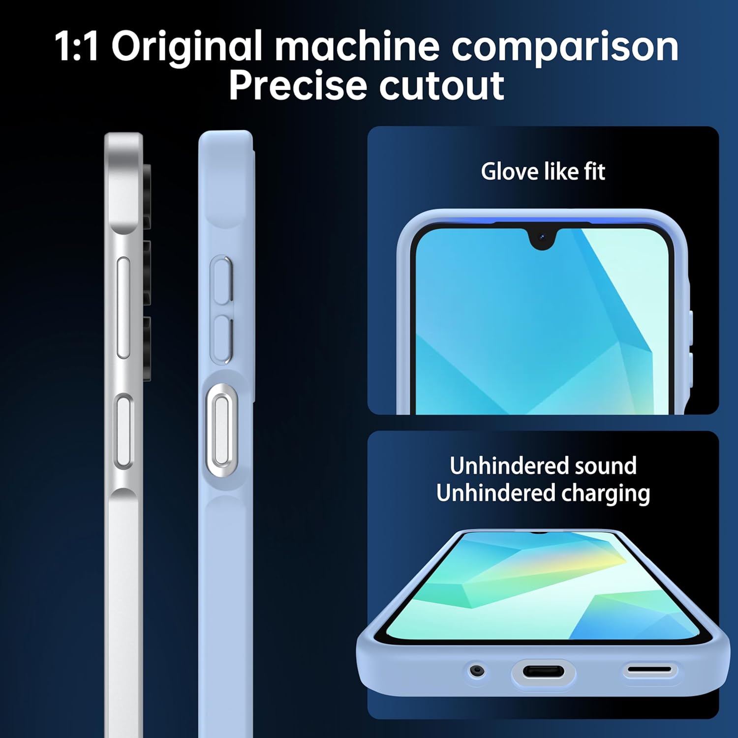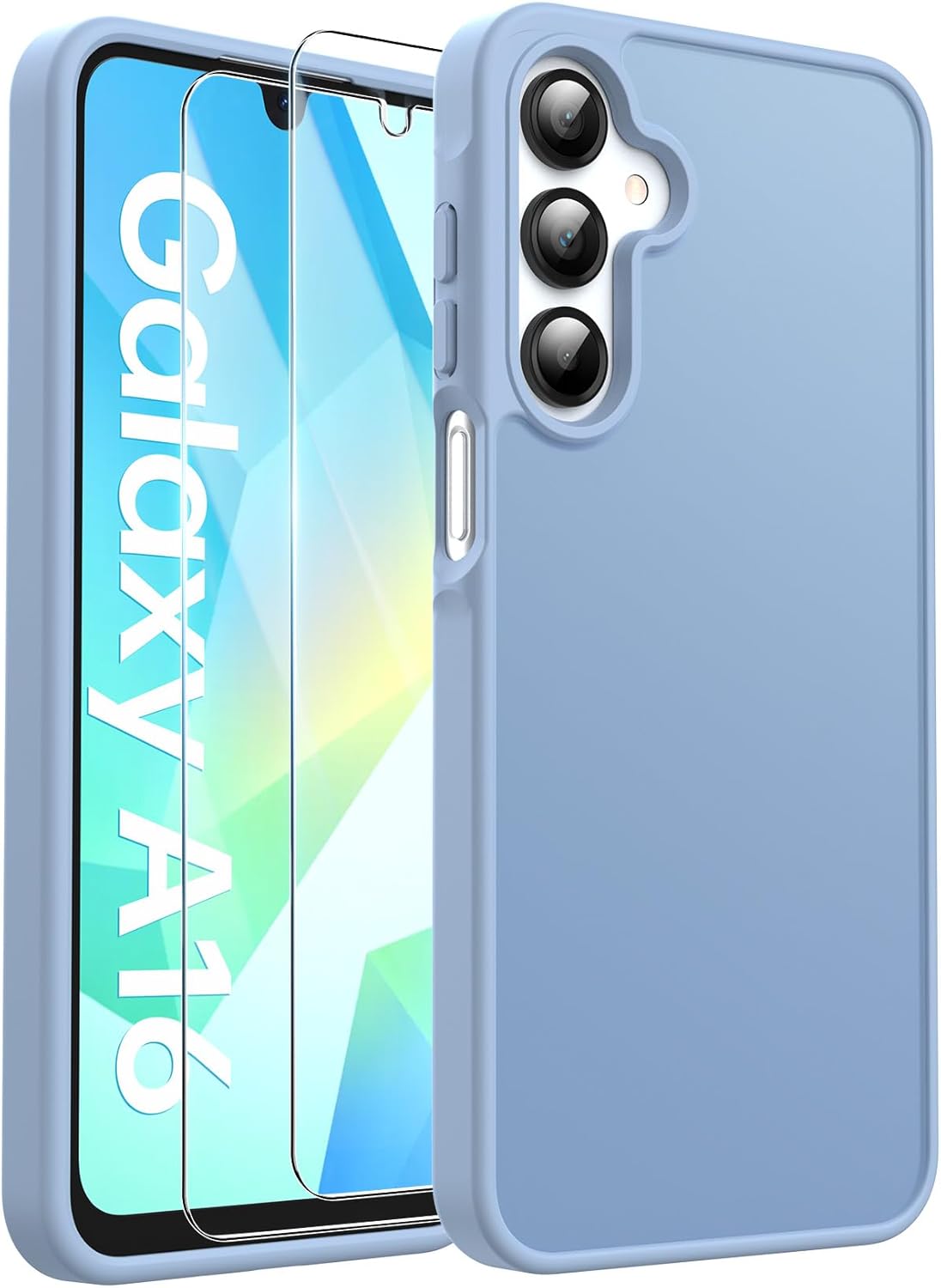 Матов калъф за мобилен телефон FLLAO за Samsung Galaxy A16 5G и 2 протектора за екран, със защита на камерата [Военен стандарт за защита] Прозрачен PC гръб TPU bumper калъф за Samsung A16 - син