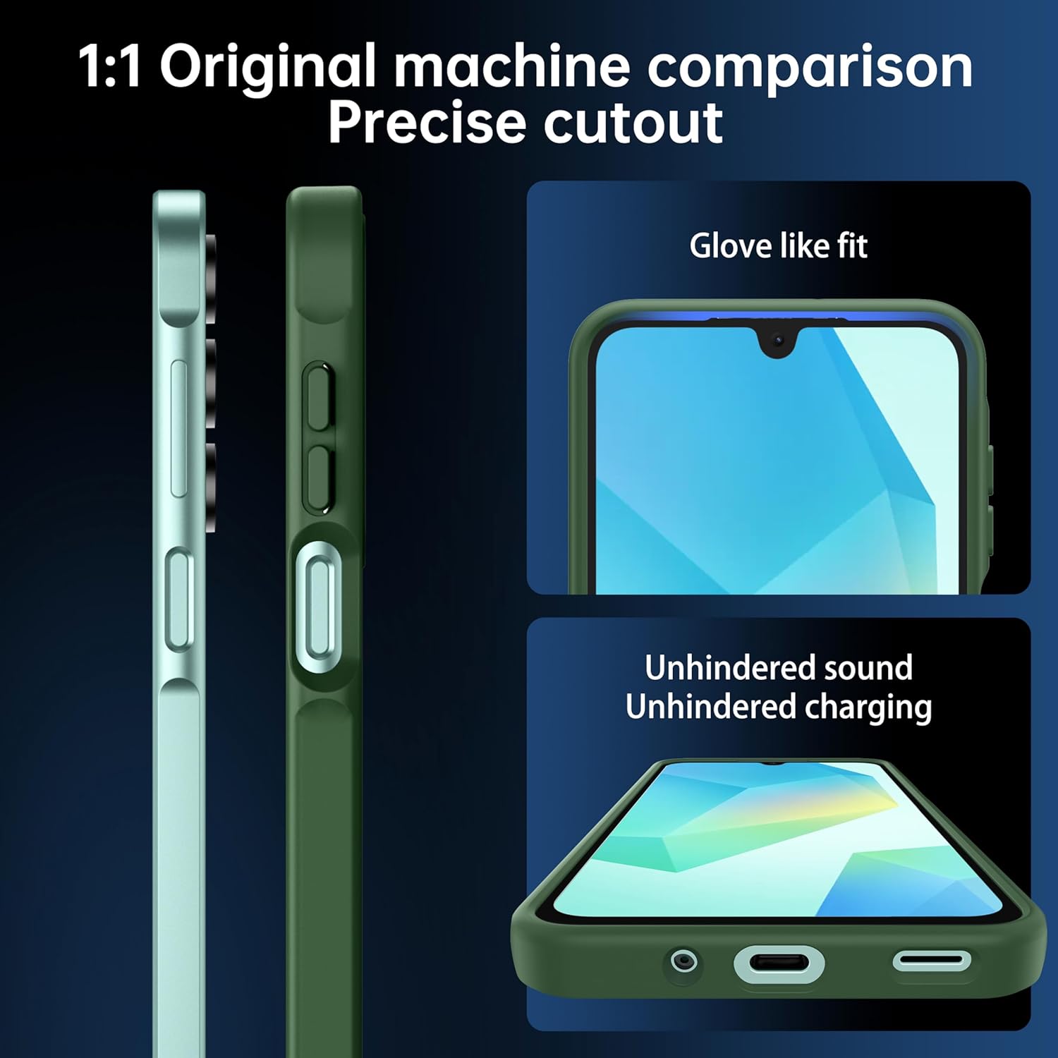 • Перфектно прилягане за защита: матовият защитен калъф на Samsung Galaxy A16 5G е с интегрална форма, с повдигнати с 1,5 мм ръбове на екрана и повдигнат с 1,2 мм ръб на камерата, както и прецизен дизайн на отворите на камерата, което осигурява цялостна защита на мобилния телефон. 100% произведен в съответствие с оригиналните портове за зареждане, аудио портове и бутони на машината, така че можете да ги използвате удобно и да предотвратите попадането на прах и остатъци от вещества в него, които да проникнат и надраскат калъфа на мобилния телефон.