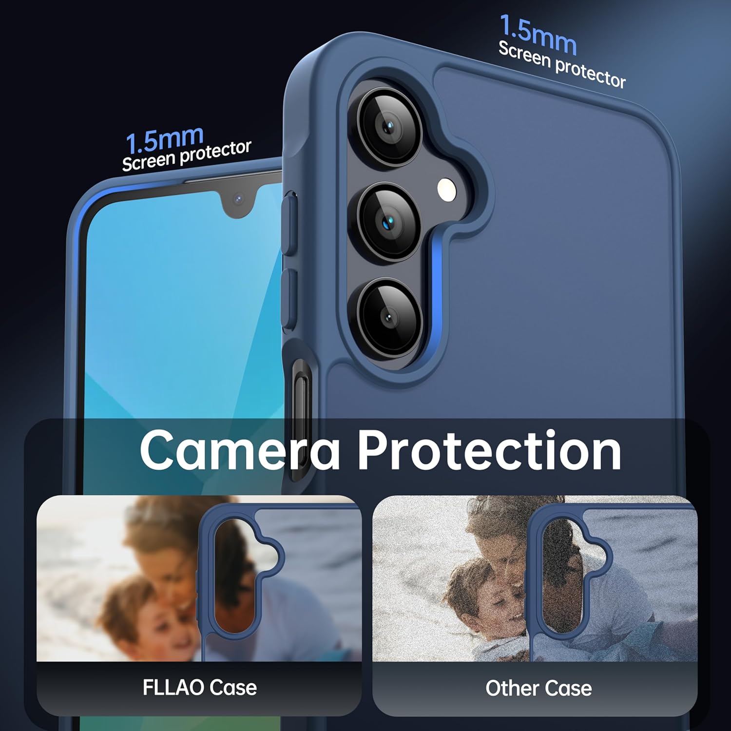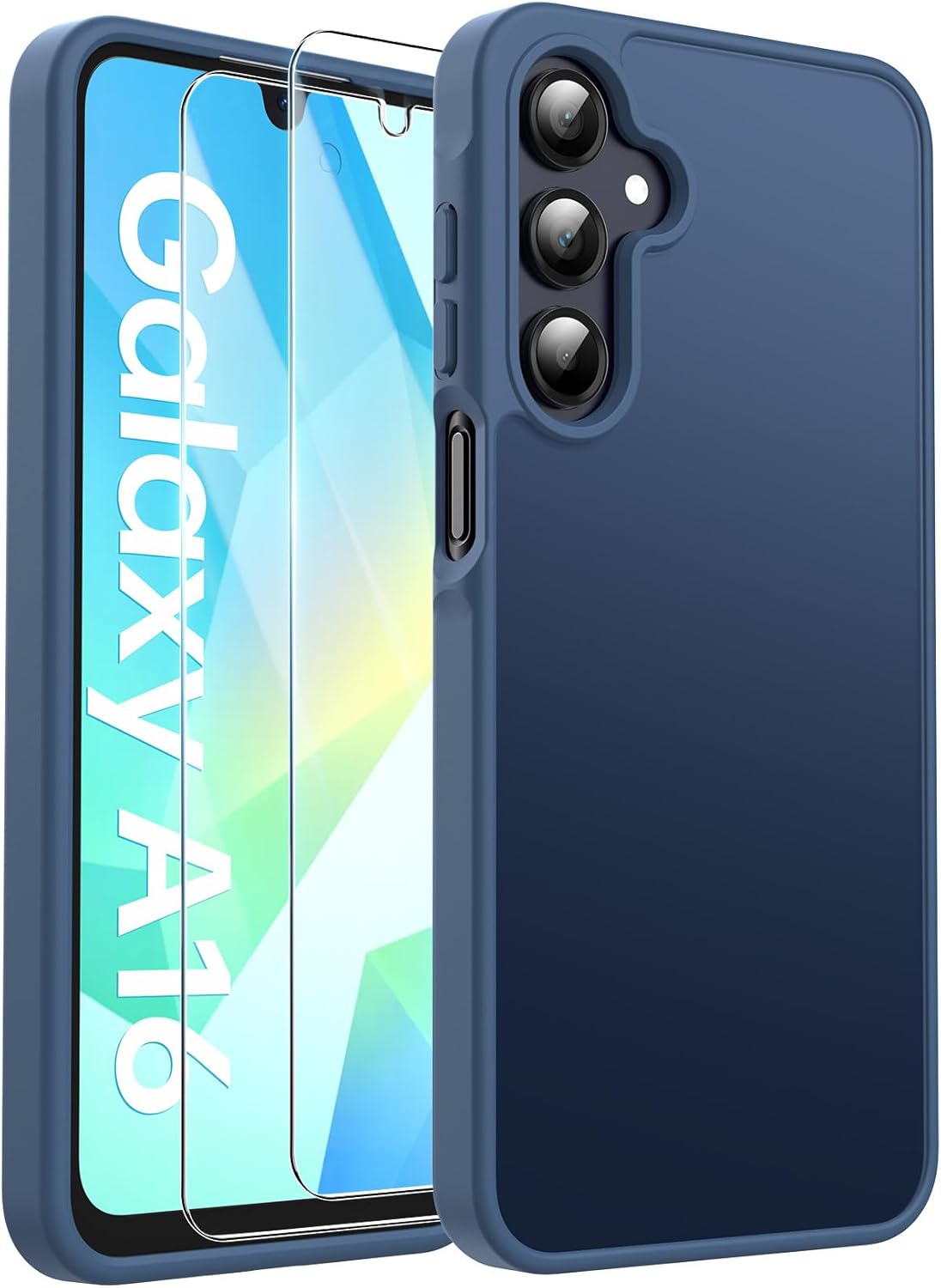 Матов калъф за мобилен телефон FLLAO за Samsung Galaxy A16 5G и 2 протектора за екран, със защита на камерата [Военен стандарт за защита] Прозрачен PC гръб TPU bumper калъф за Samsung A16 - тъмен