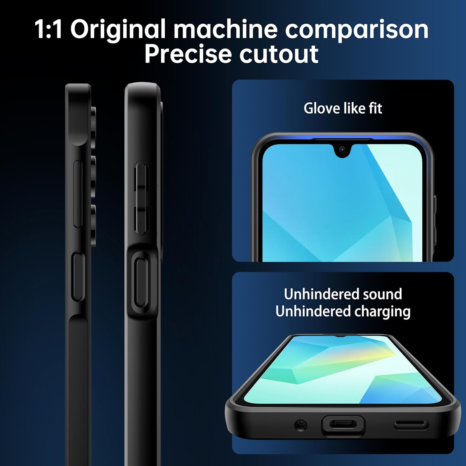 • Перфектно прилягане за защита: матовият защитен калъф на Samsung Galaxy A16 5G е с интегрална форма, с повдигнати с 1,5 мм ръбове на екрана и повдигнат с 1,2 мм ръб на камерата, както и прецизен дизайн на отворите на камерата, което осигурява цялостна защита на мобилния телефон. 100% произведен в съответствие с оригиналните портове за зареждане, аудио портове и бутони на машината, така че можете да ги използвате удобно и да предотвратите попадането на прах и остатъци от вещества в него, които да проникнат и надраскат калъфа на мобилния телефон.