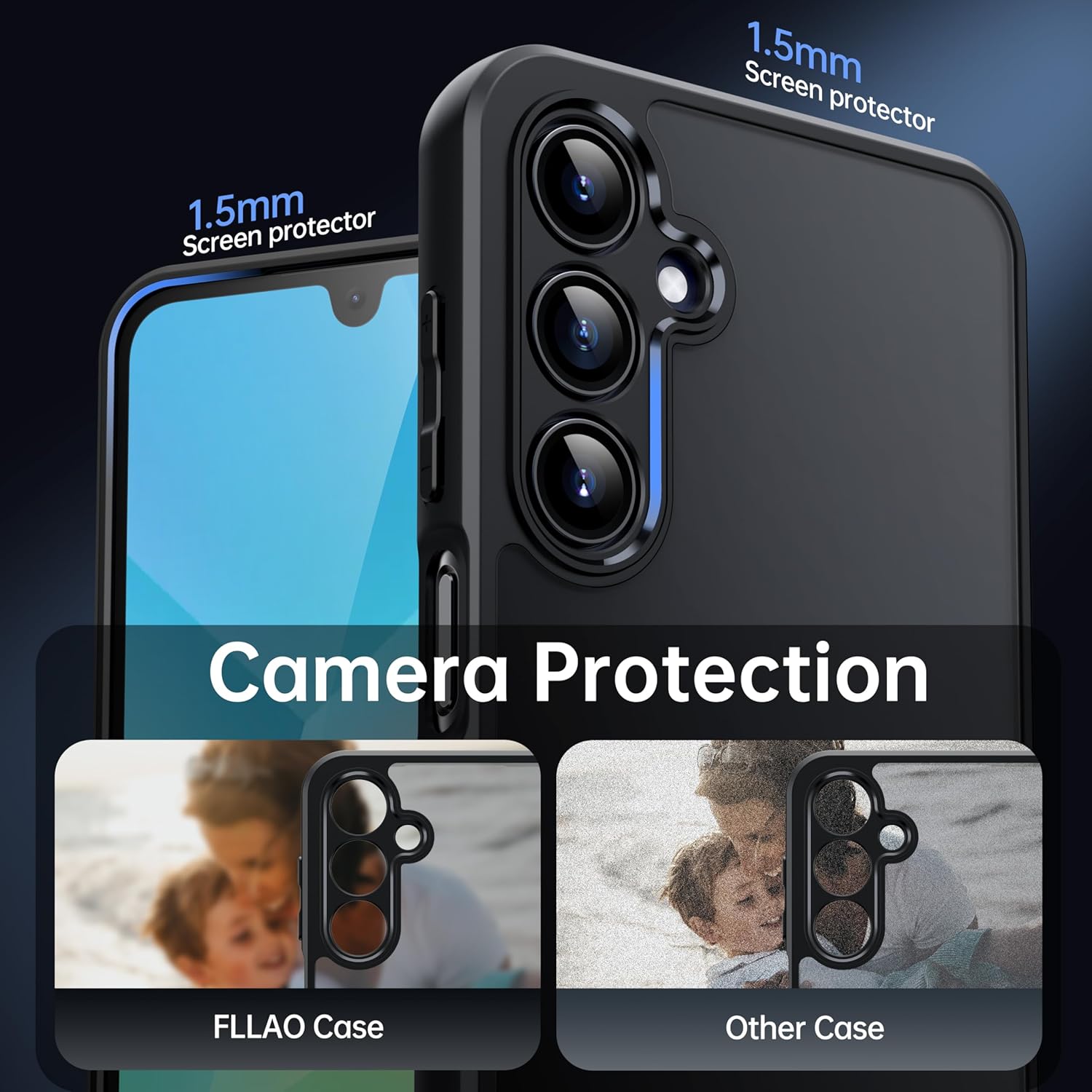 • Модерни материали: Калъфът за Samsung Galaxy A16 5G е полупрозрачен матово черен и е изработен от PC и TPU материали. Матираният PC гръб с сянка не само прави новия ви телефон по-елегантен и изискан, но и предотвратява повреди, причинени от падания на мобилния телефон.
