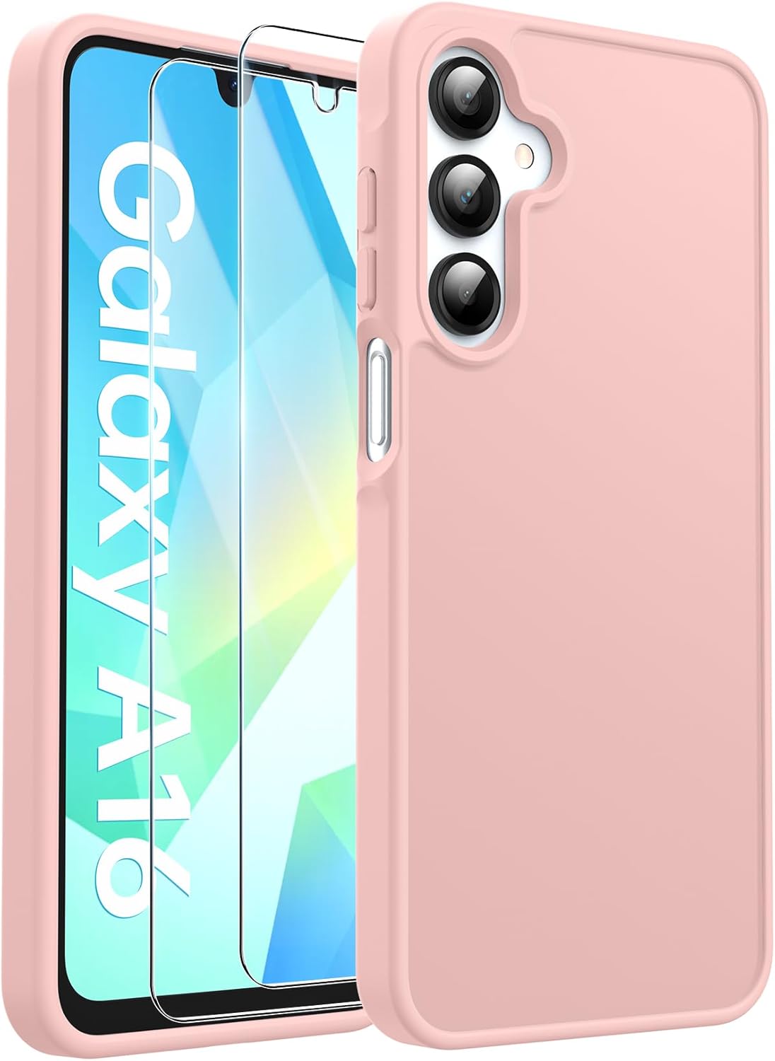 Матов калъф за мобилен телефон FLLAO за Samsung Galaxy A16 5G и 2 протектора за екран, със защита на камерата [Военен стандарт за защита] Прозрачен PC гръб TPU bumper калъф за Samsung Galaxy A16