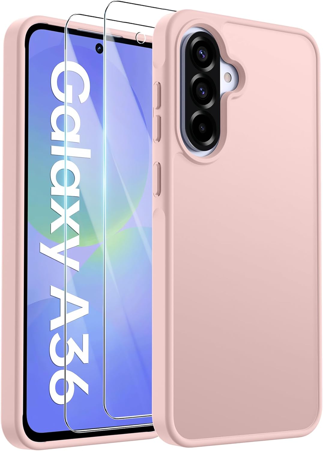 Матов калъф за мобилен телефон FLLAO за Samsung Galaxy A36 5G и 2 протектора за екран, със защита на камерата [Военен стандарт за защита] Прозрачен PC гръб TPU bumper калъф за Samsung Galaxy A36