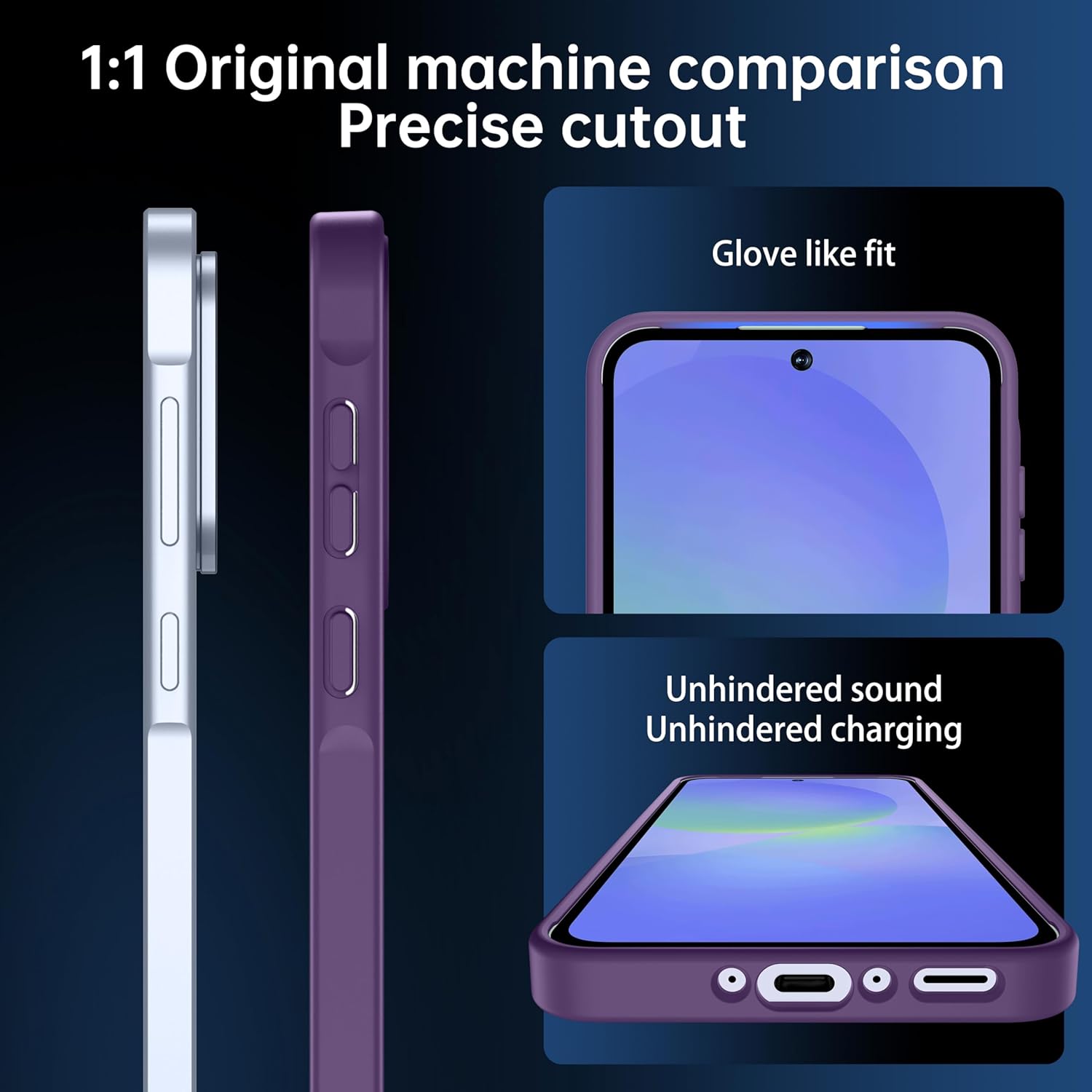 • Перфектно прилягане за защита: матовият защитен калъф на Samsung Galaxy A16 5G е с интегрална форма, с повдигнати с 1,5 мм ръбове на екрана и повдигнат с 1,2 мм ръб на камерата, както и прецизен дизайн на отворите на камерата, което осигурява цялостна защита на мобилния телефон. 100% произведен в съответствие с оригиналните портове за зареждане, аудио портове и бутони на машината, така че можете да ги използвате удобно и да предотвратите попадането на прах и остатъци от вещества в него, които да проникнат и надраскат калъфа на мобилния телефон.