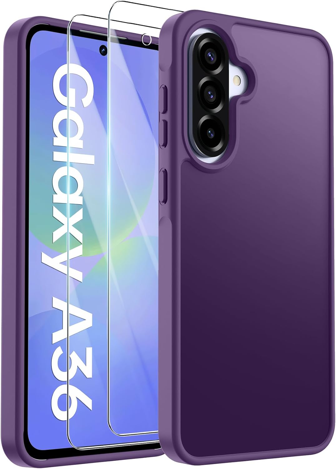 Матов калъф за мобилен телефон FLLAO за Samsung Galaxy A36 5G и 2 протектора за екрана, със защита на камерата, военна стандартна защита, удароустойчив PC гръб TPU bumper калъф за Samsung Galaxy A36
