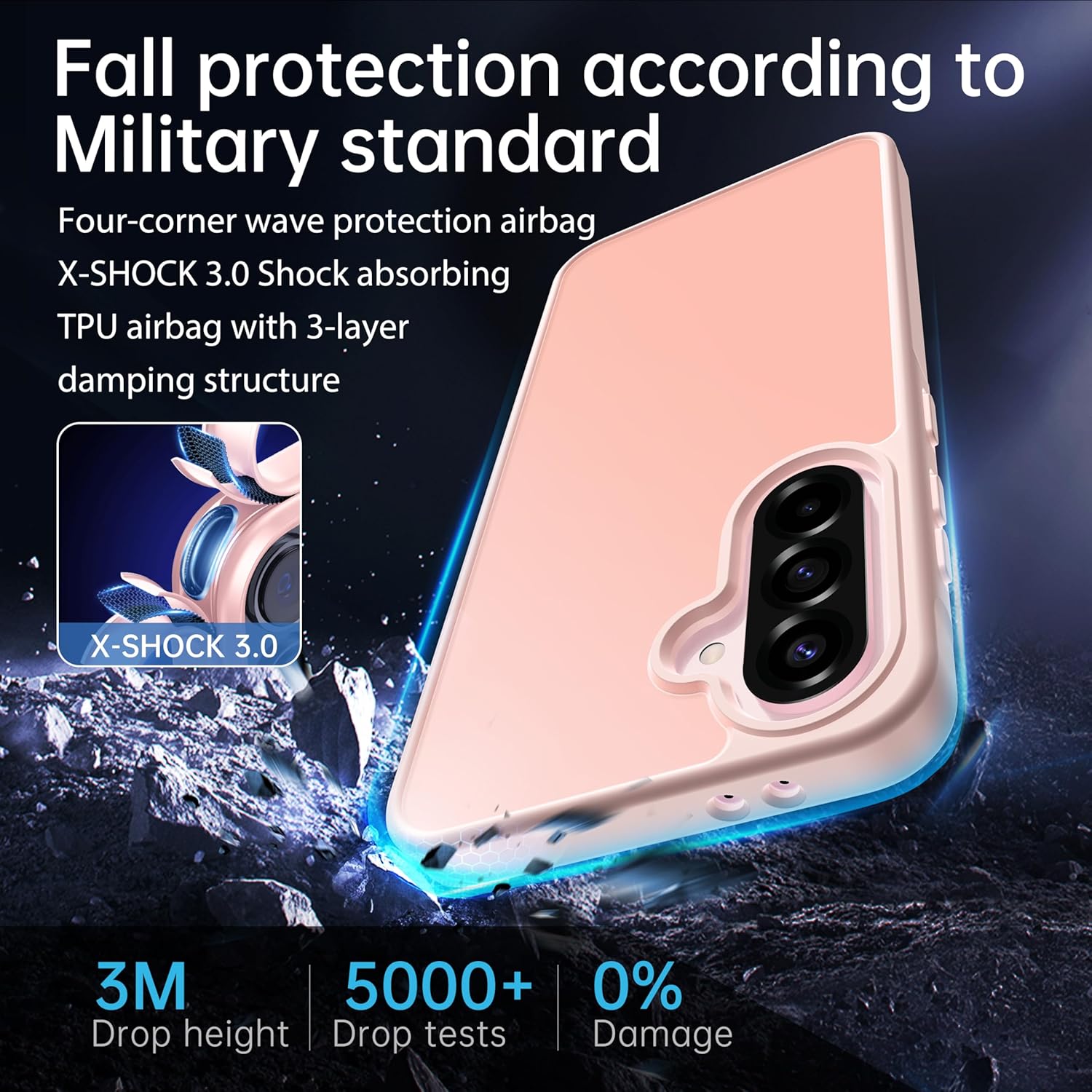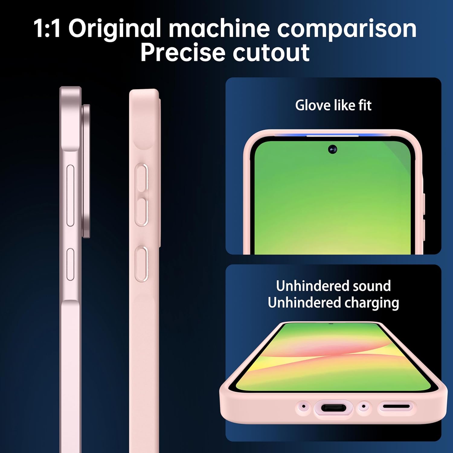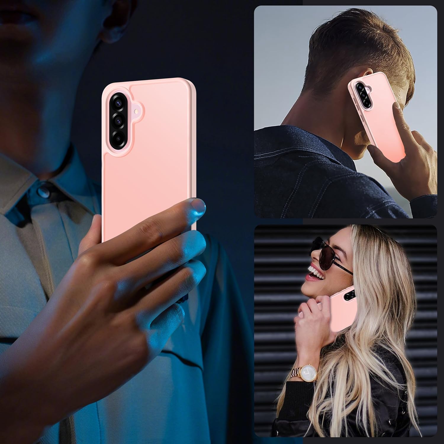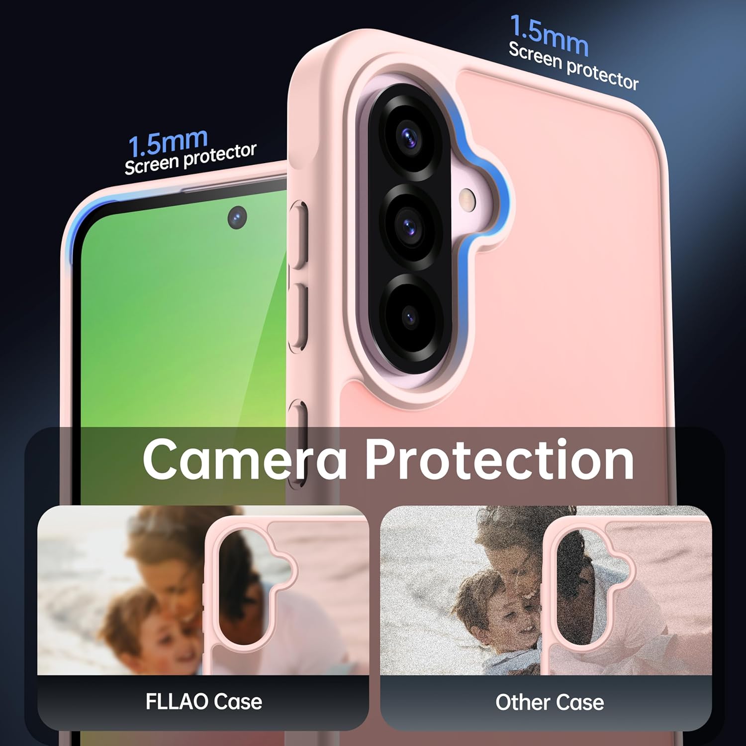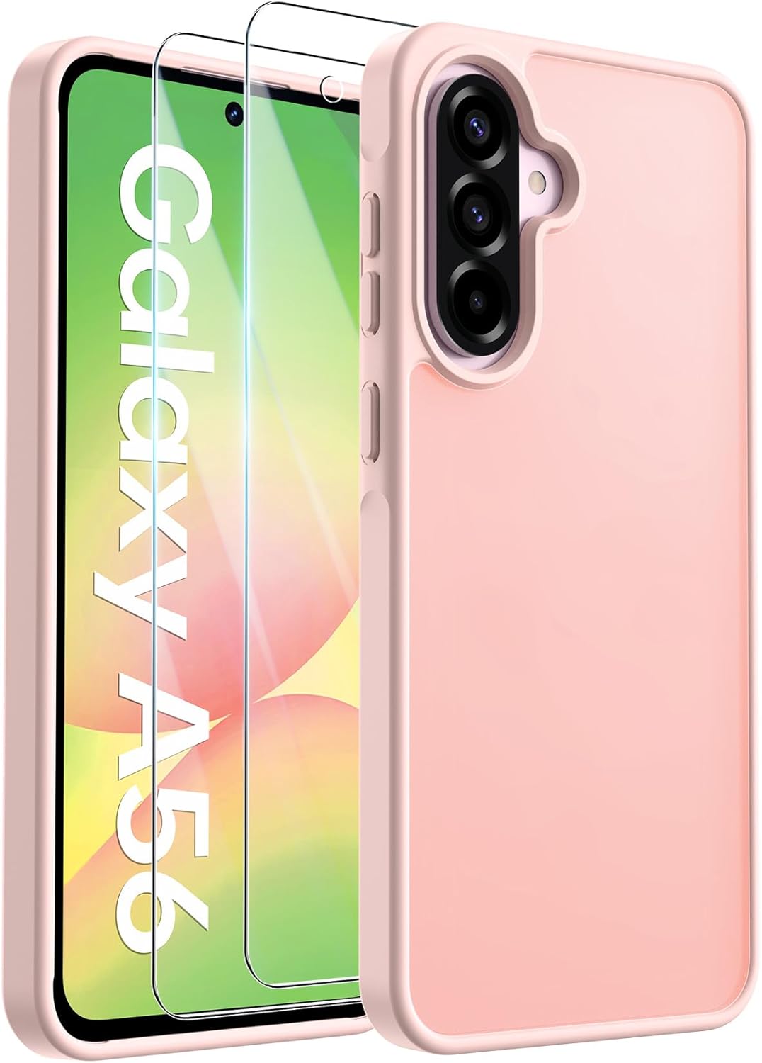 Матов калъф за мобилен телефон FLLAO за Samsung Galaxy A56 5G и 2 протектора за екран, със защита на камерата [Военен стандарт за защита] Прозрачен PC гръб TPU bumper калъф за Samsung A56 - розов