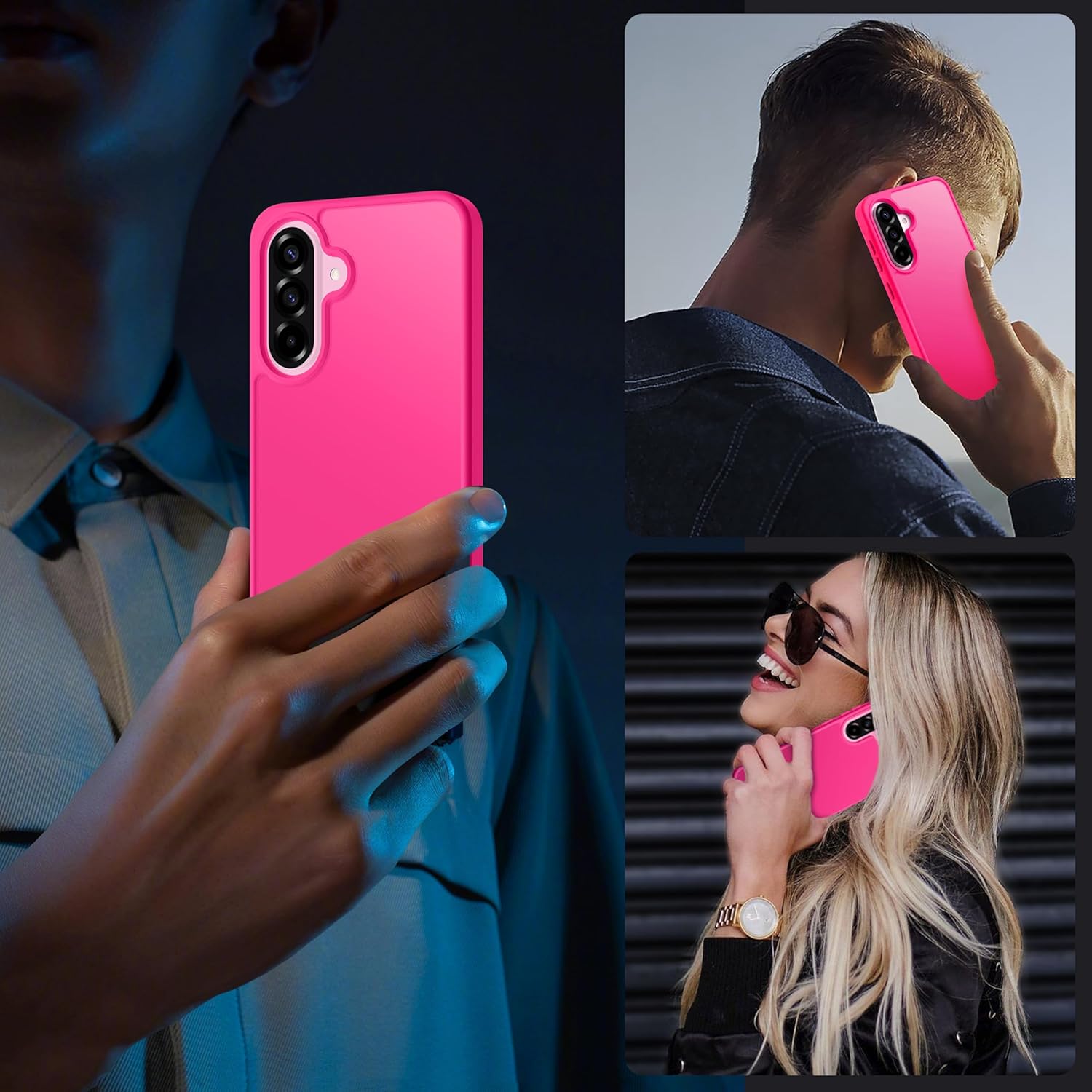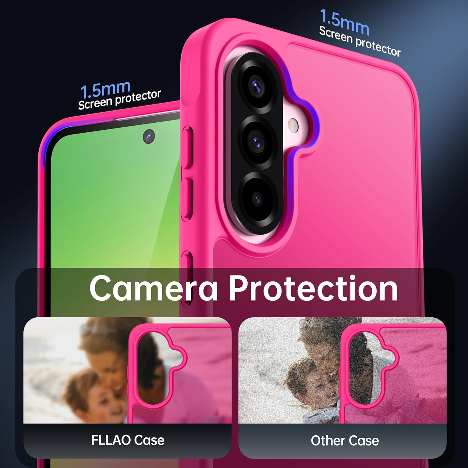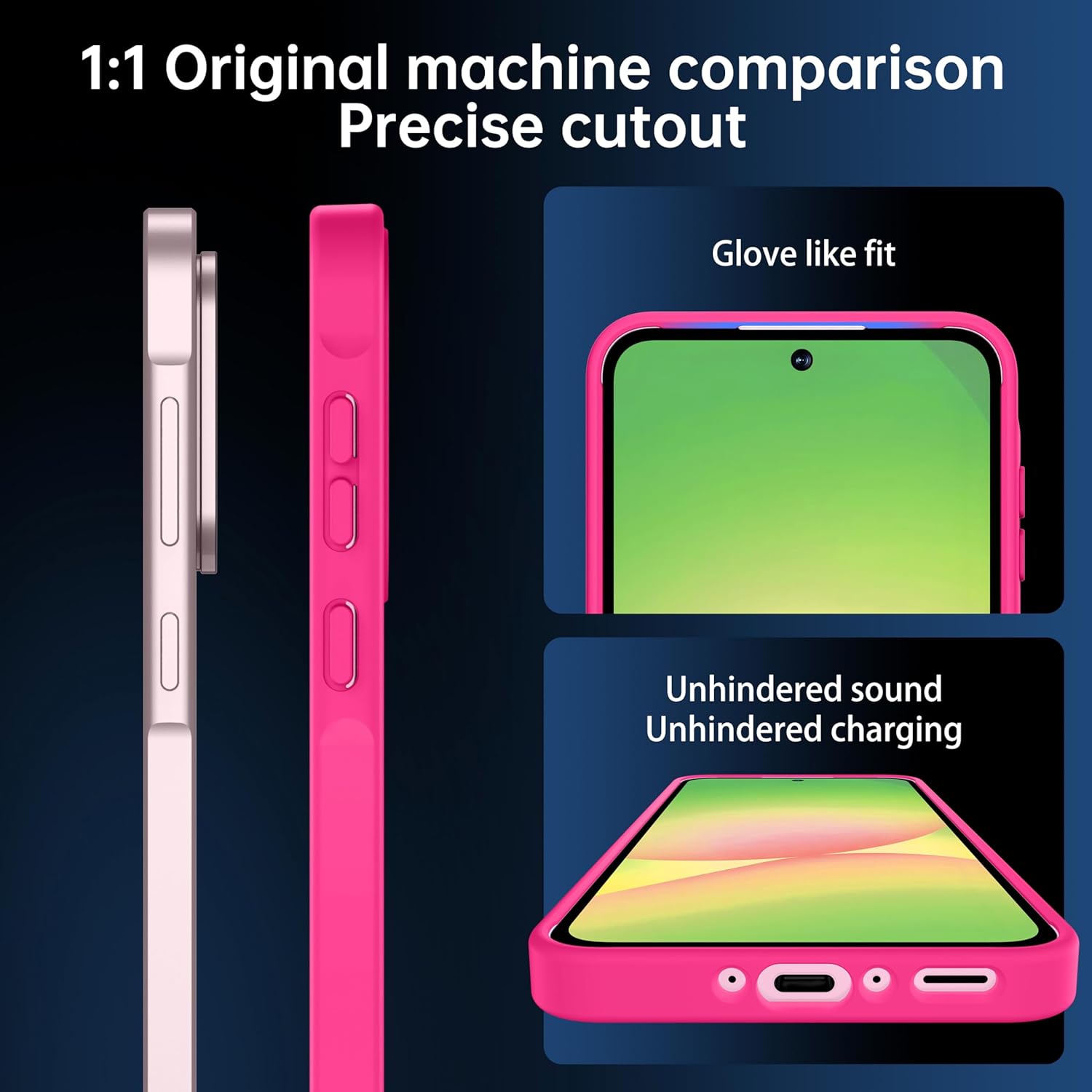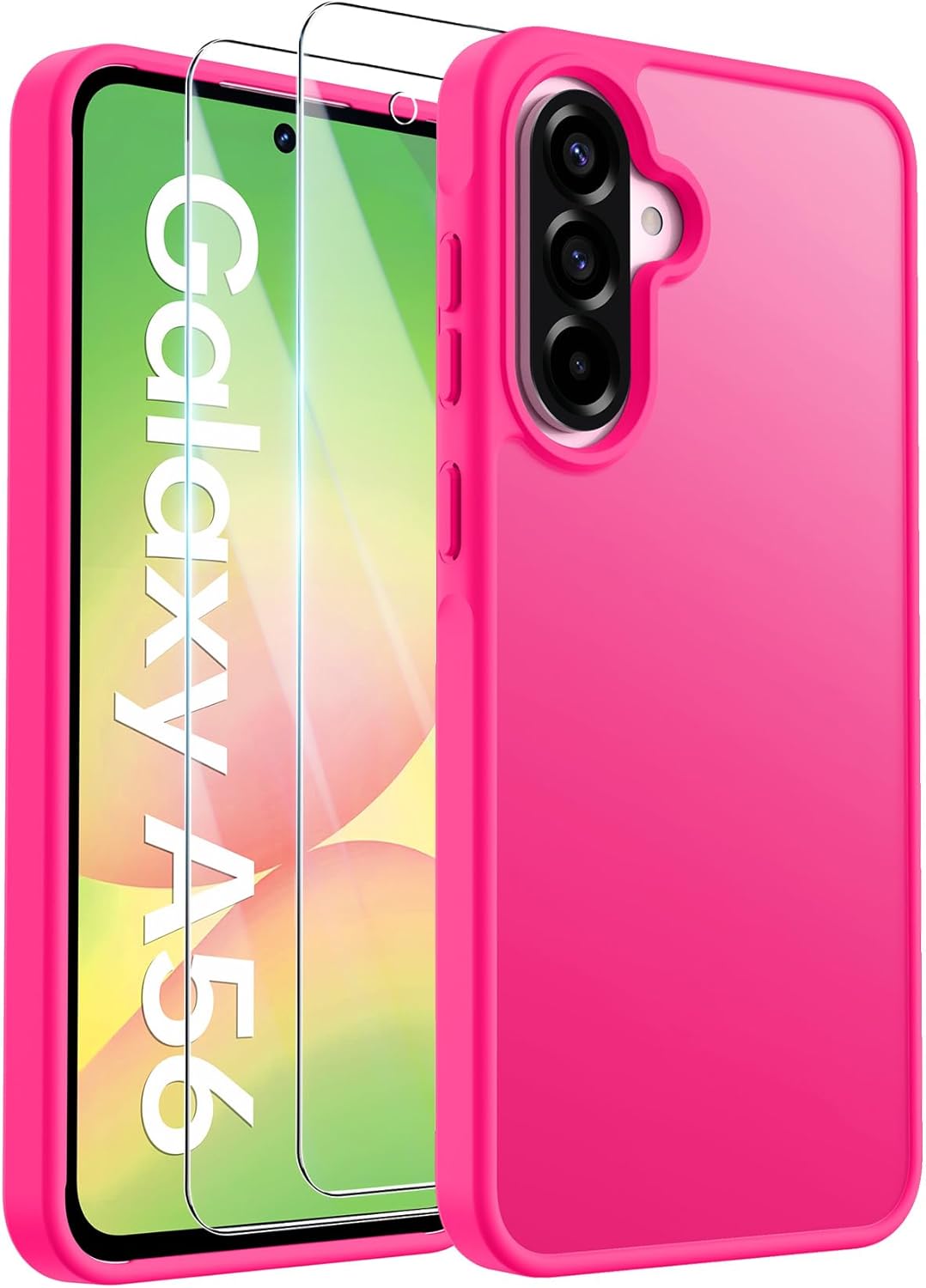Матов калъф за мобилен телефон FLLAO за Samsung Galaxy A56 5G и 2 протектора за екран, със защита на камерата [Военен стандарт за защита] Прозрачен PC гръб TPU bumper калъф за Samsung A56 - Розов