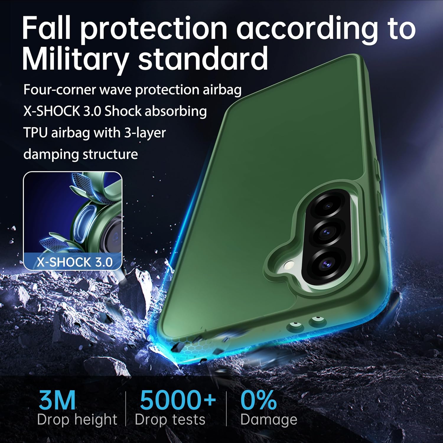 • [Военна защита] Калъфът за мобилен телефон за Samsung Galaxy A16 5G използва професионална технология за абсорбиране на удари X-SHOCK 3.0, 4-слойна TPU броня за създаване на ефективна технология за устойчивост на удар. След сертифициране и практически тестове, той може да издържи на падане от височина до 3 м. Защитно фолио с твърдост 9H предпазва екрана от различни надрасквания. Цялостна и ефикасна военна защита за вашия мобилен телефон.