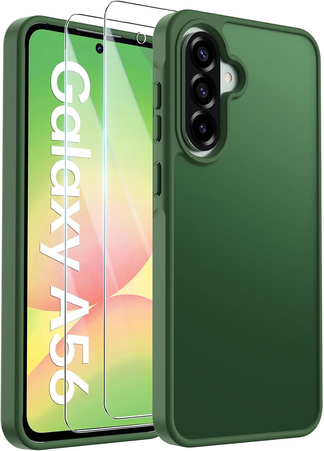 Матов калъф за мобилен телефон FLLAO за Samsung Galaxy A56 5G и 2 протектора за екрана, със защита на камерата [Военен стандарт за защита] Прозрачен PC гръб TPU bumper калъф за Samsung A56 - тъмен
