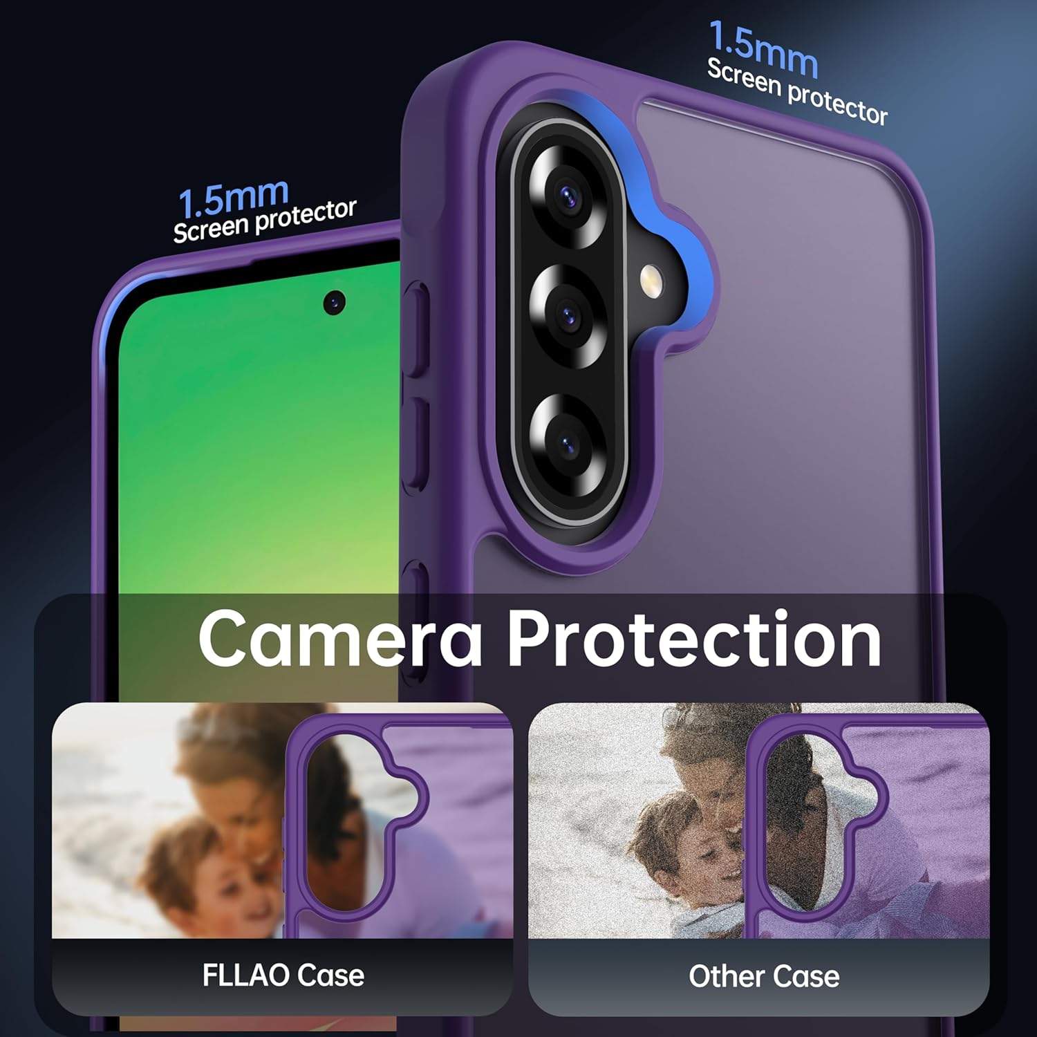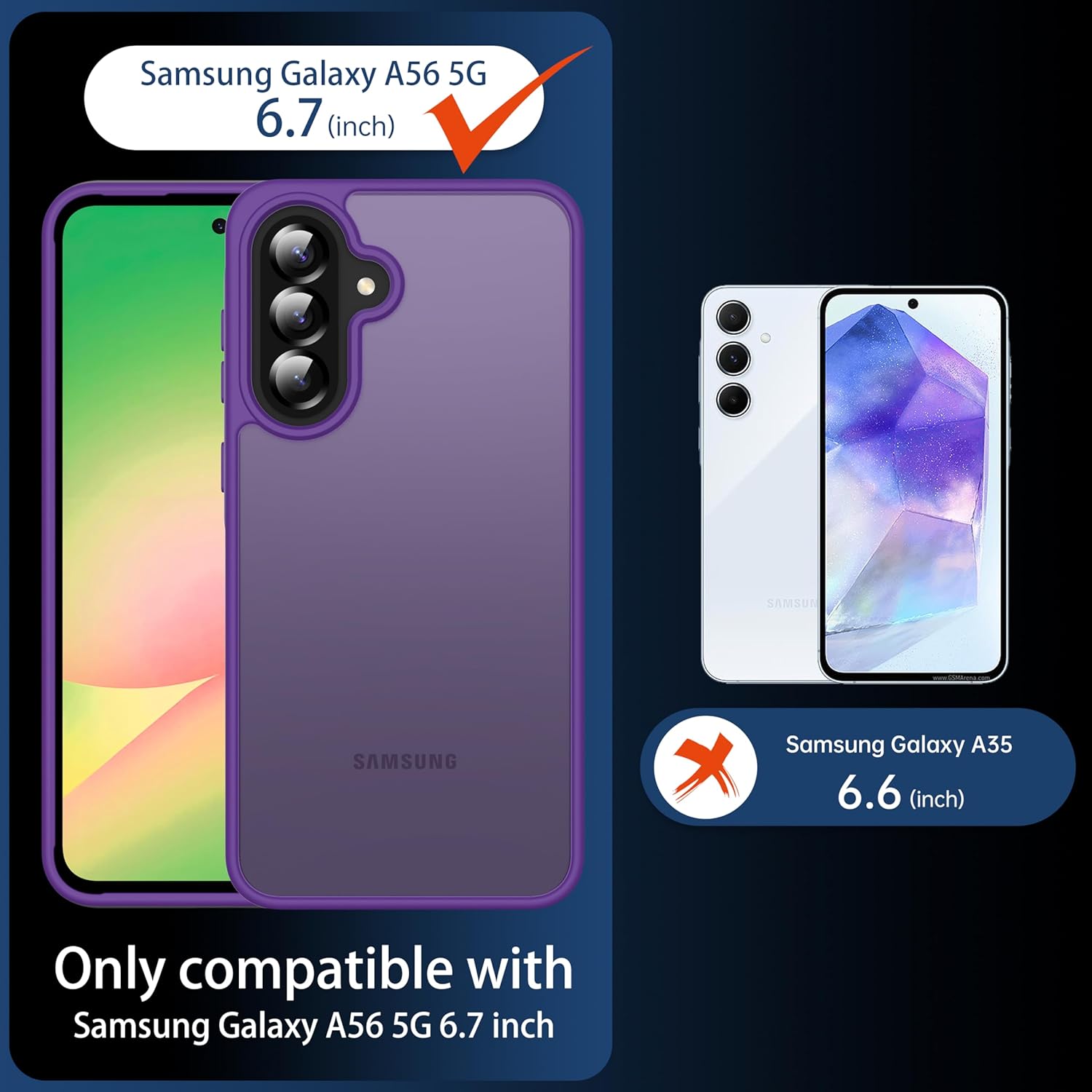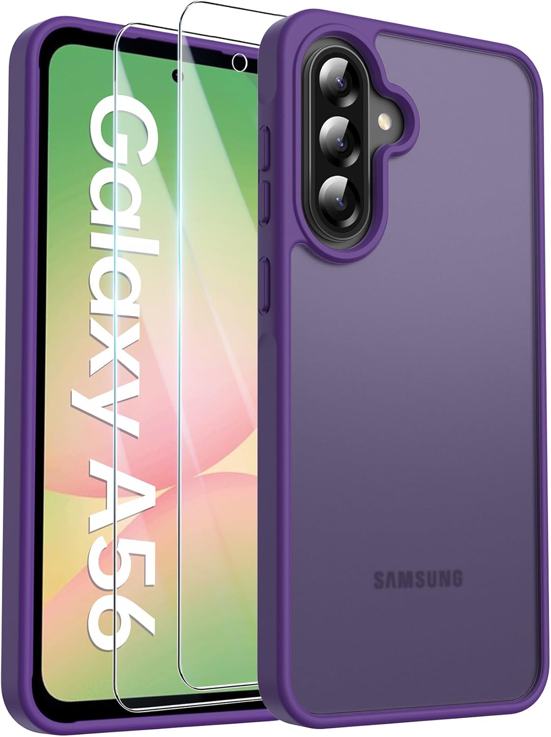 Матов калъф за мобилен телефон FLLAO за Samsung Galaxy A56 5G и 2 протектора за екрана, със защита на камерата [Военен стандарт за защита] Прозрачен PC гръб TPU bumper калъф за Samsung Galaxy A56