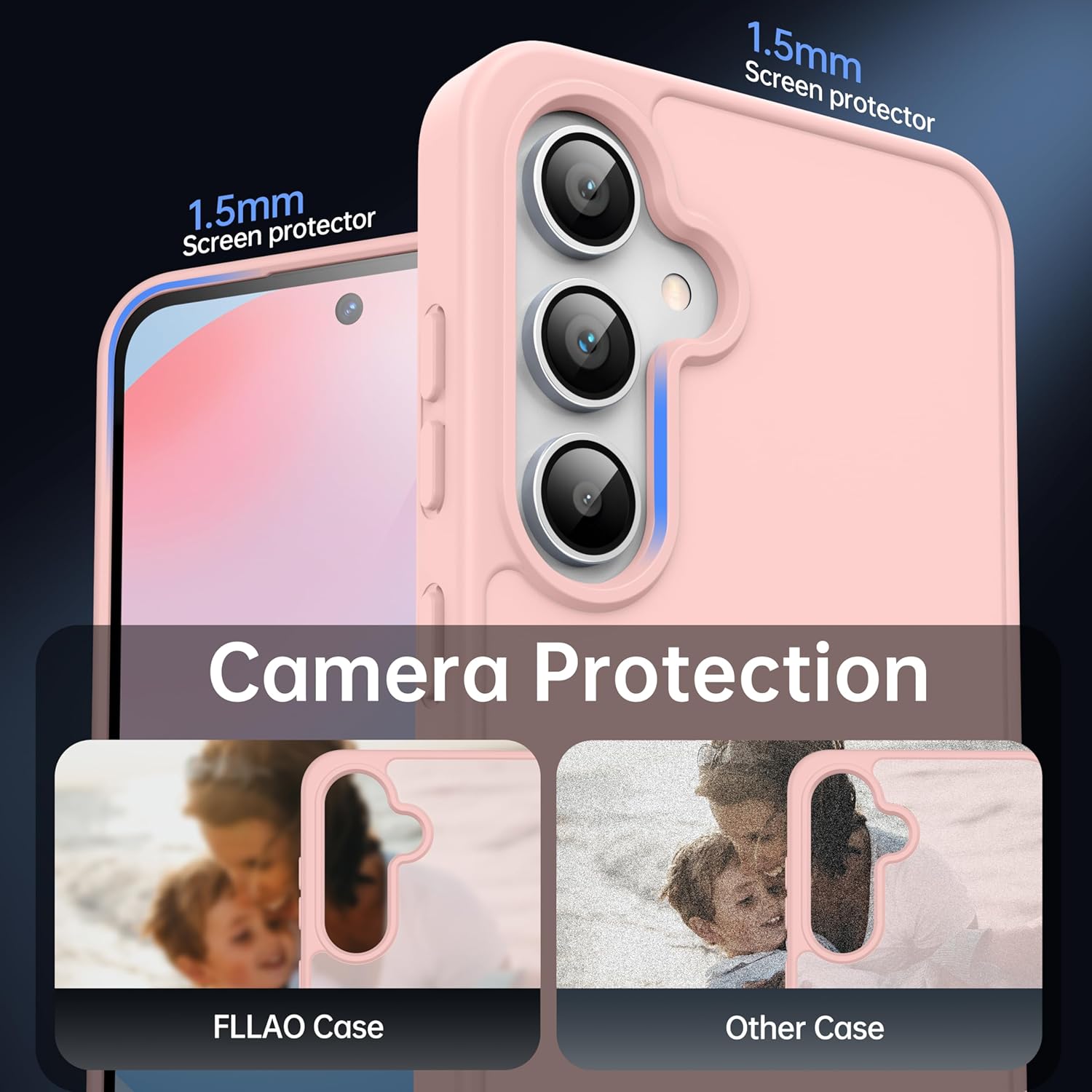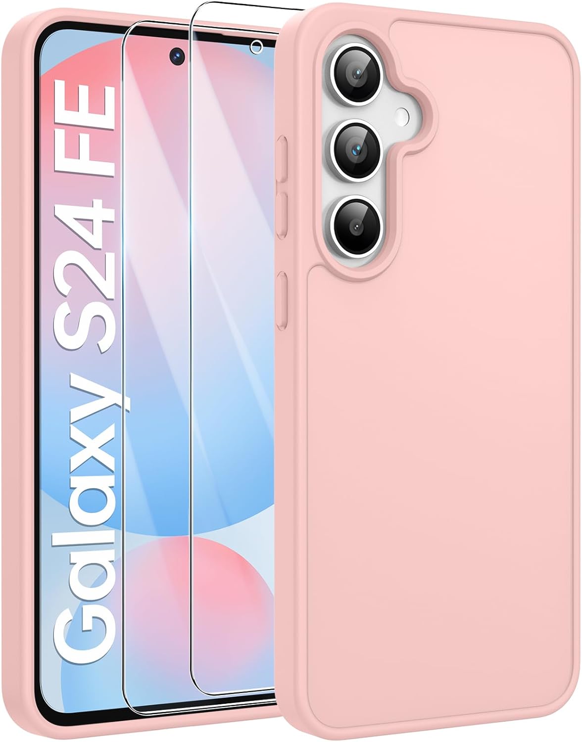 Матов калъф за мобилен телефон FLLAO за Samsung Galaxy S24 FE и 2 протектора за екран, със защита на камерата [Военен стандарт за защита] Прозрачен PC гръб TPU bumper калъф за Samsung Galaxy S24