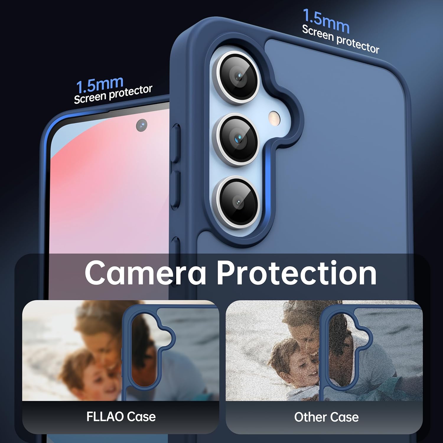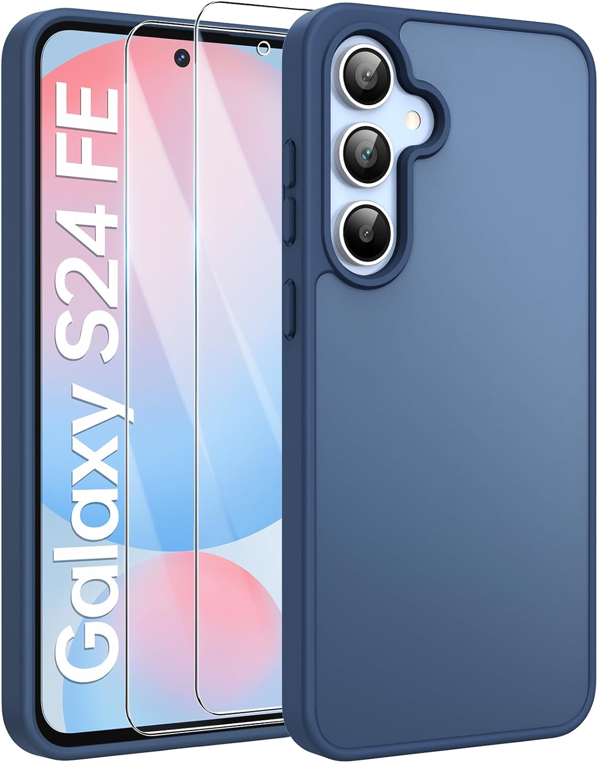 Матов калъф за мобилен телефон FLLAO за Samsung Galaxy S24 FE и 2 протектора за екран, със защита на камерата [Военен стандарт за защита] Прозрачен PC гръб TPU bumper калъф за Samsung S24 FE -