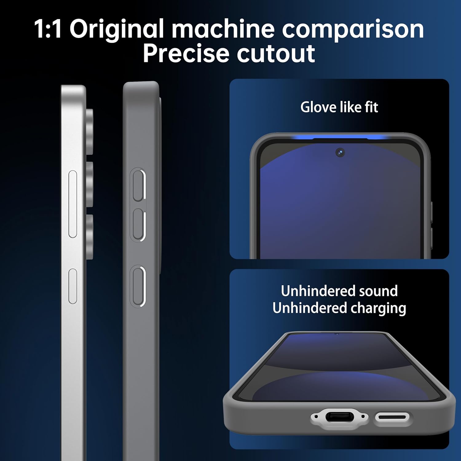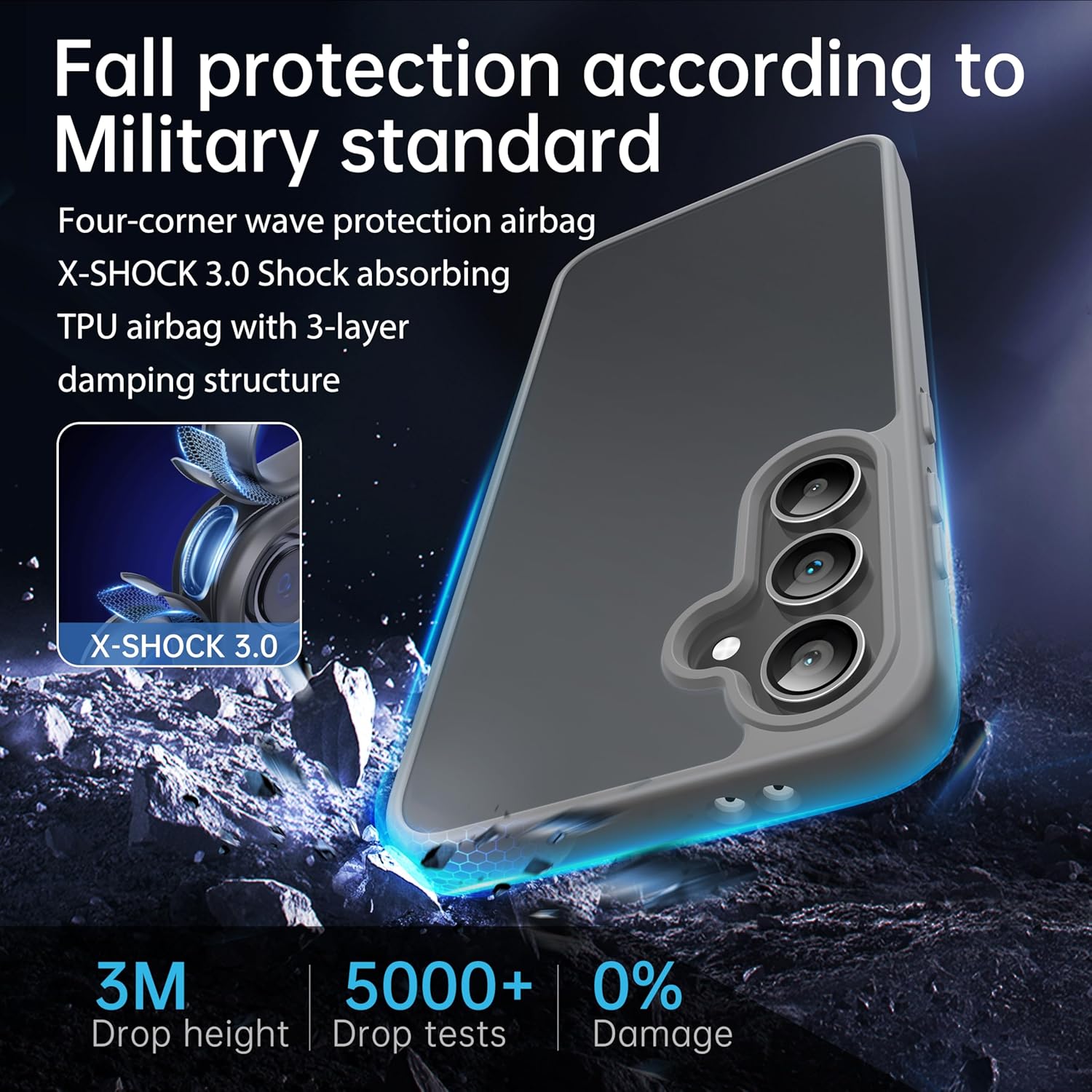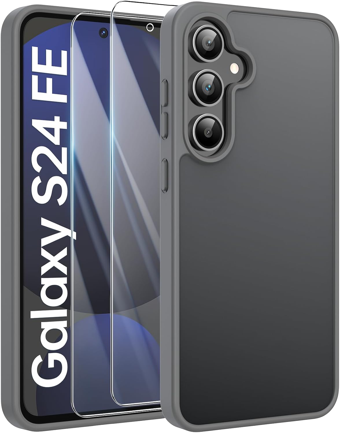 Матов калъф за мобилен телефон FLLAO за Samsung Galaxy S24 FE и 2 протектора за екран, със защита на камерата [Военен стандарт за защита] Прозрачен PC гръб TPU bumper калъф за Samsung S24 FE -