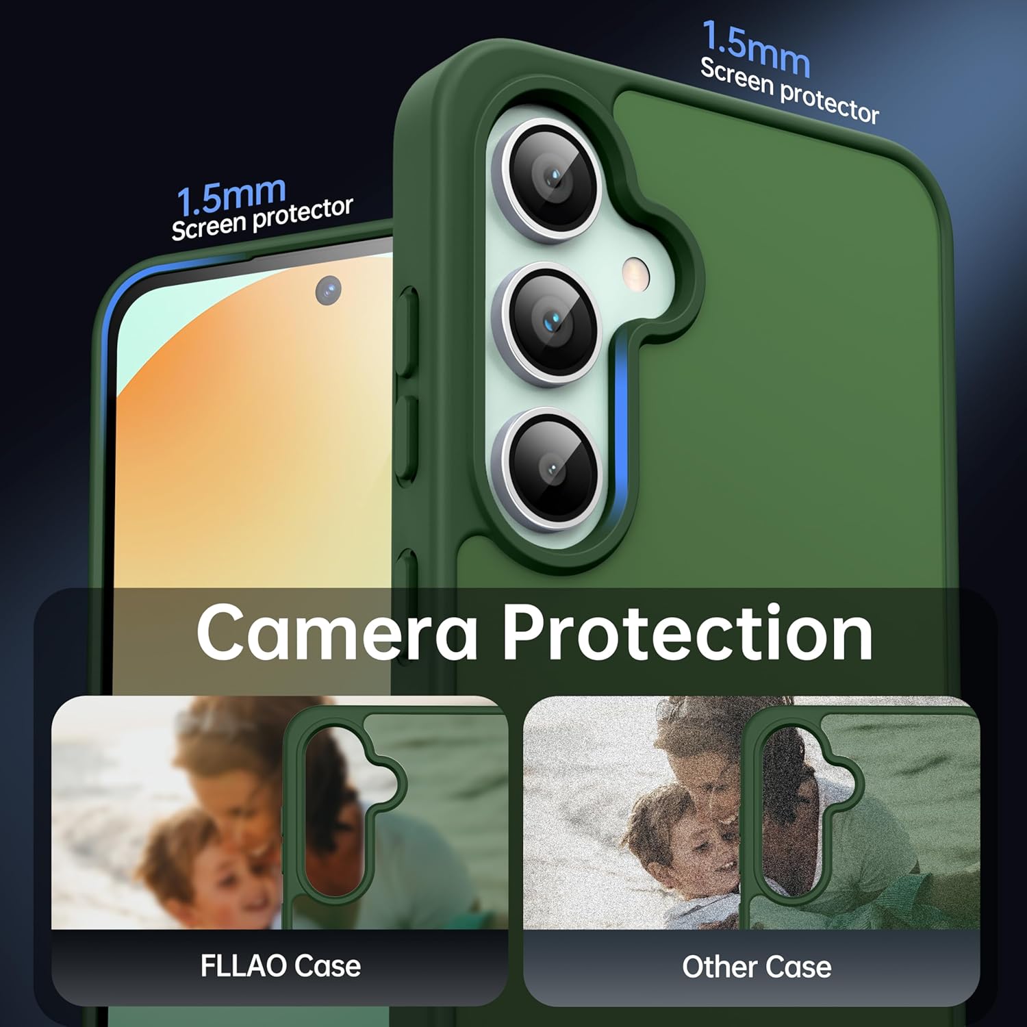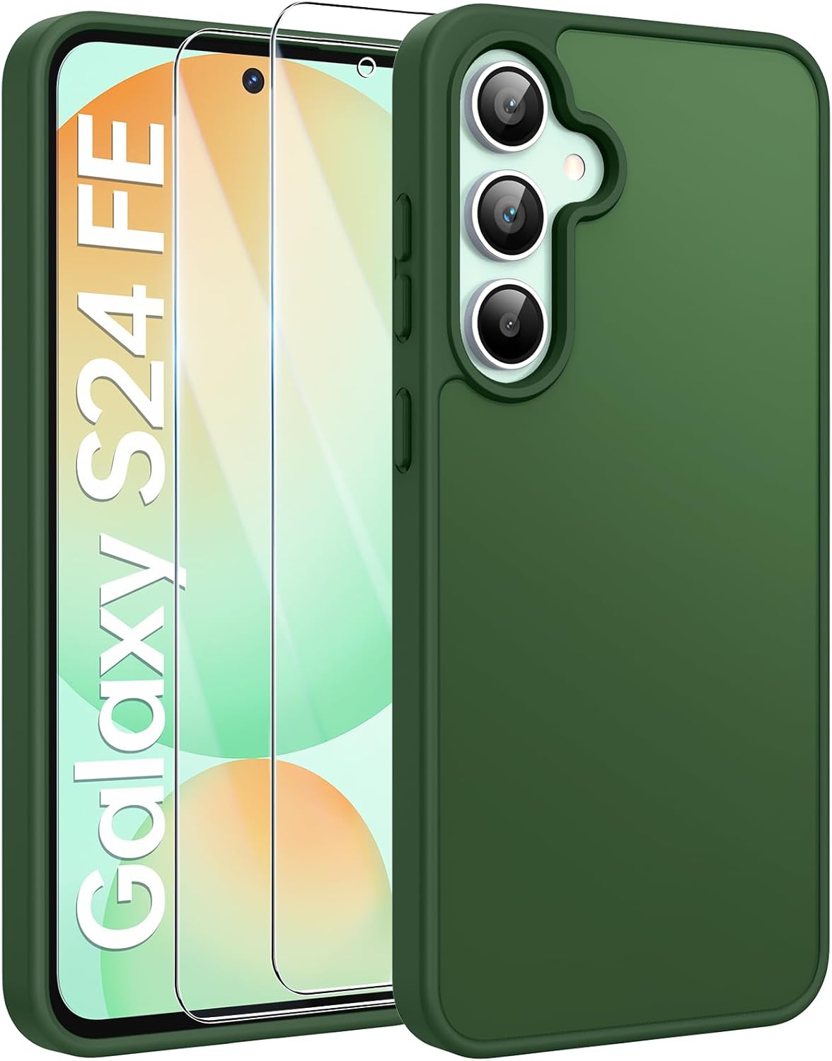 Матов калъф за мобилен телефон FLLAO за Samsung Galaxy S24 FE и 2 протектора за екран, със защита на камерата [Военен стандарт за защита] Прозрачен PC гръб TPU bumper калъф за Samsung S24 FE -