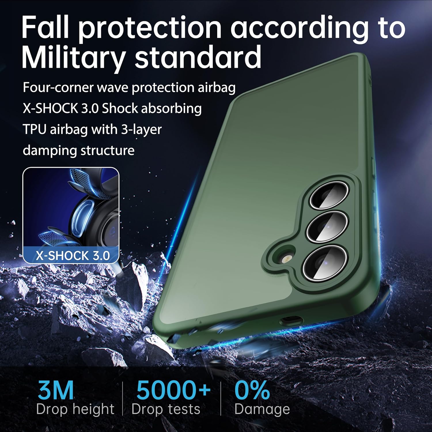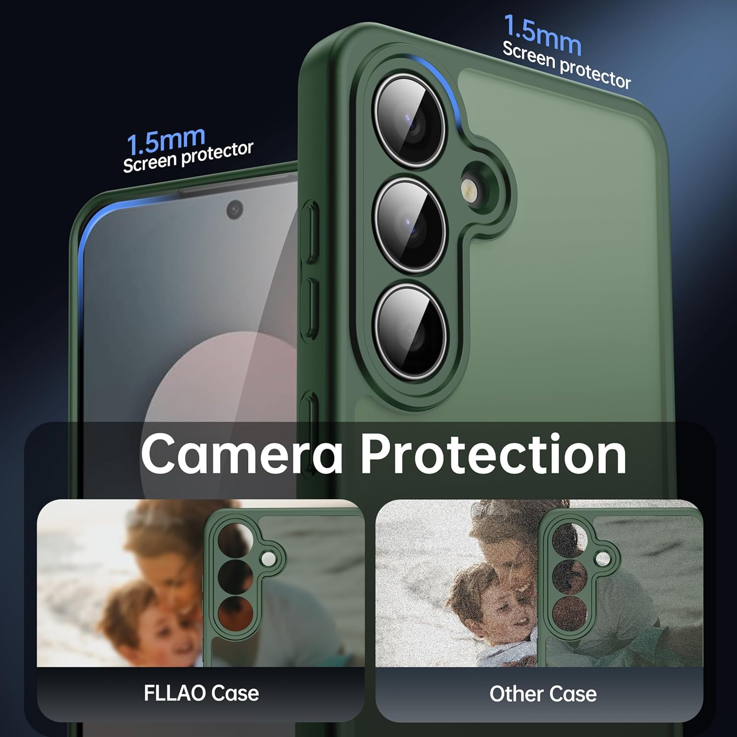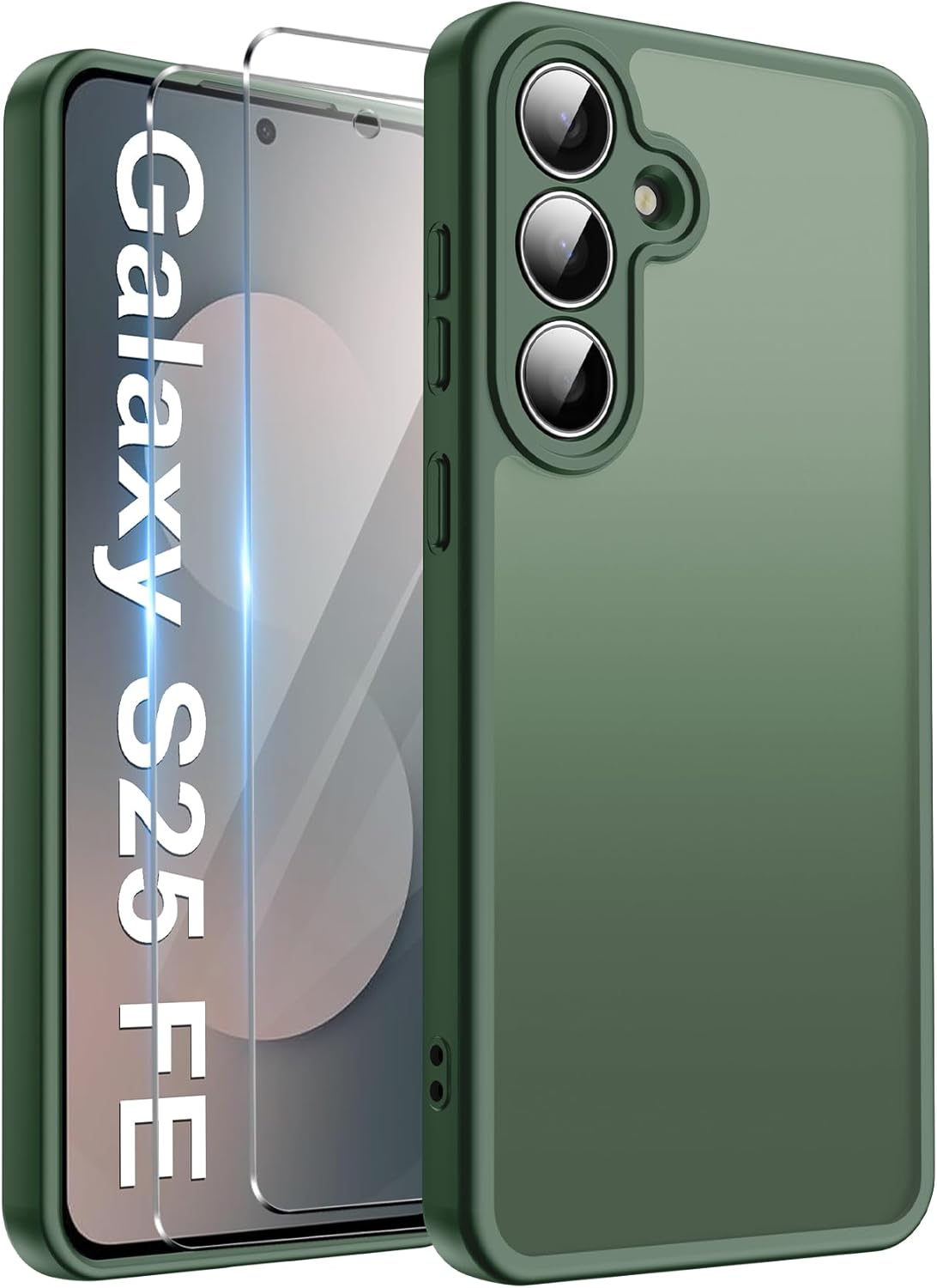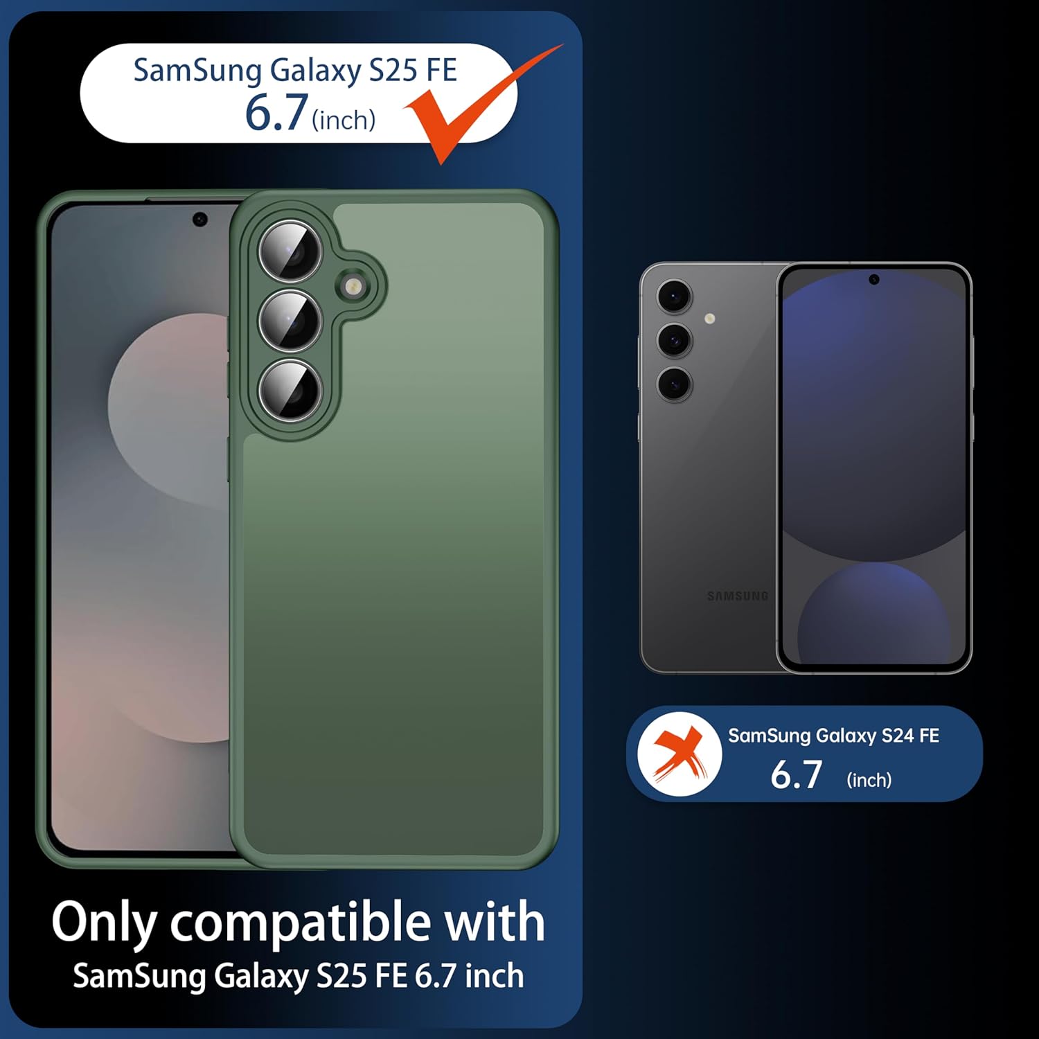 Матов калъф за мобилен телефон FLLAO за Samsung Galaxy S25 FE и 2 протектора за екран, със защита на камерата, защита по военен стандарт, удароустойчив PC гръб TPU bumper калъф за Samsung Galaxy S25 FE